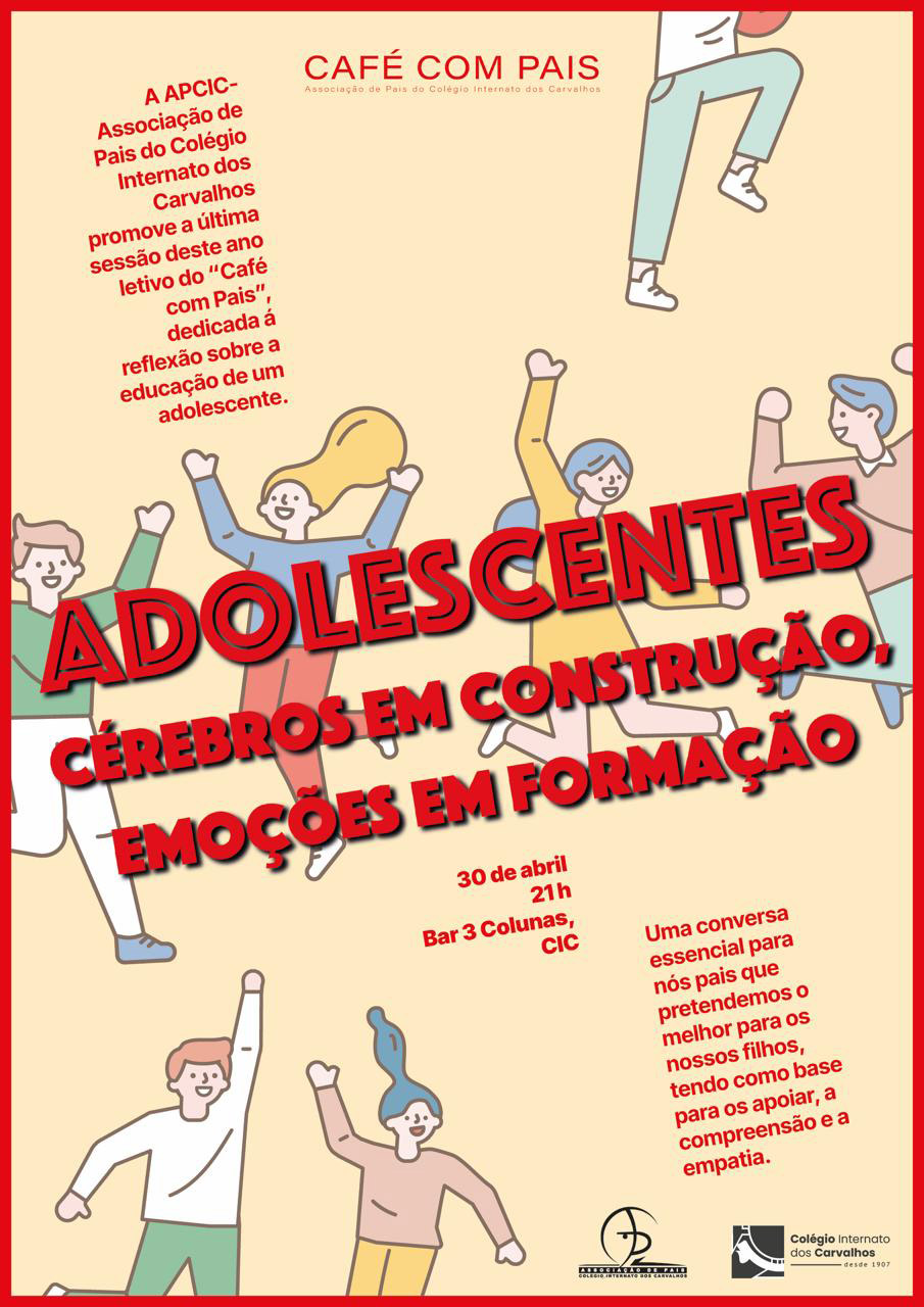 A APCIC – Associação de Pais do Colégio Internato dos Carvalhos convida todos os Encarregados de Educação para a última sessão do “Café com Pais” deste ano letivo. 🧠 Tema: Adolescentes: cérebros em construção, emoções em formação 📅 Data: 30 de abril 🕘 Hora: 21h 📍 Local: Bar 3 Colunas, CIC Será um momento de partilha e reflexão sobre a educação na adolescência — um tema central para quem procura compreender melhor os seus filhos, promovendo relações assentes na empatia, no apoio e no desenvolvimento saudável. Contamos com a vossa presença!