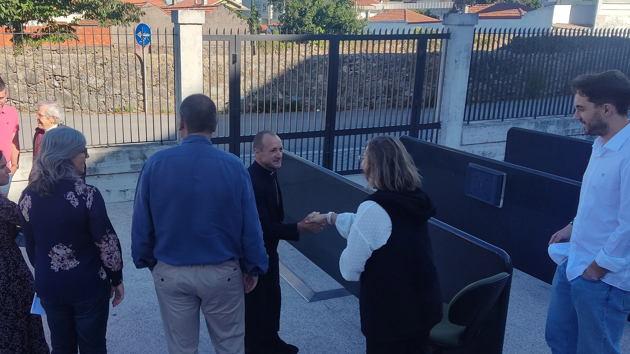 Neste sentido, foi recebido pelo Sr. Pe. José Maia, Presidente do Conselho Diretivo e Representante da Entidade Titular – Província de Fátima dos Missionários Claretianos –, pelo Diretor Pedagógico, Eng.º Evaristo Moreira, pelo Administrador, Dr. Paulo Pinho, pelos Vogais da Direção Pedagógica, Dr.ª Ana Sofia Viana, Dr. João Paulo e Dr. Pedro Figueiredo, e pela Vogal da Direção Financeira e Administrativa, Dr.ª Cláudia Pinho. Para além disso, estiveram presentes os membros do Conselho Pastoral, Dr.ª Maria José Queirós e o Eng.º Carlos Coutinho.