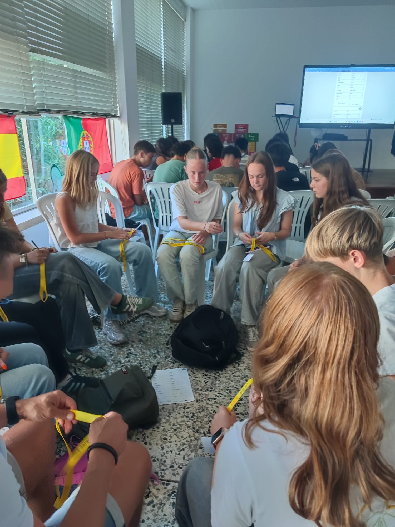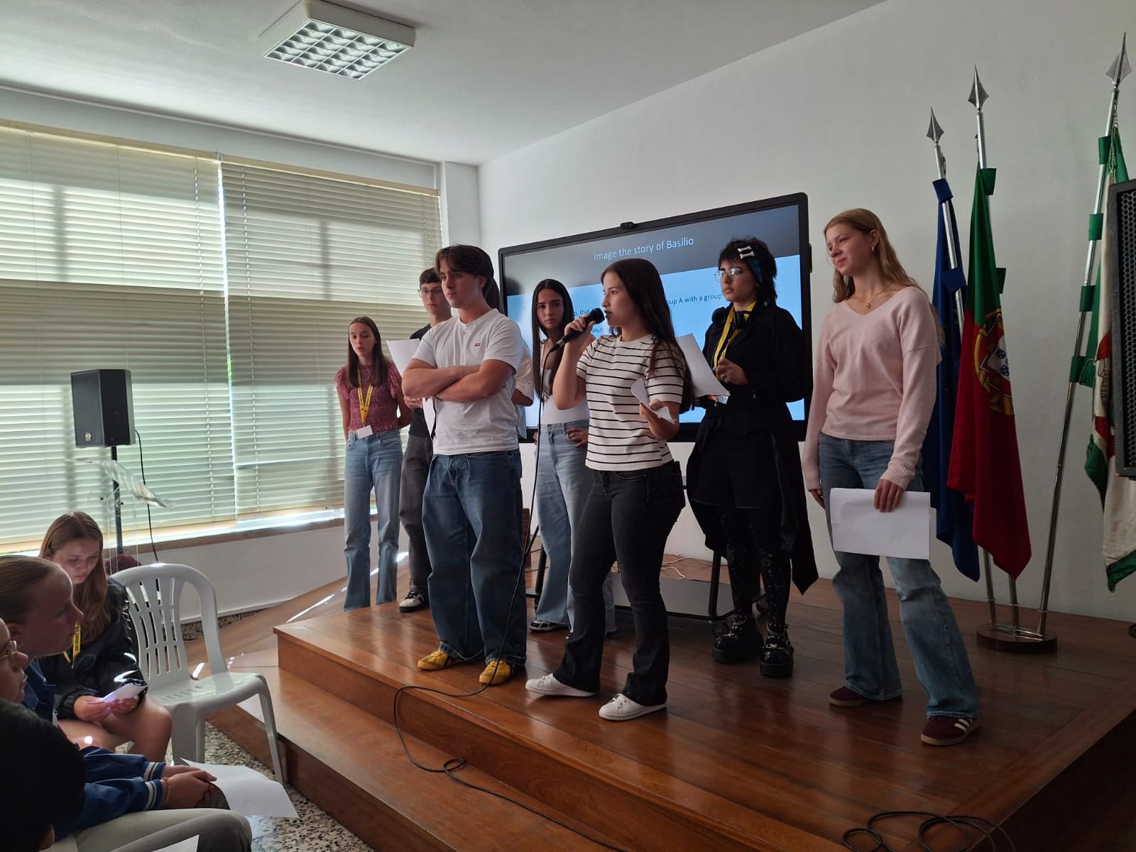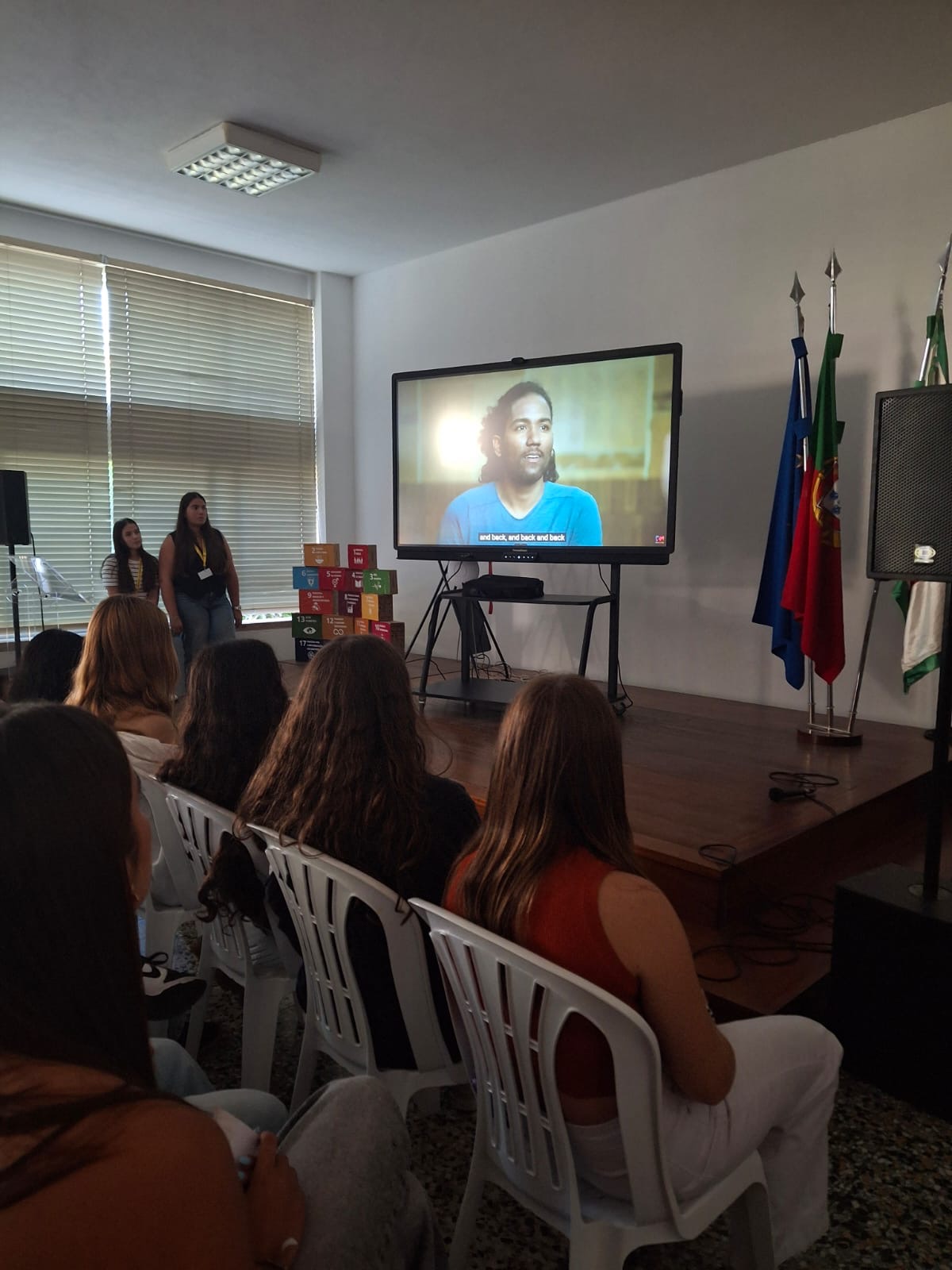 No dia 25, no período da manhã, na Biblioteca escolar Dr. Nélson Padrão, a atividade “In bag” foi dinamizada por Veneranda Barbosa, Jurista, e Alexandra Novais, Educadora Social, e abordou a temática da diversidade e da Inclusão. Os alunos participaram numa simulação que teve por objetivo refletir sobre as necessidades humanas em situações de emergências e acolhimento. A iniciativa dividiu-os em dois grupos com papéis complementares. Um dos grupos foi desafiado a construir uma “mochila de sobrevivência”, contendo os itens que considerariam indispensáveis numa situação de deslocamento ou catástrofe. Os alunos tiveram de pensar de forma crítica e prática, selecionando objetos que garantissem segurança, higiene, alimentação, comunicação e conforto básico. Paralelamente, um segundo grupo de alunos assumiu o papel de uma instituição ou pessoa responsável por acolher os deslocados. Este grupo teve de preparar um plano de receção, considerando os recursos disponíveis, os espaços de abrigo e os serviços que poderiam oferecer. No final da atividade, os dois grupos de alunos cruzaram as suas propostas e analisaram se as necessidades identificadas pelos deslocados coincidiam com as soluções pensadas pelos acolhedores. A atividade destacou-se pela sua abordagem colaborativa e pela capacidade de promover o pensamento crítico entre os alunos dos diferentes países, sensibilizando-os para os desafios reais enfrentados por populações deslocadas e para a importância de uma resposta coordenada e humanizada.