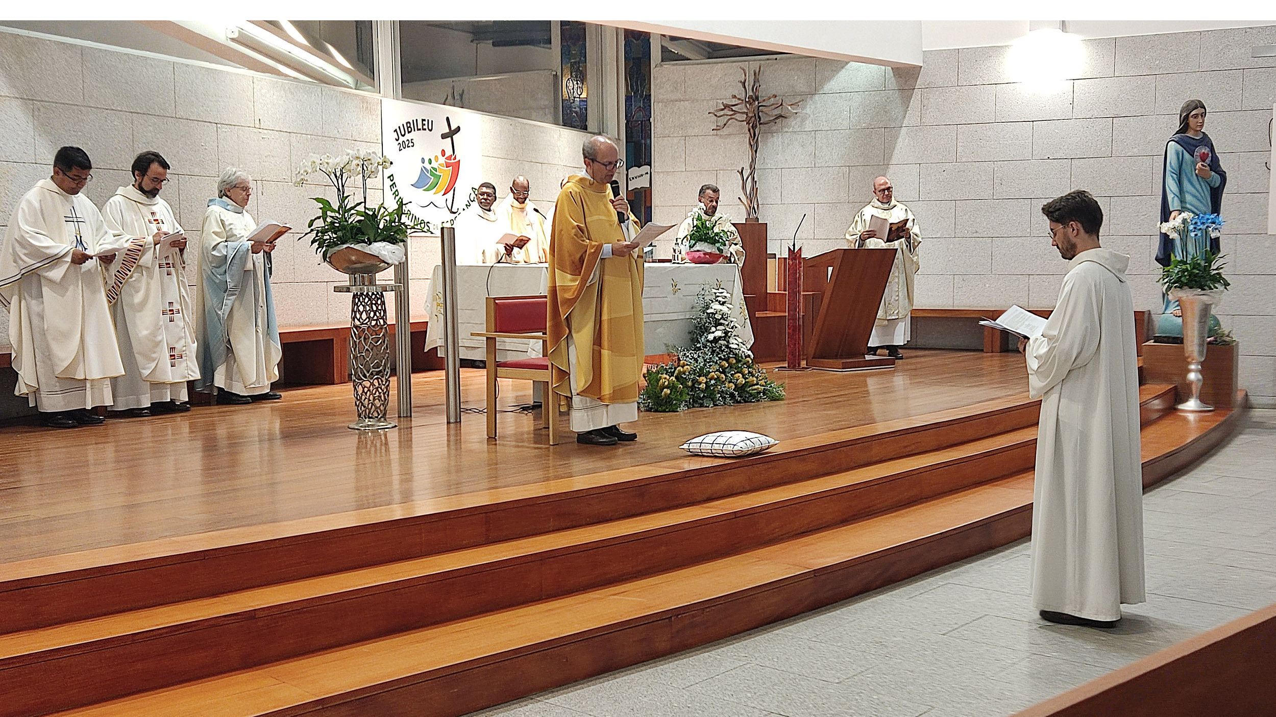 Na sua homilia, o padre Carlos Candeias destacou a passagem do Evangelho de São Lucas onde se lia: “Naquele tempo, os Apóstolos disseram ao Senhor: «Aumenta a nossa fé». O Senhor respondeu: «Se tivésseis fé como um grão de mostarda, diríeis a esta amoreira: ‘Arranca-te daí e vai plantar-te no mar’, e ela obedecer-vos-ia.” Usando da palavra, partilhou que a fé é a relação que estabelecemos com Deus, e que basta que a nossa fé seja como um grão de mostarda, uma semente das mais pequenas para que Deus realize em nós, por nós, os mistérios mais admiráveis. Basta que deixemos aberta uma pequena “frincha” no nosso coração para que Ele o preencha com o dom do seu Amor, com a sua luz. E foi essa luz que acendeu no Vítor a sua vocação, que inflamou o seu coração com um fogo que abrasa e que o Vítor quer partilhar com todos os que se cruzam no seu caminho, levando o Evangelho “às ilhas mais distantes”, à imagem de Santo António Maria Claret.