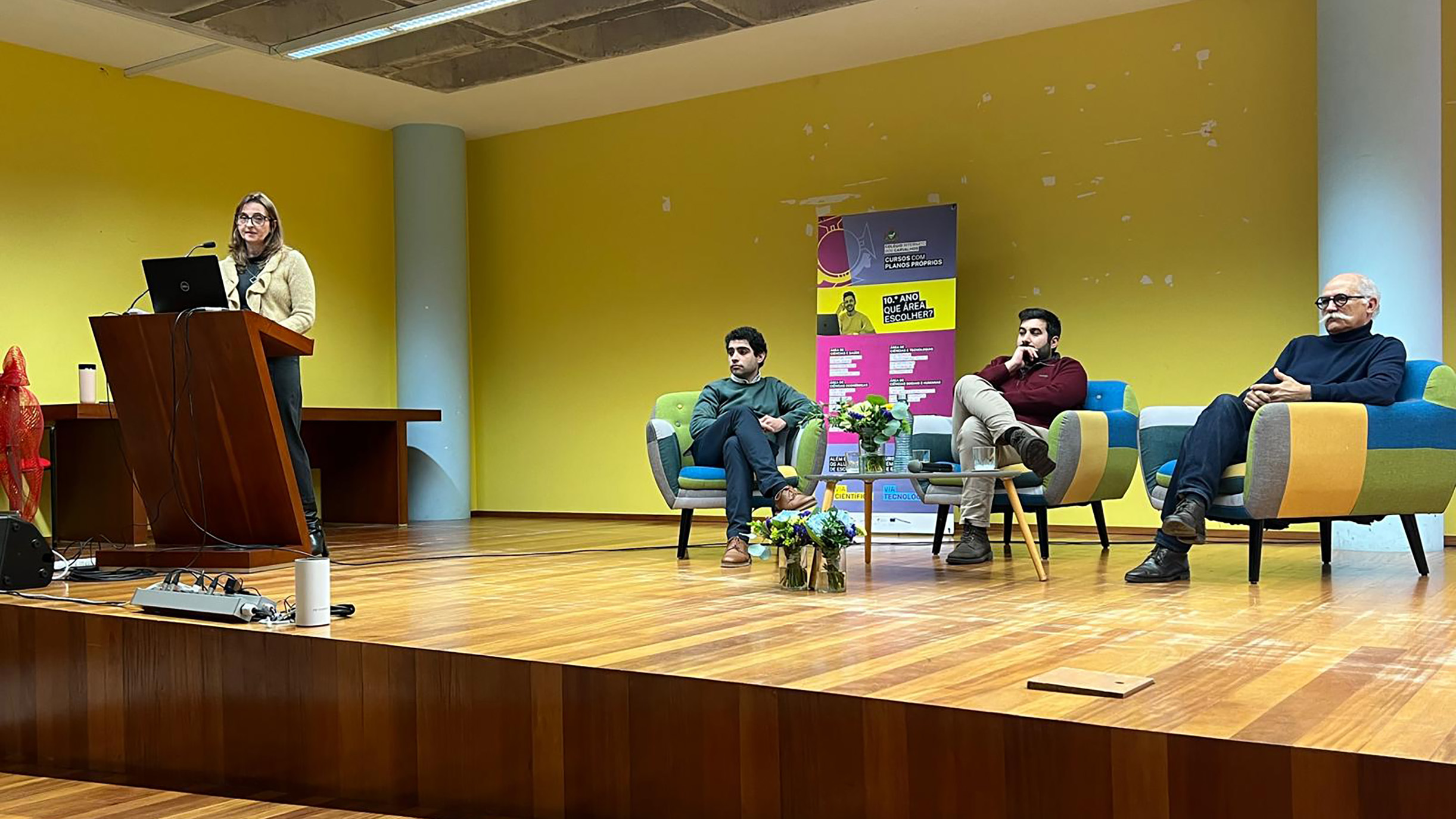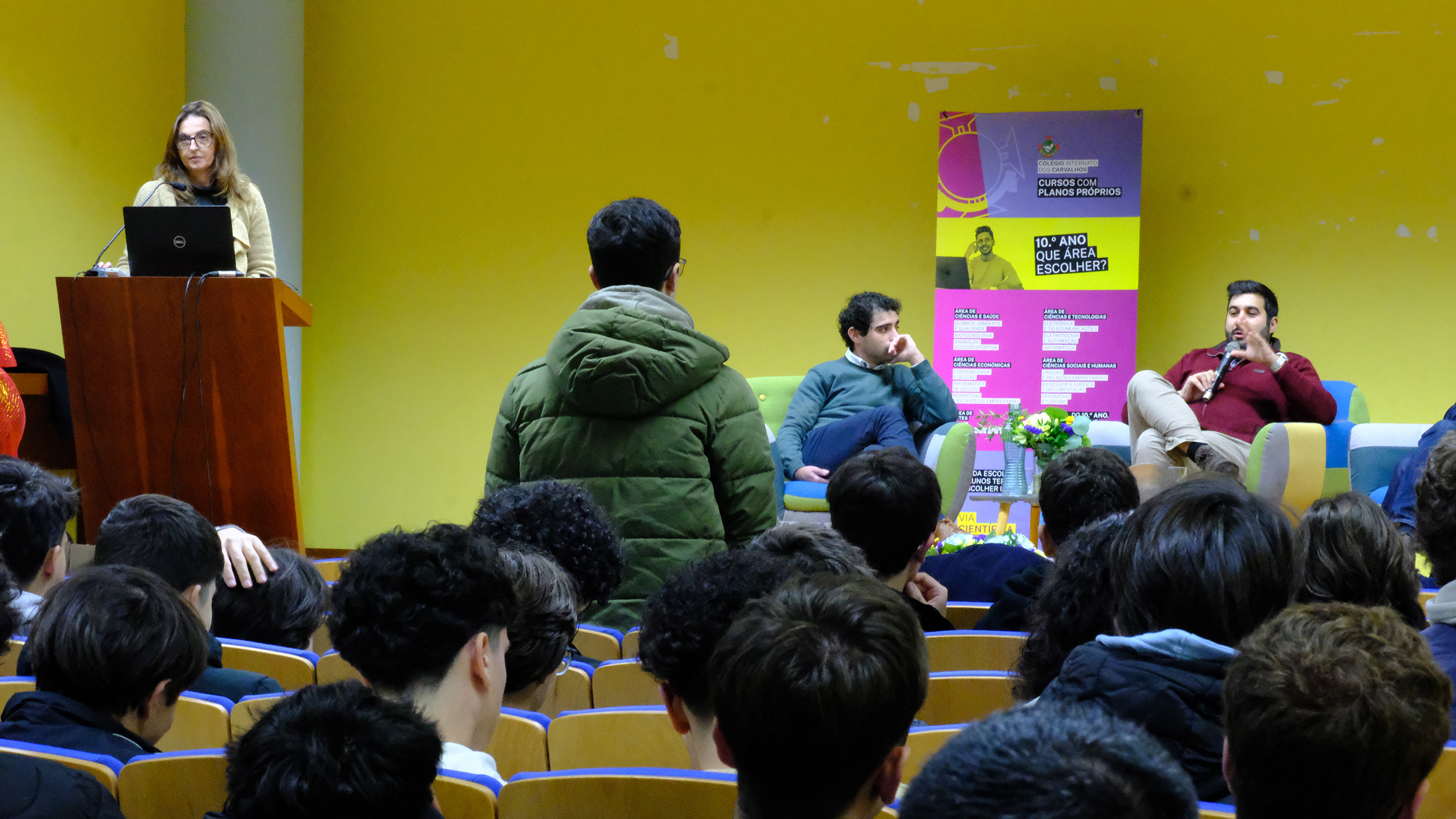 Assim, entre as 9h00 e as 12h00, todos os alunos do 11.º e 12.º anos dos cursos de Eletrotecnia e Automação Industrial (EA), Eletrónica e Telecomunicações (ET) e Informática (IF) do Colégio Internato dos Carvalhos (CIC) reuniram-se no Auditório Claret, junto ao Santuário do Coração de Maria, para assistirem às palestras cujos oradores foram representantes de três empresas que desenvolvem projetos na área das tecnologias.