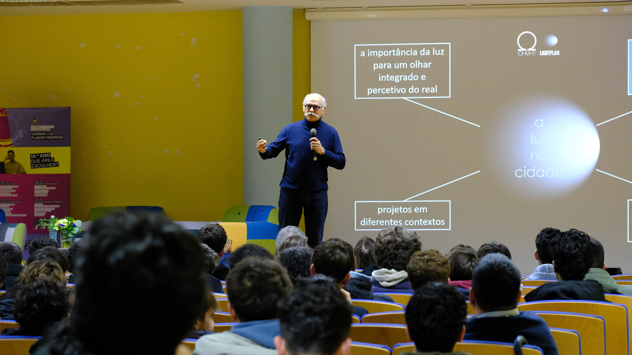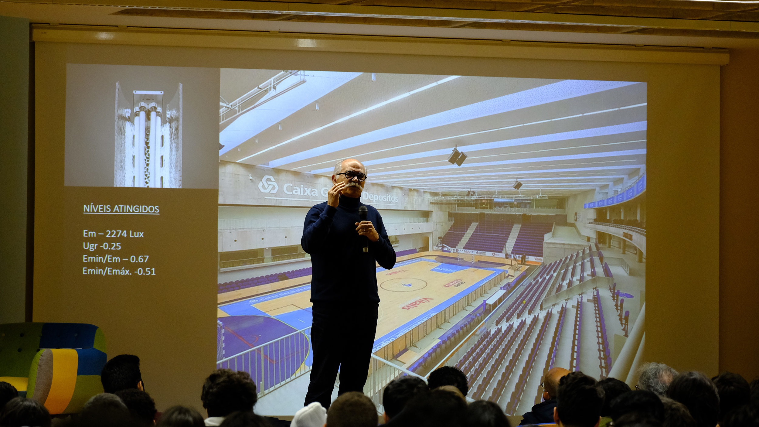 Entretanto, realizou-se uma pausa para um pequeno lanche, pelas 10h00. Num segundo momento, interveio o Eng.º Fernando Gusmão, da OHM- E + LIGHTPLAN, que centrou a sua apresentação na definição de Ética e na importância que as decisões podem ter. Para além disso, deu exemplos de vários projetos relevantes da sua empresa, explicou o seu método de trabalho que considera fundamental para obter um sucesso empresarial. Estes exemplos foram esclarecedores e apresentavam uma enorme imaginação, sendo verdadeiramente dinâmicos. Em relação ao conceito de luz, apresentou uma citação esclarecedora do Padre António Vieira “A luz moderada faz-nos ver, a luz excessiva faz-nos cegar”. Do ponto de vista humano, salientou que a Ética é necessária e fundamental para construir as relações pessoais e empresariais.