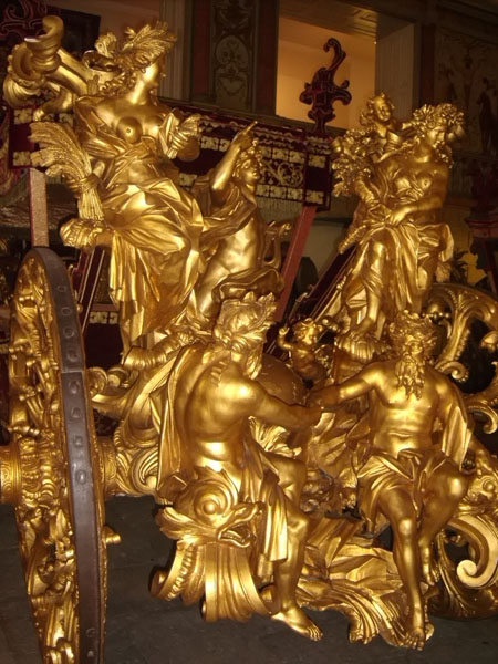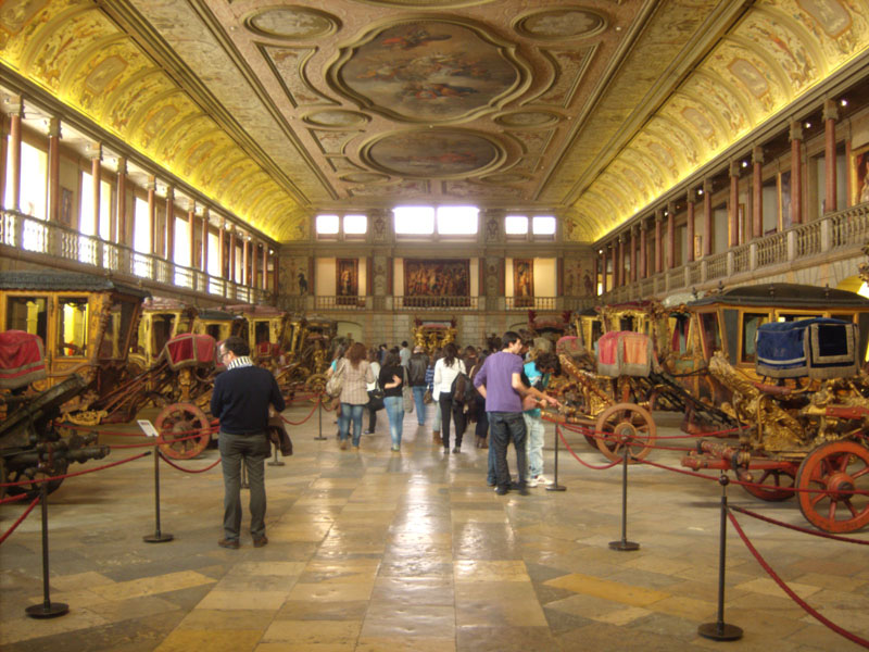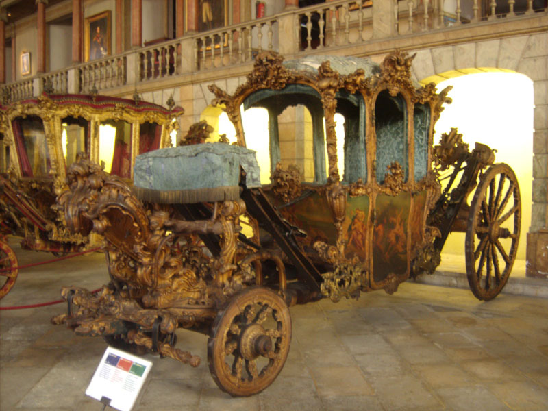 talha dourada, até aos três coches barrocos construídos em Roma a mando de D.
