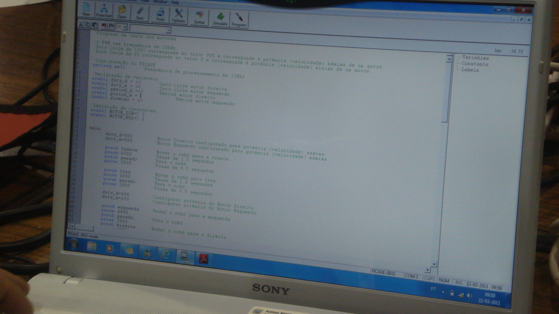 PICAXE 40X2. A execução do robô teve como finalidade a participação em provas de