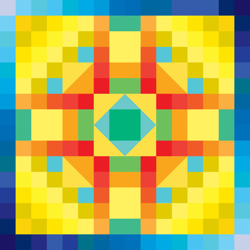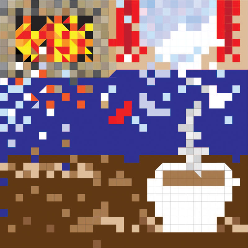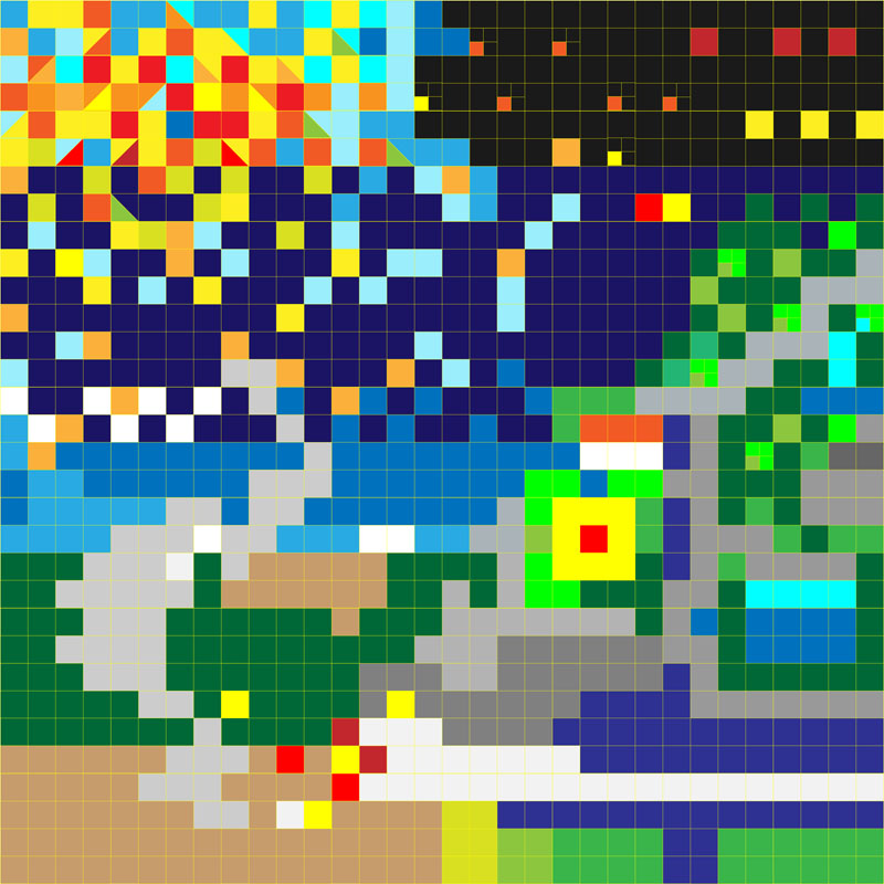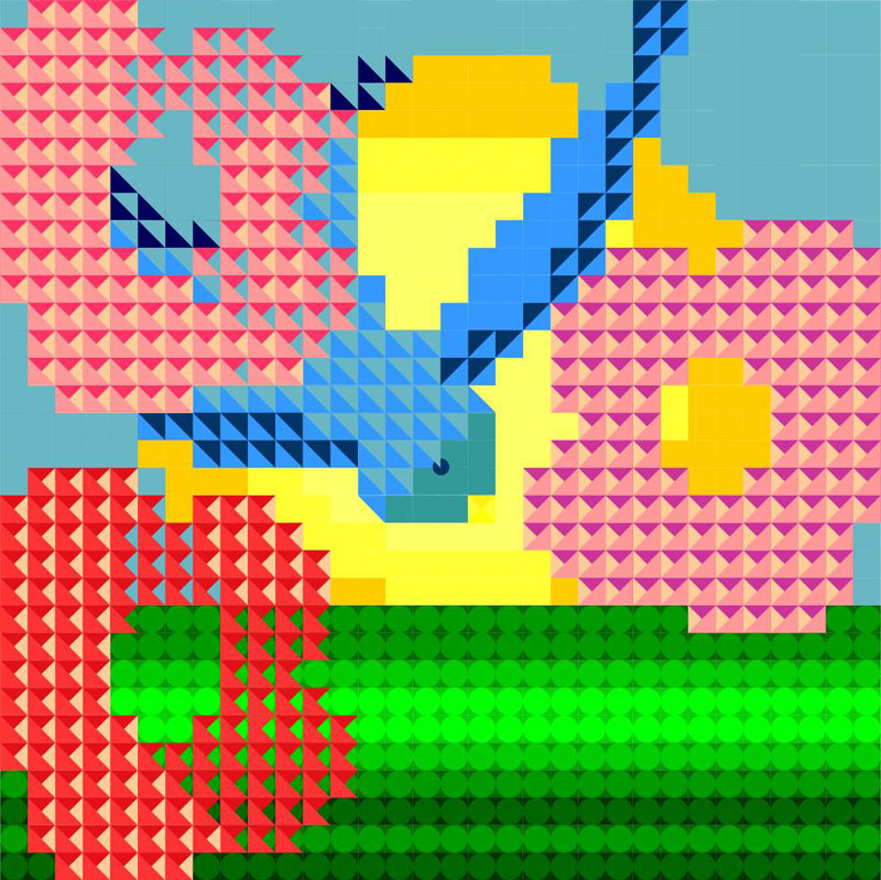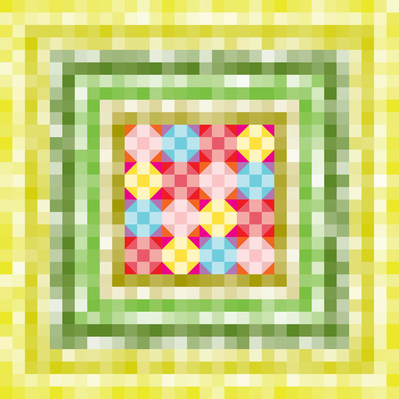 As quatro estações do ano foram o ponto de partida para o estudo e manipulação da grelha (malha quadrangular) e da cor. Partindo de uma grelha apertada, as possibilidades criativas da utilização do quadrado, triângulo e círculo aumentam… formando imagens abstractas, simbólicas e figurativas. Nalguns casos as imagens sugerem a construção através de pixéis. A cor foi analisada de forma a ser aplicada de forma ilustrativa/representativa de cada uma das estações.