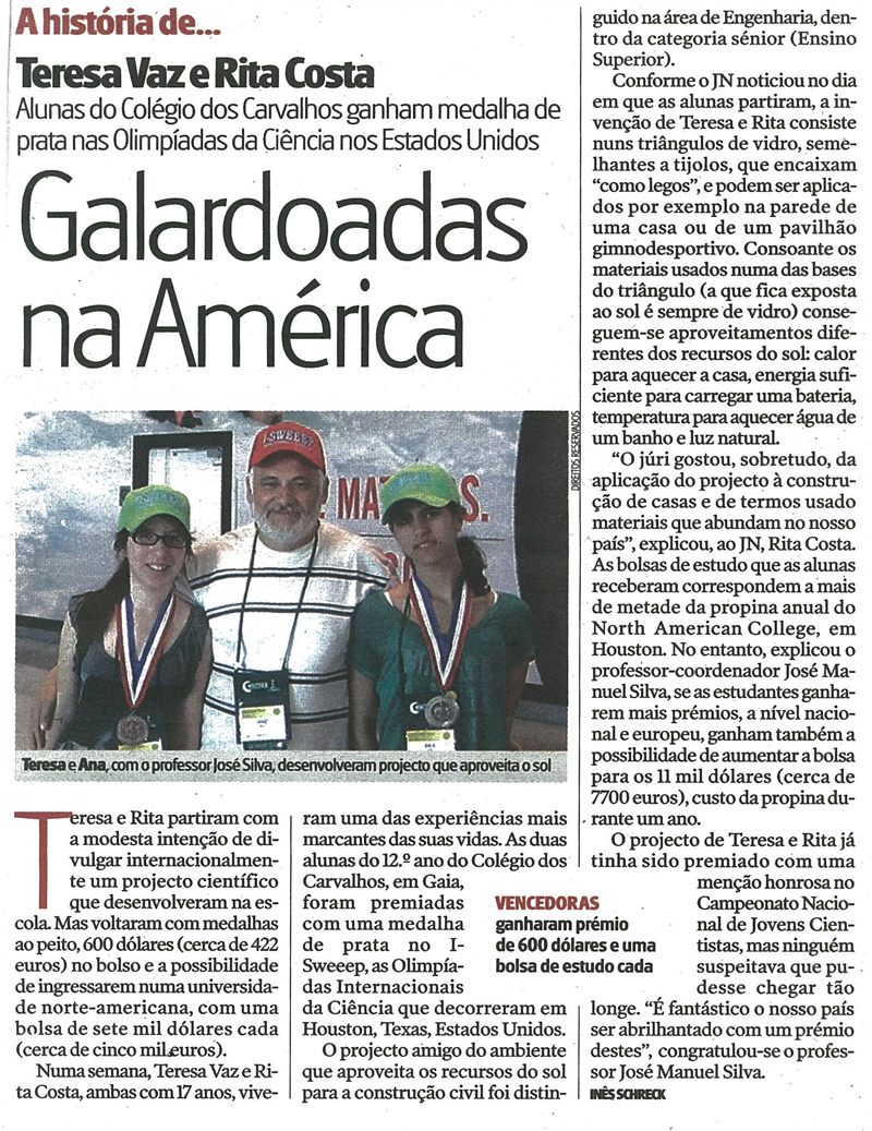 Em anexo a notícia feita pelo professor José Manuel Silva: