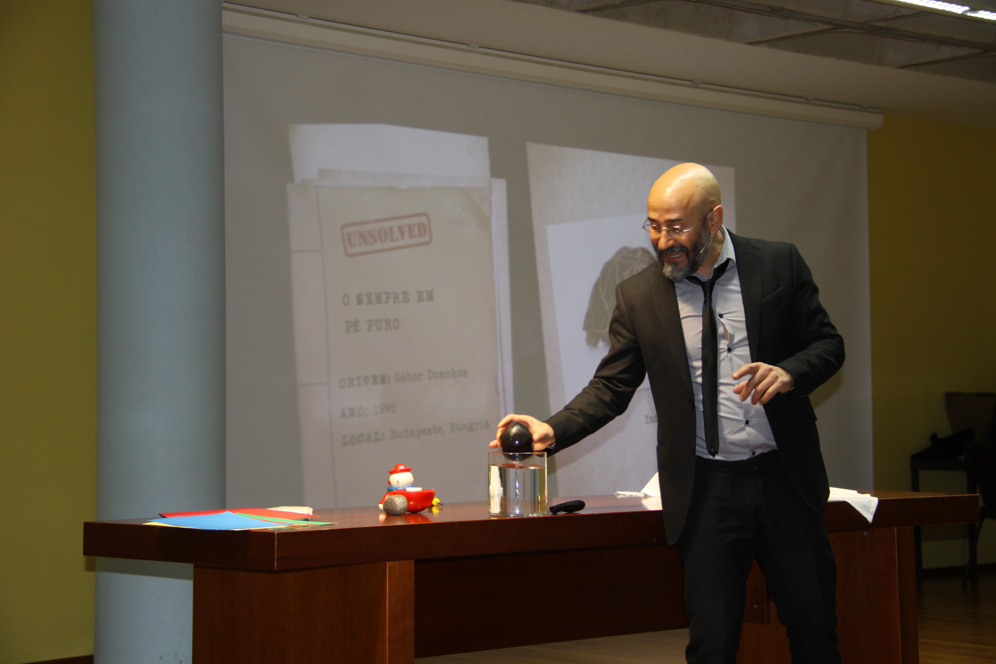 “Durante a apresentação, a comunicação do professor com o público foi imensamente apelativa e cativante. Temáticas bastante interessantes, momentos de "suspense" e aprendizagem, e interação com o público foram elementos-chave que tornaram a apresentação um verdadeiro espetáculo!”