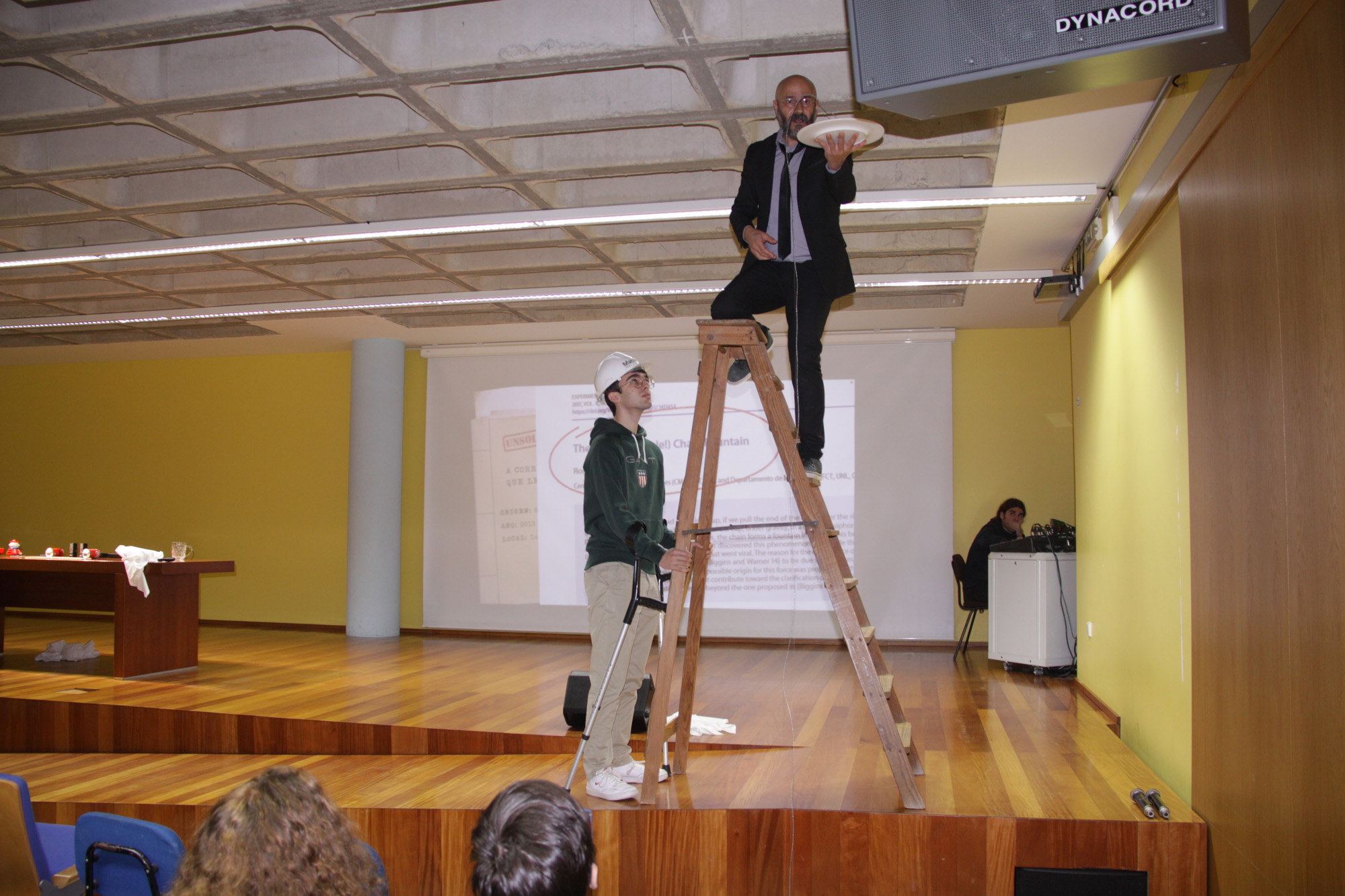 Neste evento, foram abordadas questões do dia a dia e o modo como a Matemática é usada para as resolver. O professor realizou experiências e mostrou a ligação da matemática a outras áreas do saber (física, filosofia, história, entre outras). Todos tiveram oportunidade de “viajar pelo desconhecido e espreitar o mundo das coisas que sabemos… e que não sabemos” e de perceberem que “sem a Matemática, tudo o que vemos à nossa volta, do mais banal ao mais transcendental, seria indecifrável”.