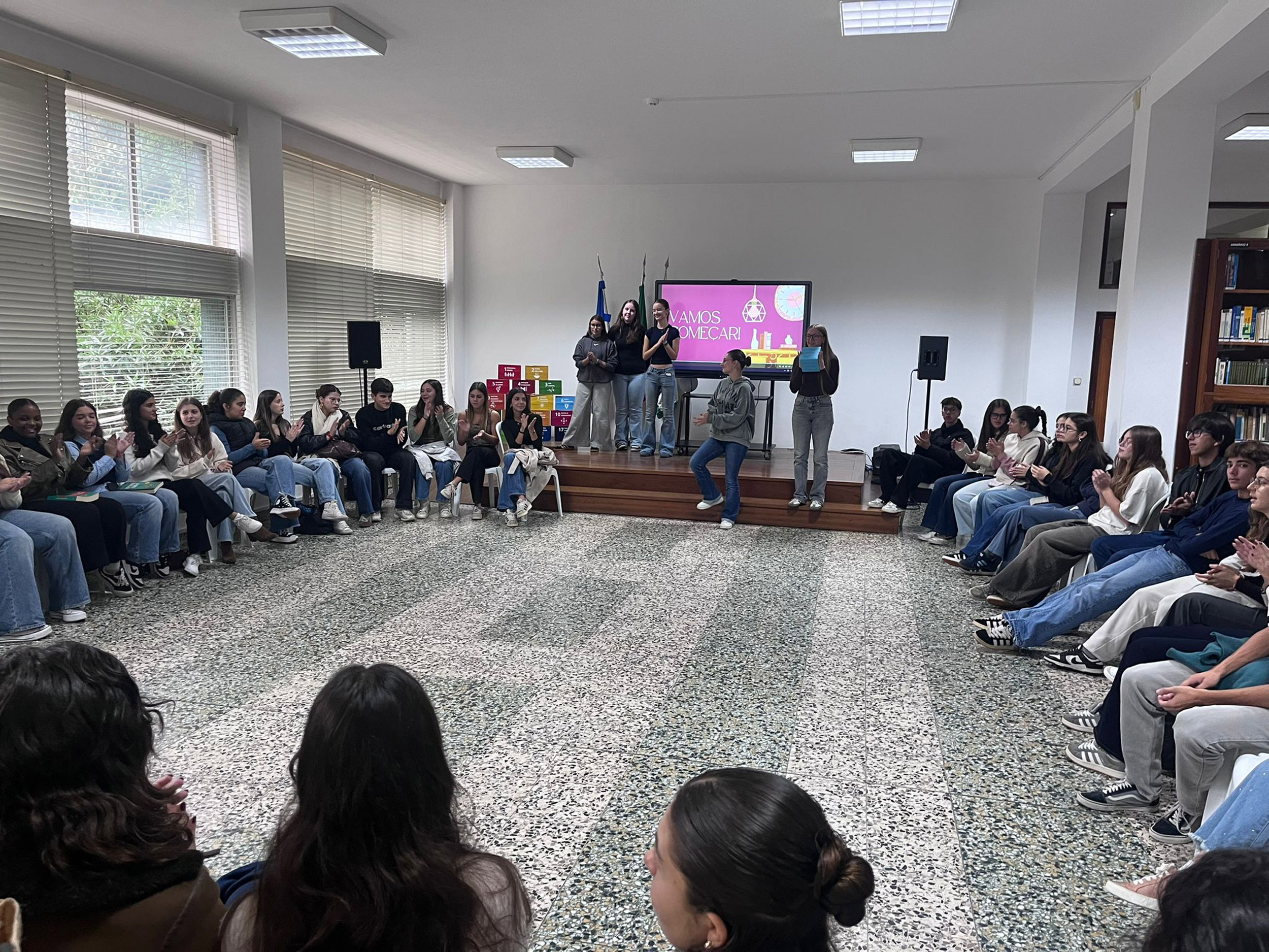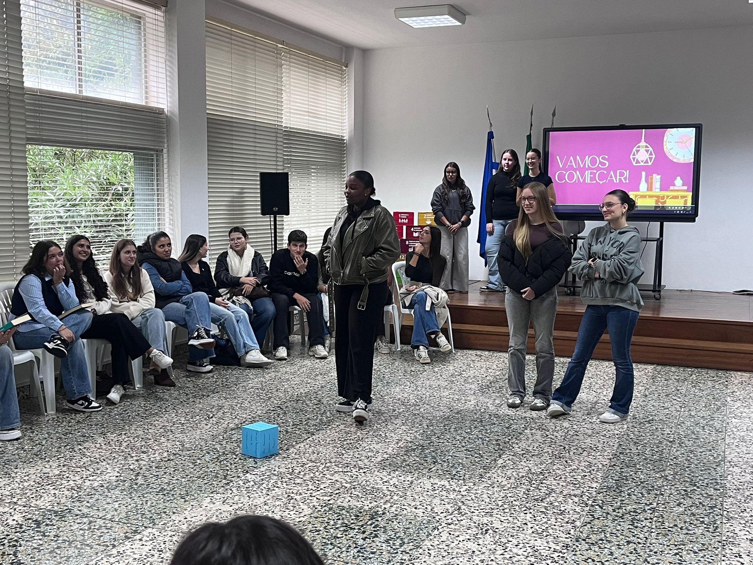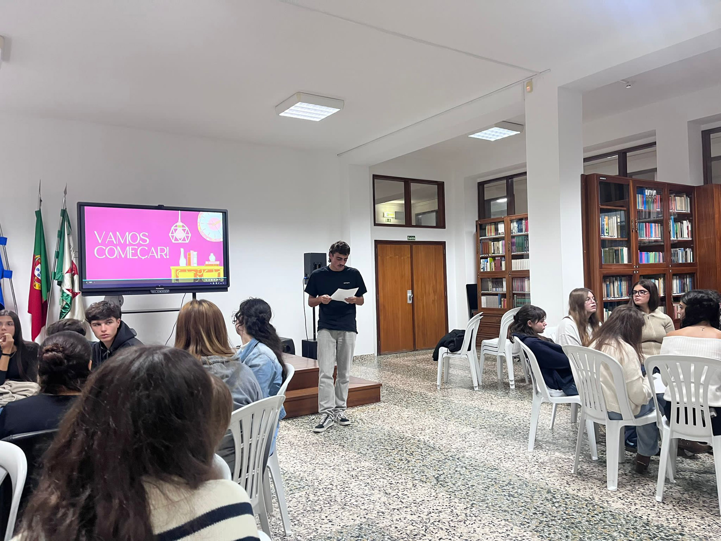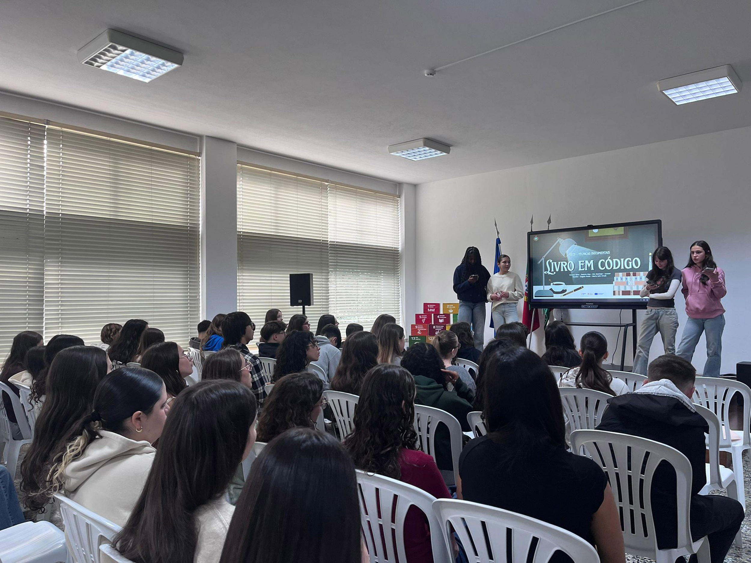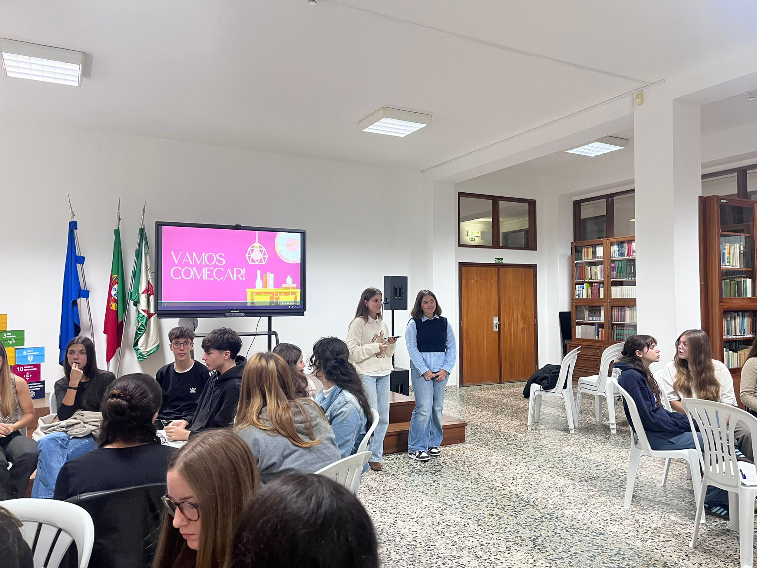 As turmas convidadas — 10.º H1, 10.º H2, 10.º H3, 12.º PT e 12.º AJ — participaram ativamente, contribuindo para uma celebração que ultrapassou os limites físicos da biblioteca e se estendeu à Comunidade Educativa.