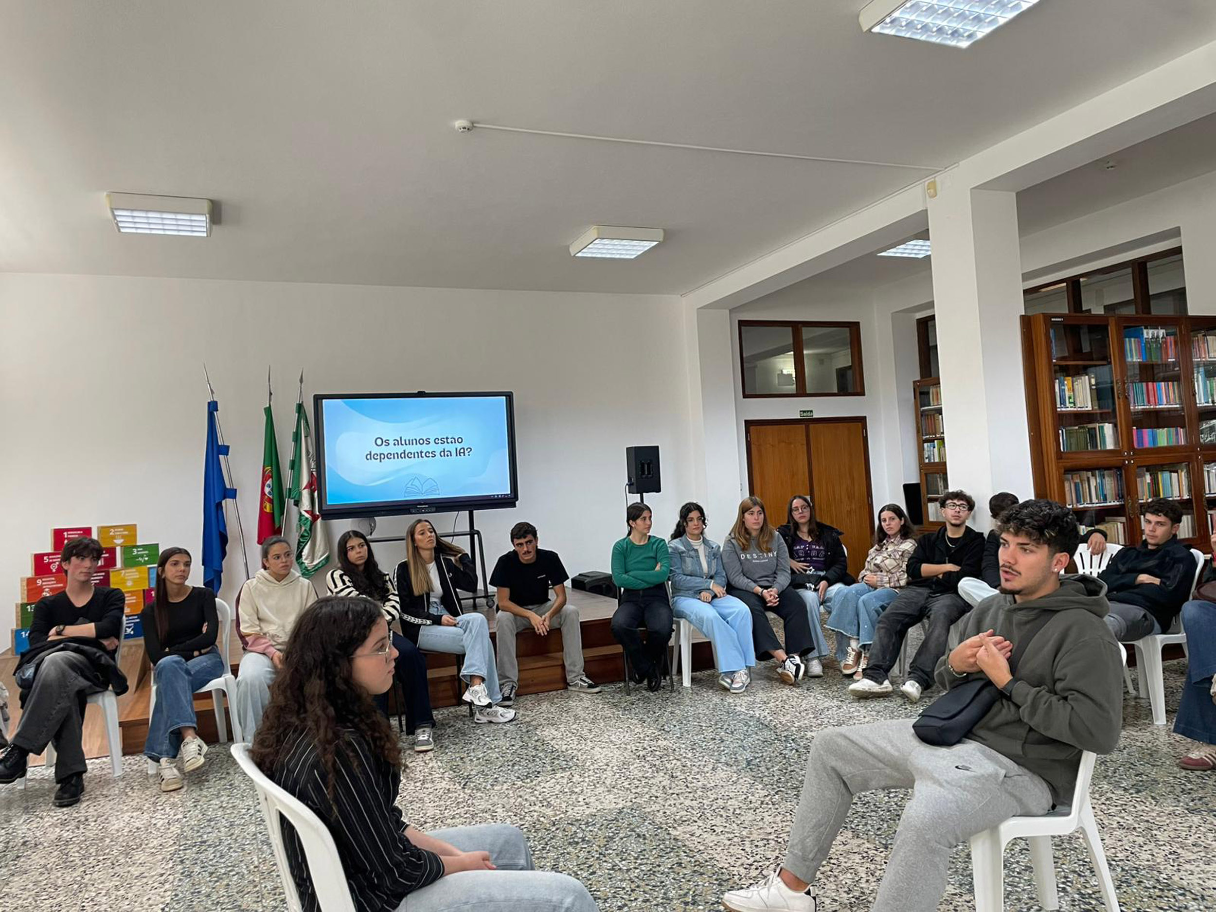 Assim, inspirados pelo tema “Para além das estantes: IA, Bibliotecas e o futuro das histórias”, os alunos criaram e dinamizaram atividades que exploraram o impacto da Inteligência Artificial na leitura, na escrita e na forma como contamos histórias. A biblioteca tornou-se laboratório de ideias, espaço de debate e oficina de criação.
