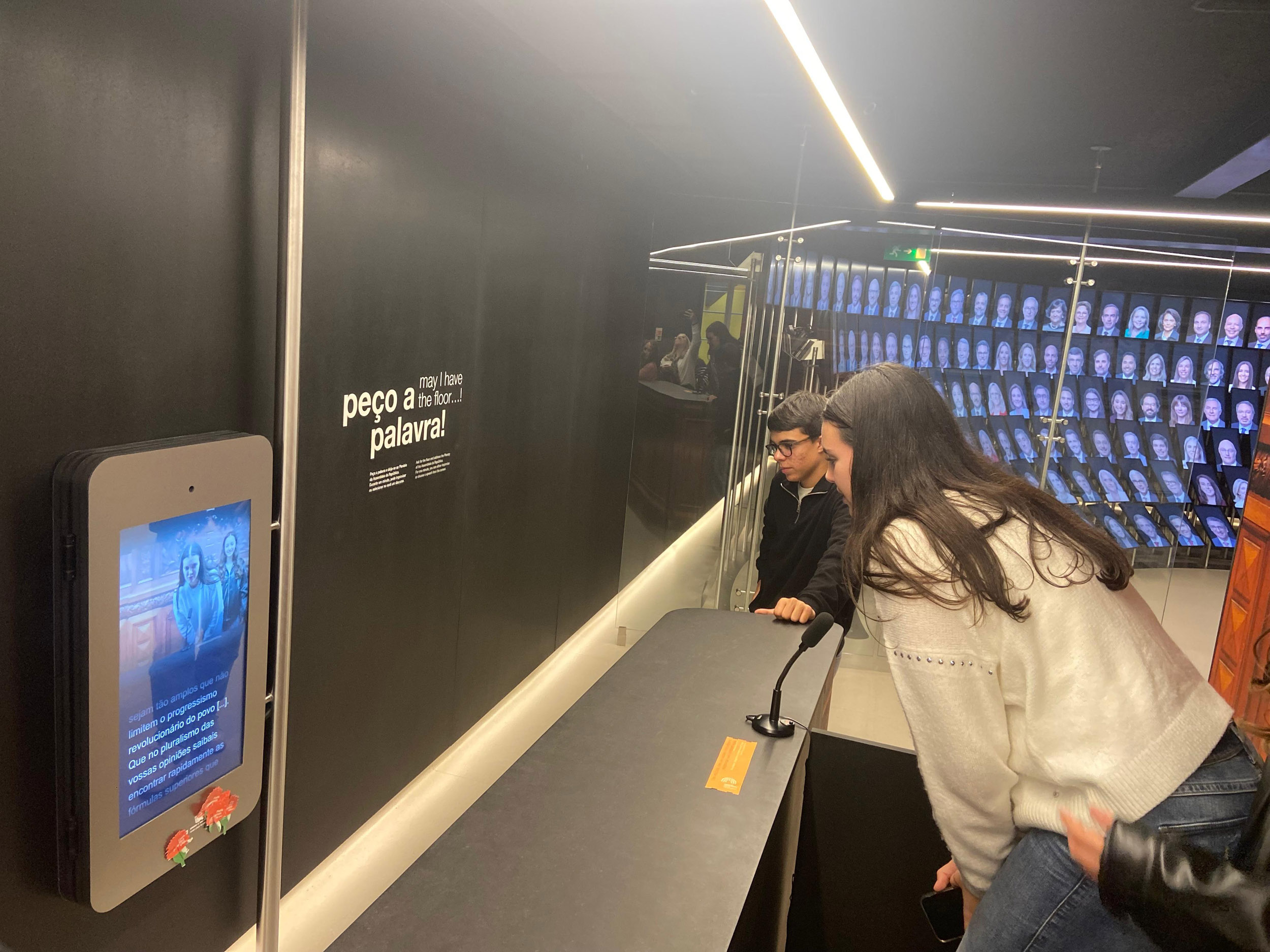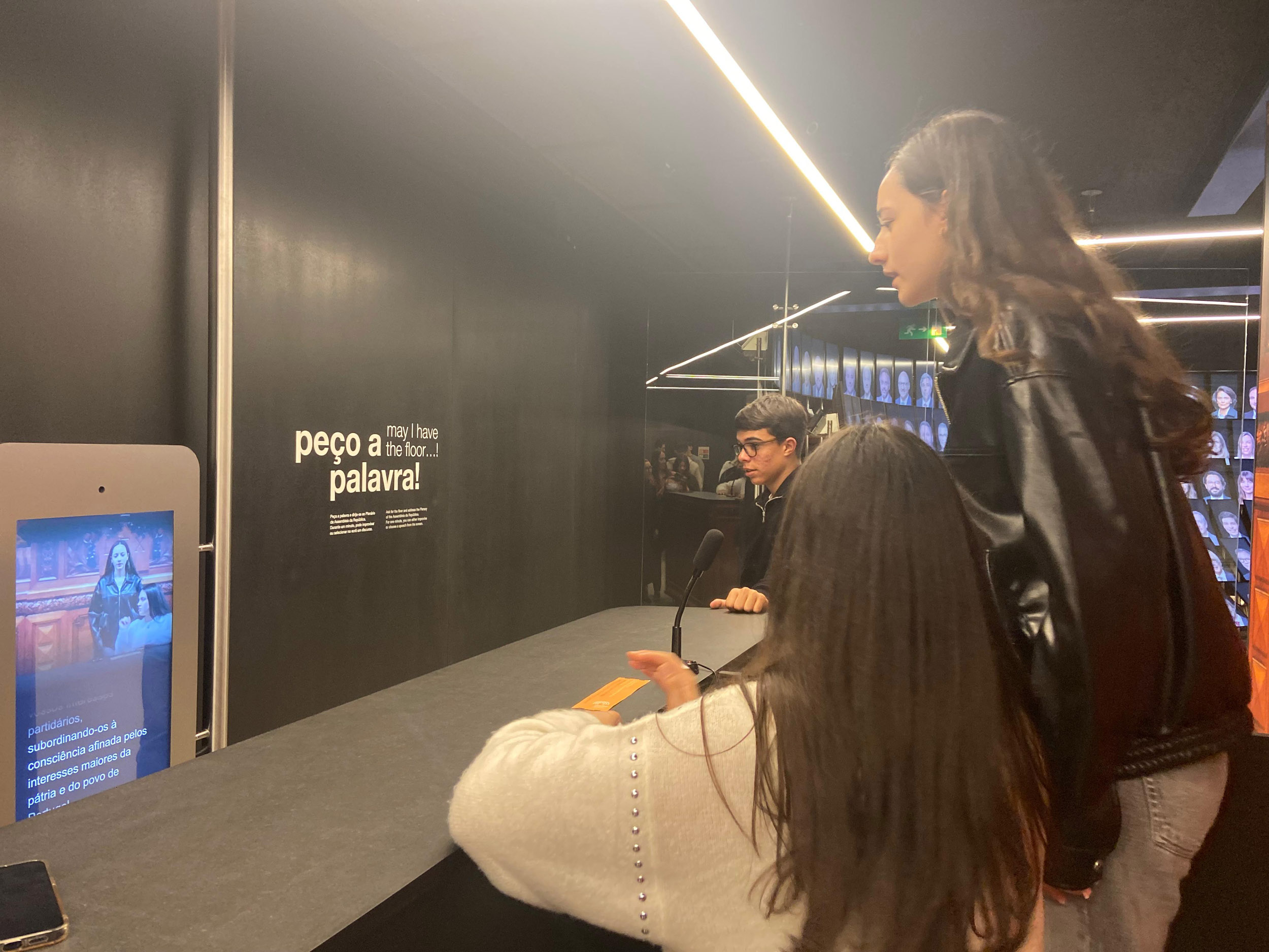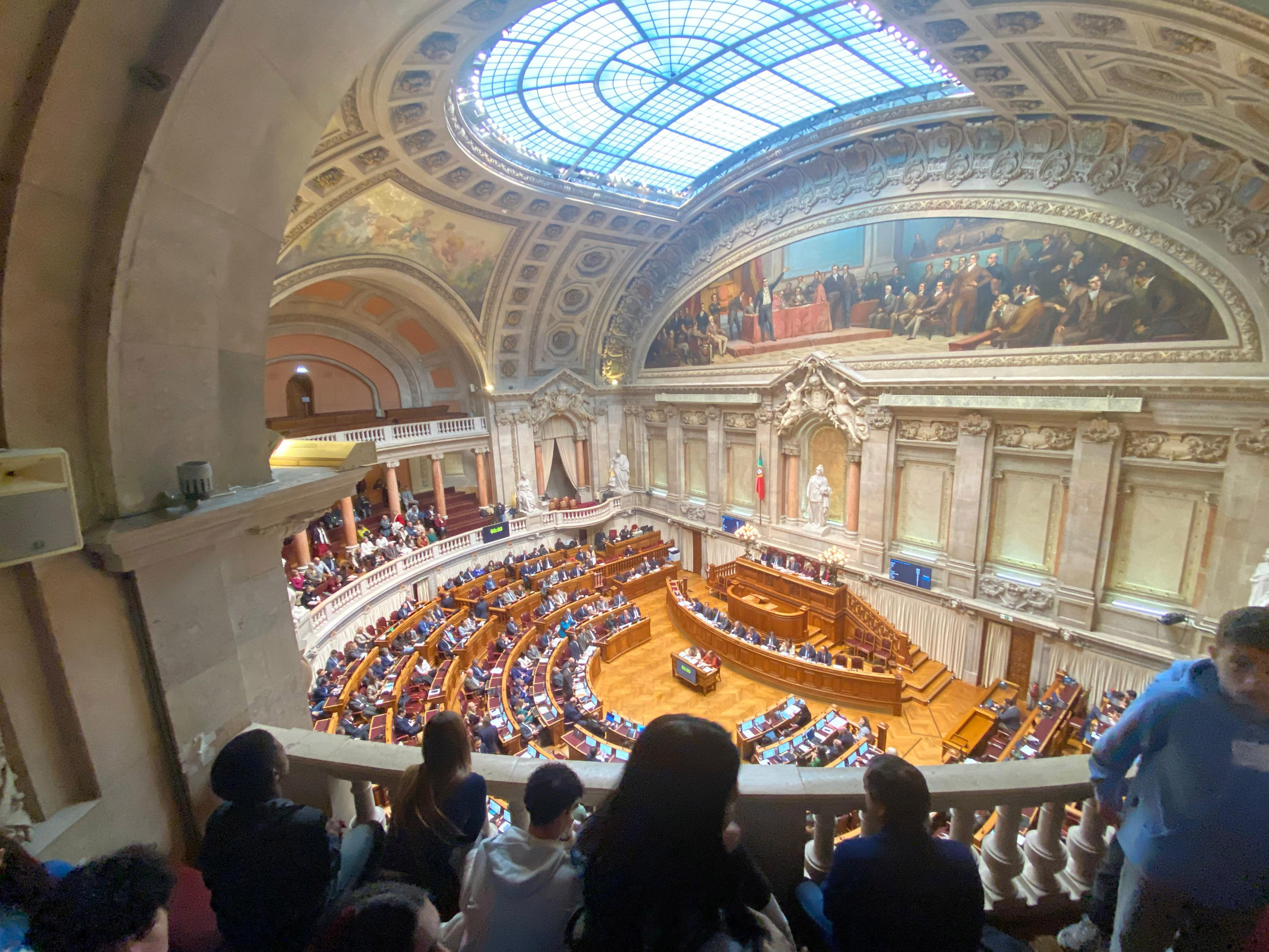 A atividade iniciou-se na Assembleia da República onde os alunos tiveram oportunidade de assistir a uma sessão plenária de discussão do Orçamento do Estado, conhecer alguns dos espaços mais emblemáticos, compreender o funcionamento do processo legislativo e perceber a importância das instituições democráticas na organização do país. A explicação fornecida permitiu esclarecer dúvidas, aproximar os alunos da vida política nacional e reforçar a importância da participação cívica. Acompanhados pela Senhora Deputada Dr.ª Helga Alexandra Freire Correia e pelo Senhor Deputado Eng.º Rui Manuel Alves da Rocha Pereira, que, para além de explicarem e mostrarem os vários locais e temáticas da Assembleia, proporcionaram uma contextualização detalhada, o grupo beneficiou de uma visita guiada que permitiu conhecer em profundidade a chamada Casa do Parlamento. Na Casa do Parlamento – Centro Interpretativo, os visitantes têm a oportunidade de compreender, de forma simples e acessível, como funciona o Parlamento Português. O espaço apresenta a história, a organização e as principais funções da Assembleia da República, explicando como são feitas as leis e como decorre o trabalho dos deputados. Através de conteúdos expositivos e interativos, o Centro procura aproximar os cidadãos do processo democrático e promover a educação para a cidadania.
