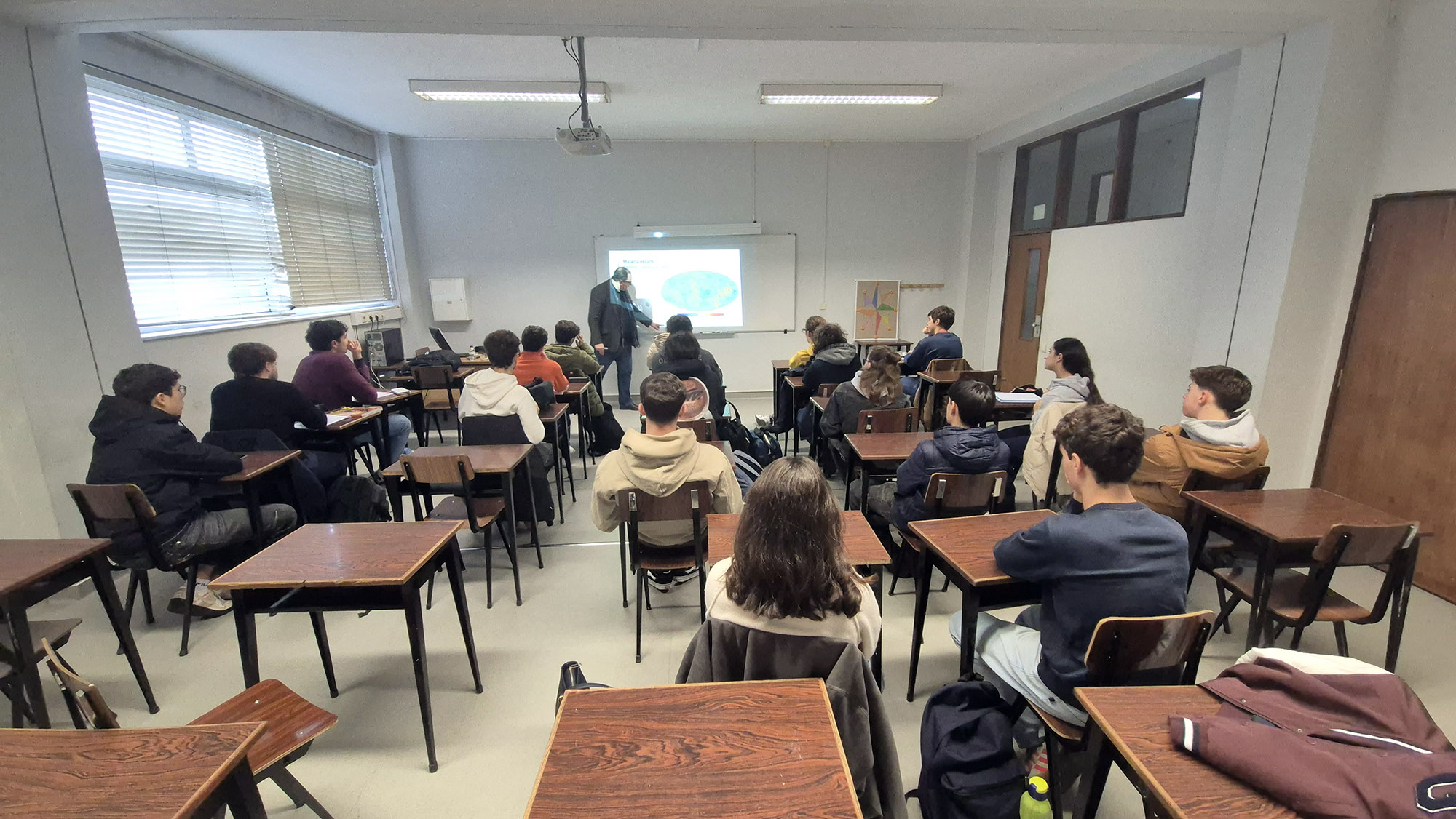 Esta “masterclass” alinha-se perfeitamente com o nosso Protocolo com o LIP, que visa aproximar a investigação de ponta das salas de aula, mostrando aos alunos as aplicações reais e as fronteiras do conhecimento científico. Para além da vertente puramente científica, também serviu como uma poderosa fonte de inspiração e orientação vocacional. O Professor Doutor Nuno Castro sublinhou o papel crucial da Física no desenvolvimento de tecnologias futuras e motivou os alunos a considerarem uma carreira na ciência e na investigação.