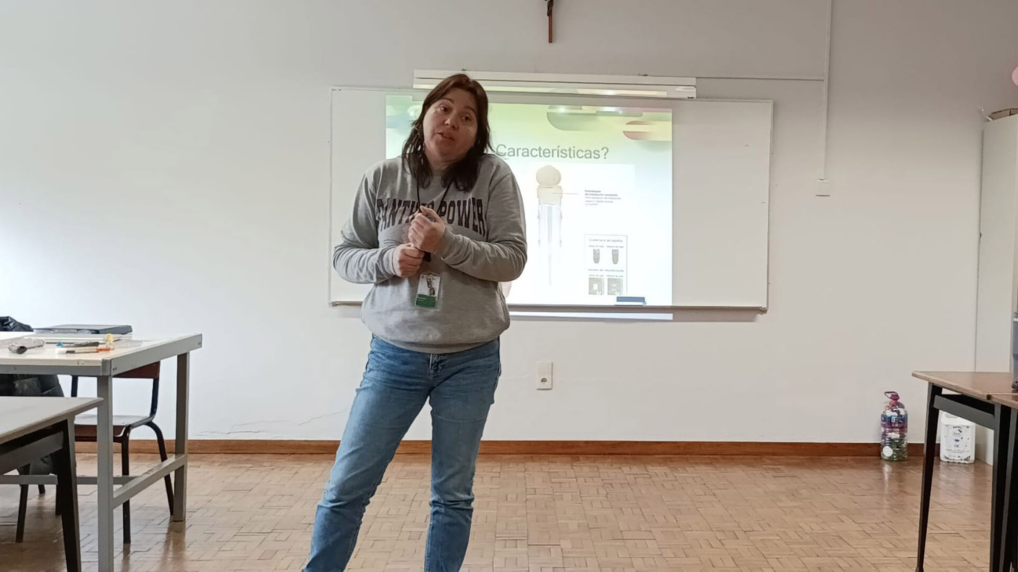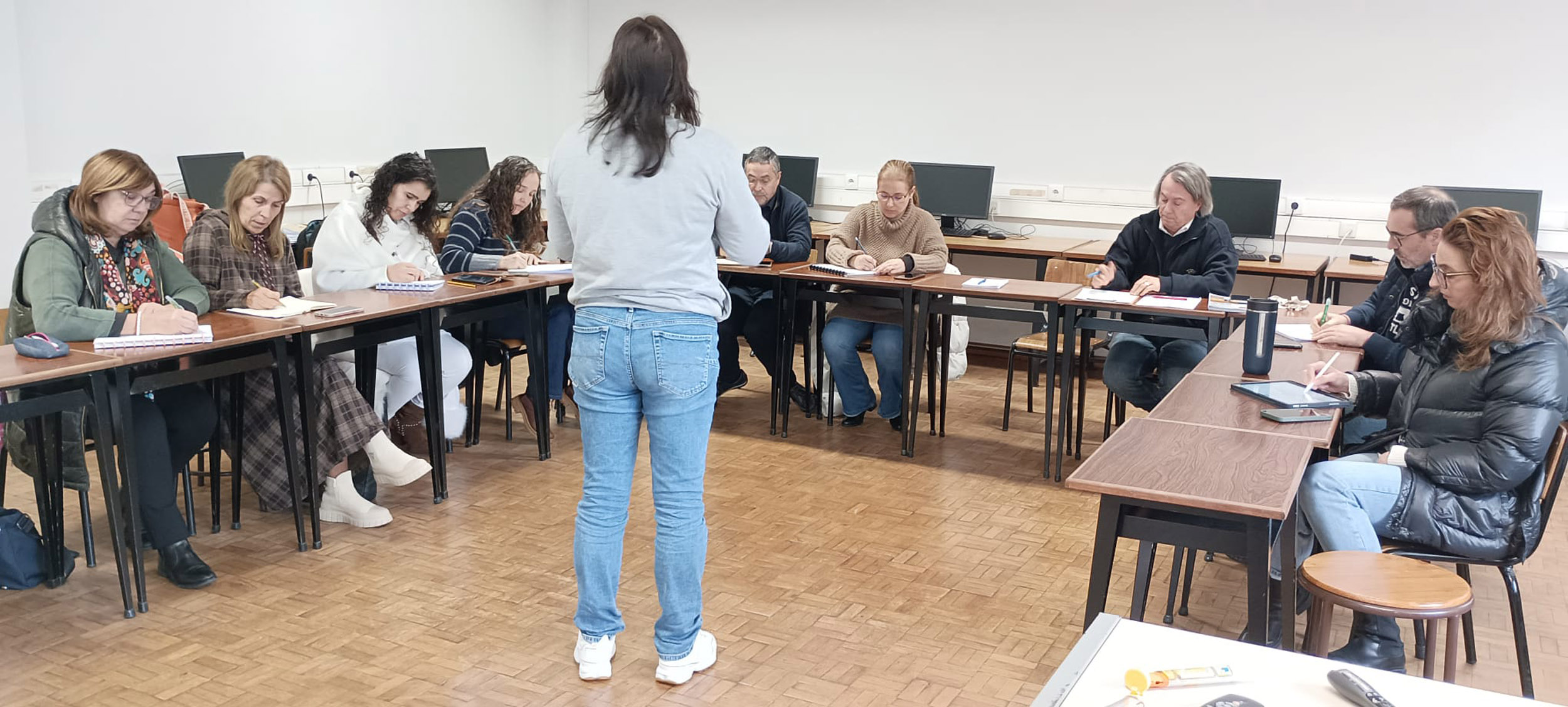 Tratou-se de uma formação muito útil e prática na medida em que a dinamizadora, além da informação e explicação sustentadas em diapositivos, também ilustrou com exercícios práticos – o manuseamento e aplicação do injetável com adrenalina, a Epipen, e a colocação em posição lateral de segurança, por exemplo.