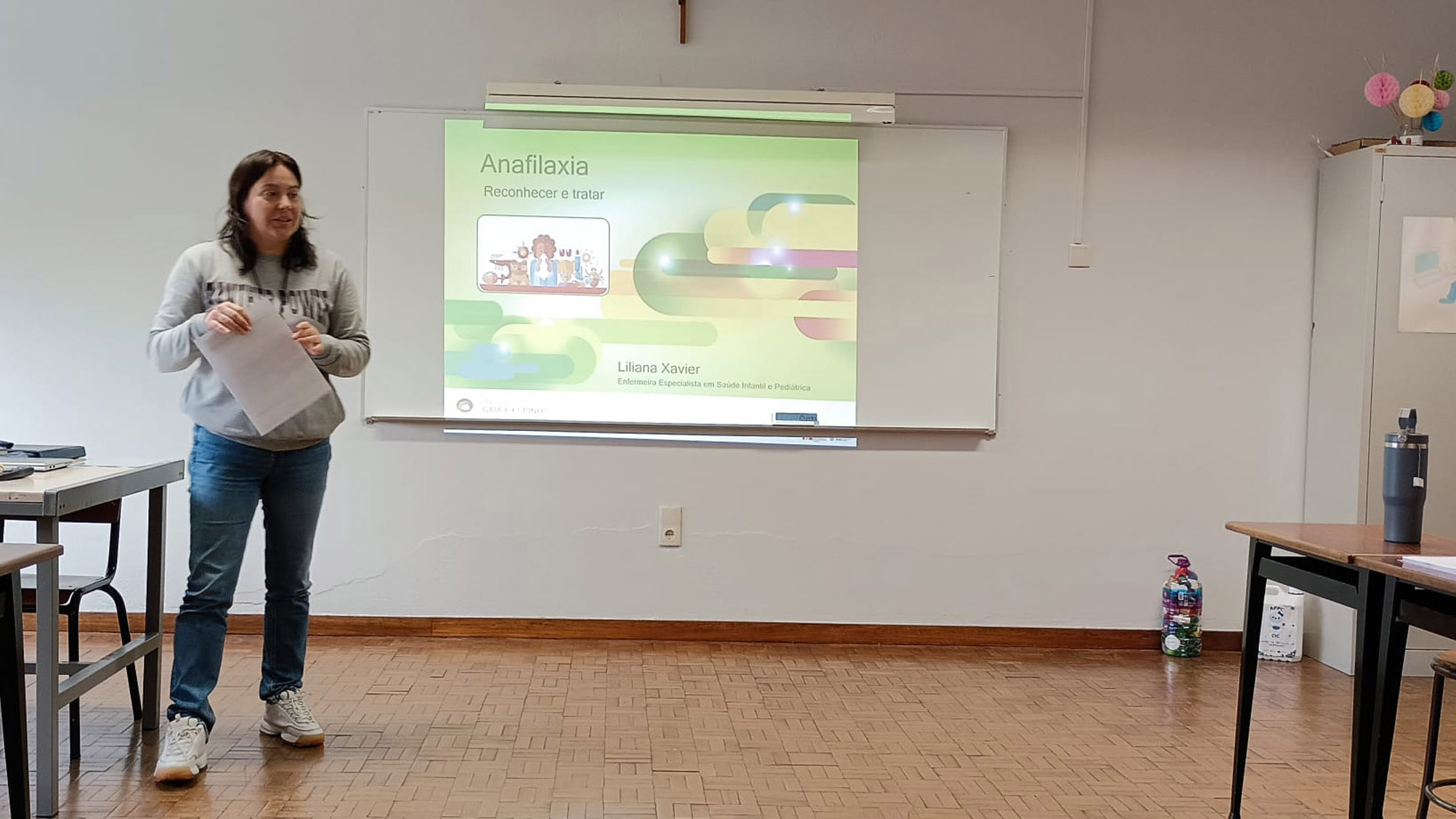 No dia 8 de janeiro, das 10h30 às 12h00, na sala 109, a Enfermeira Liliana Xavier, da ULS dos Carvalhos, dinamizou uma formação sobre alergias alimentares aos membros da Direção Pedagógica e da EMAEI (Equipa Multidisciplinar de Apoio à Educação Inclusiva), bem assim como à Coordenadora do Curso de Biotecnologia por ter dois alunos com este tipo de problemática.
