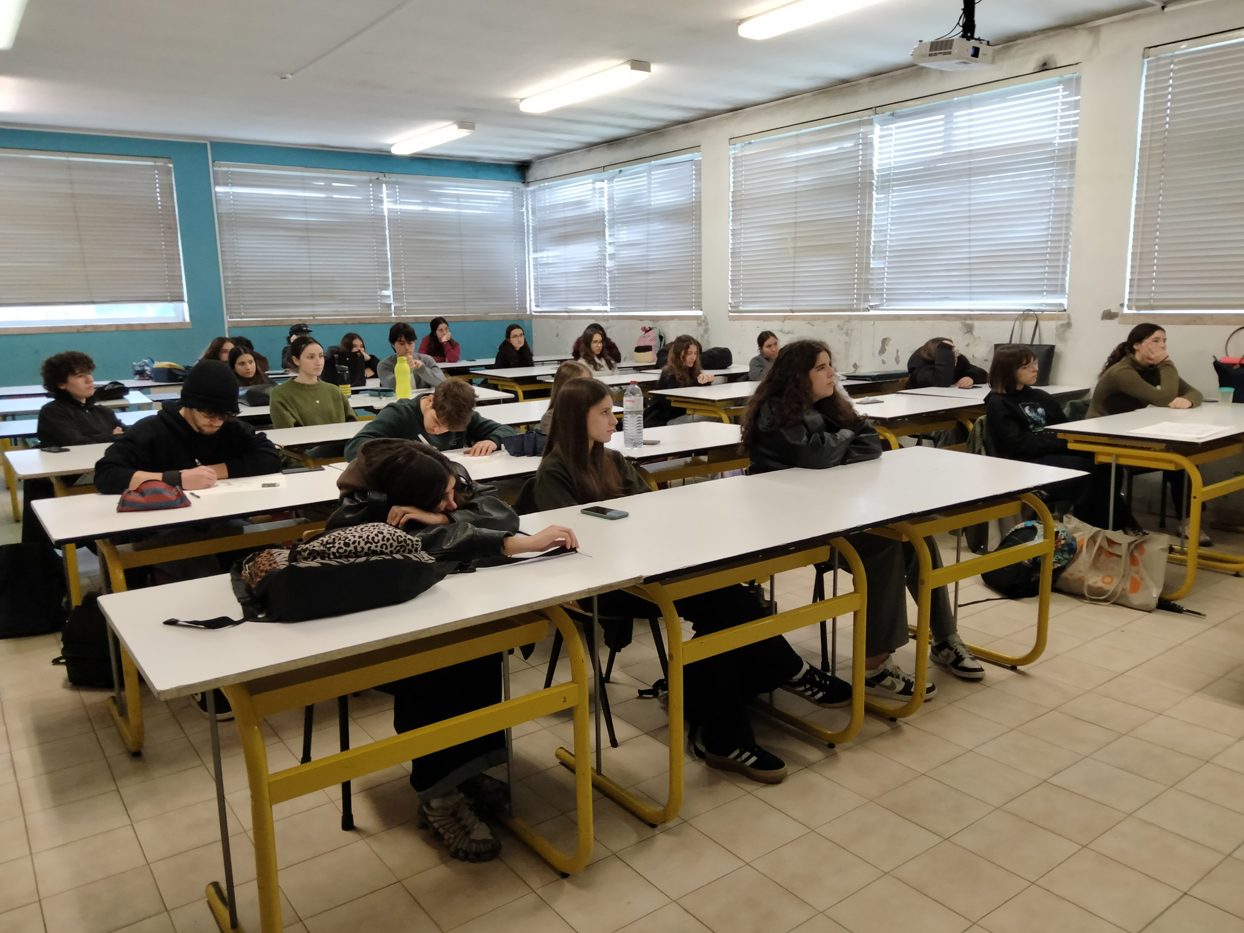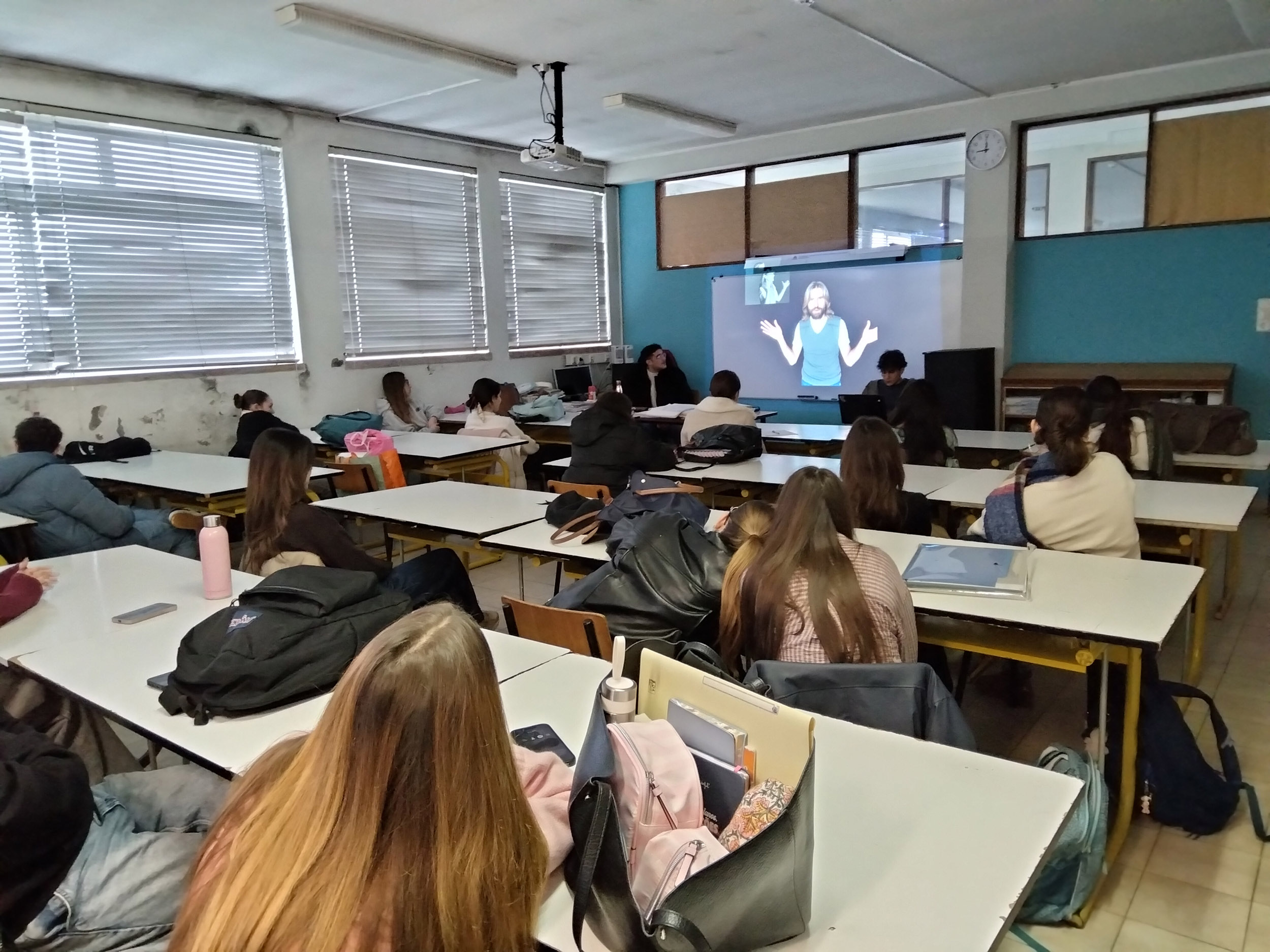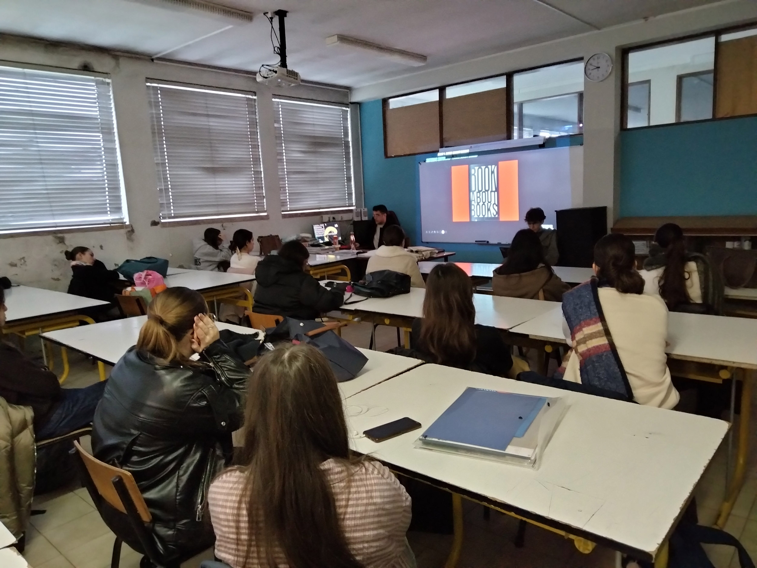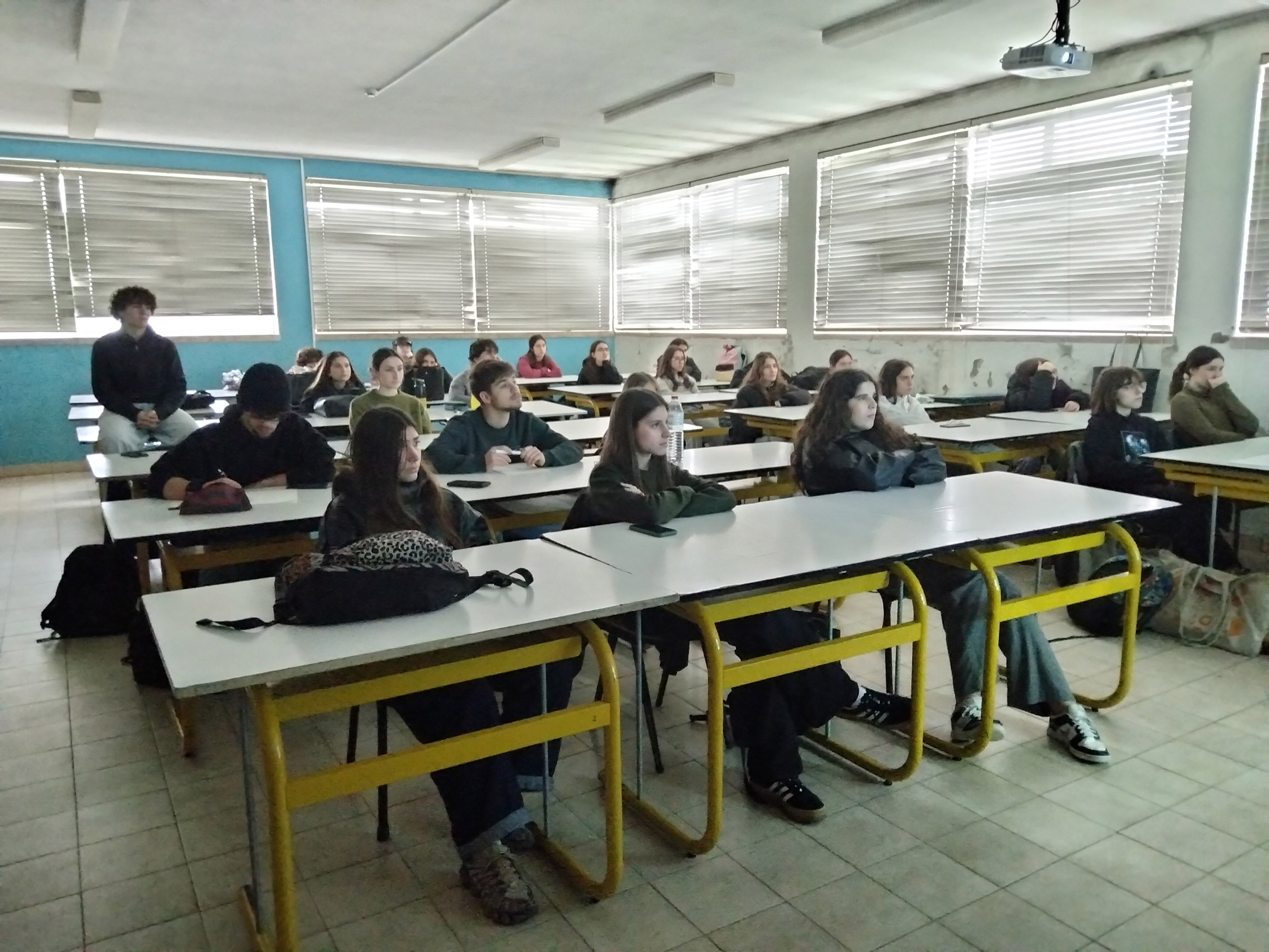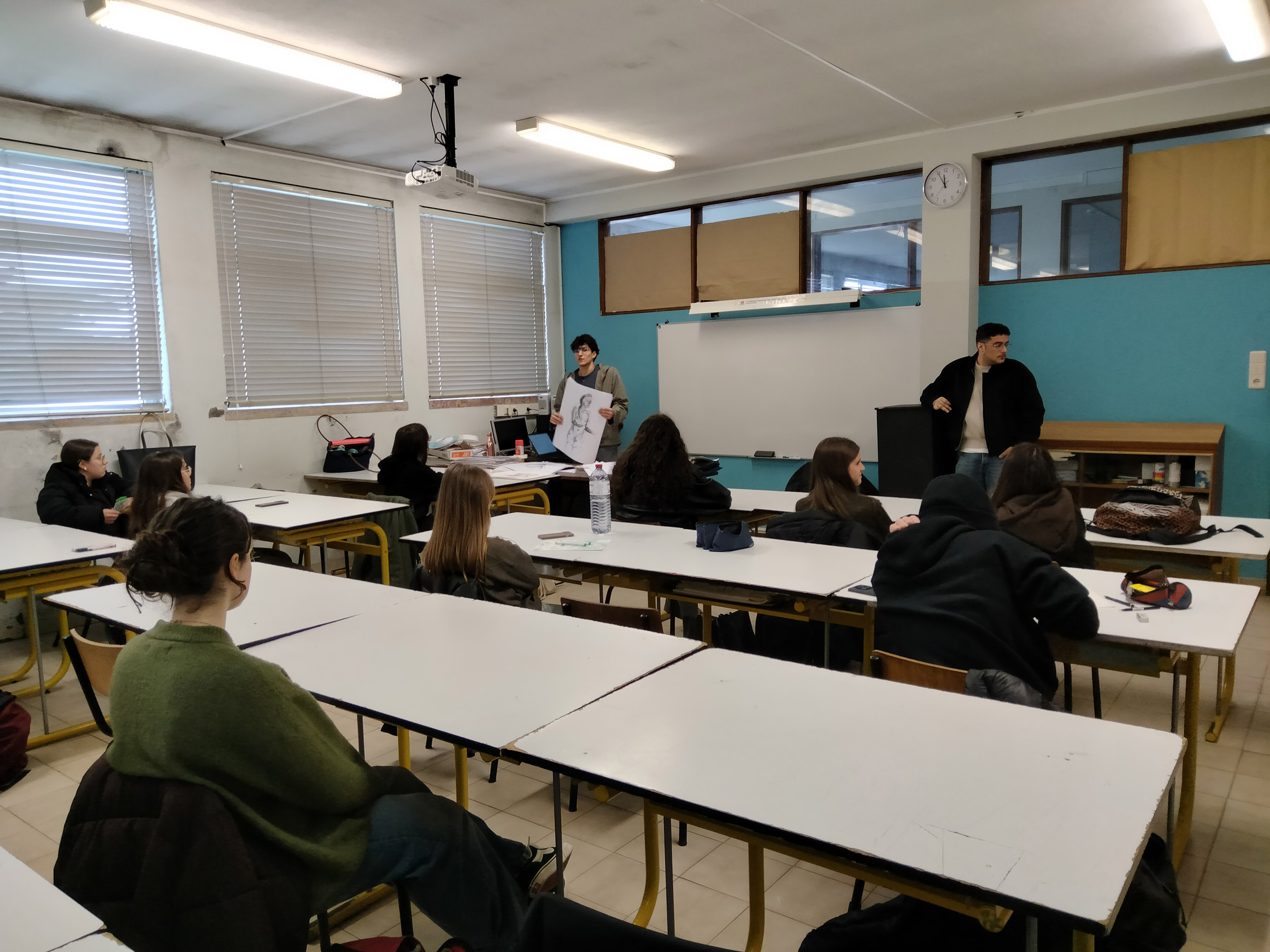 «No passado dia 4 de fevereiro de 2026, os ex-alunos João Silva e Miguel Ferreira, do Curso de Artes e Indústrias Gráficas, realizaram uma visita à sua antiga “casa”. Na turma AG do 12.º ano, na disciplina de Introdução às Teorias do “Design”, João e Miguel partilharam a sua experiência neste curso e seguiram, mais tarde, o ensino superior. João está já a trabalhar no Porto Canal e Miguel encontra-se no primeiro ano do Mestrado em Ensino de Artes Visuais no Instituto de Educação da Universidade de Lisboa.