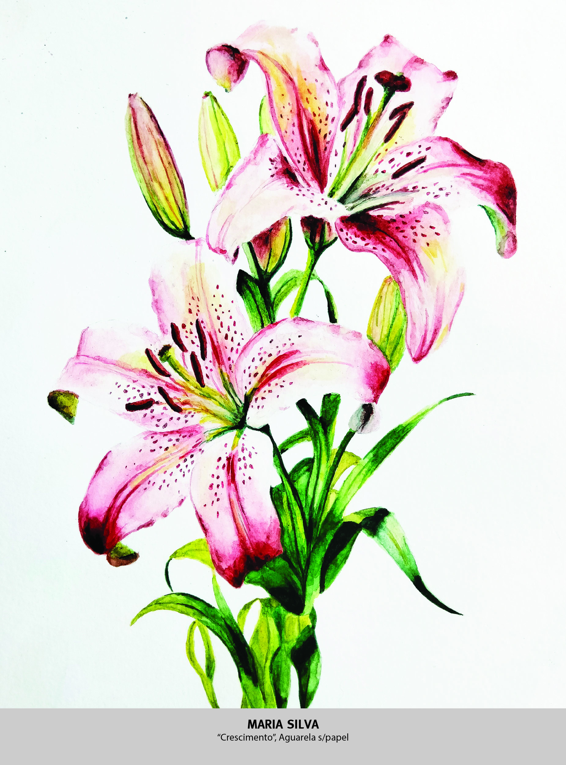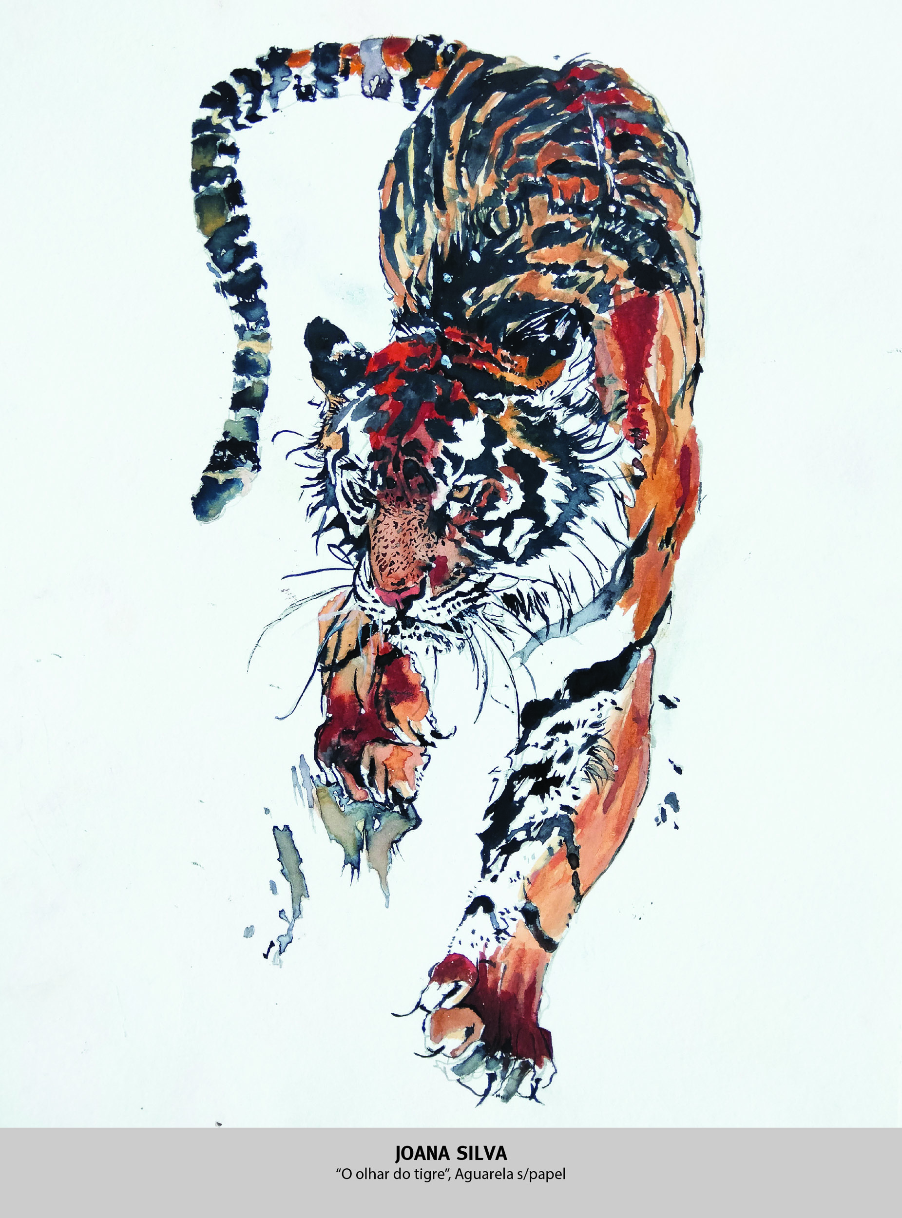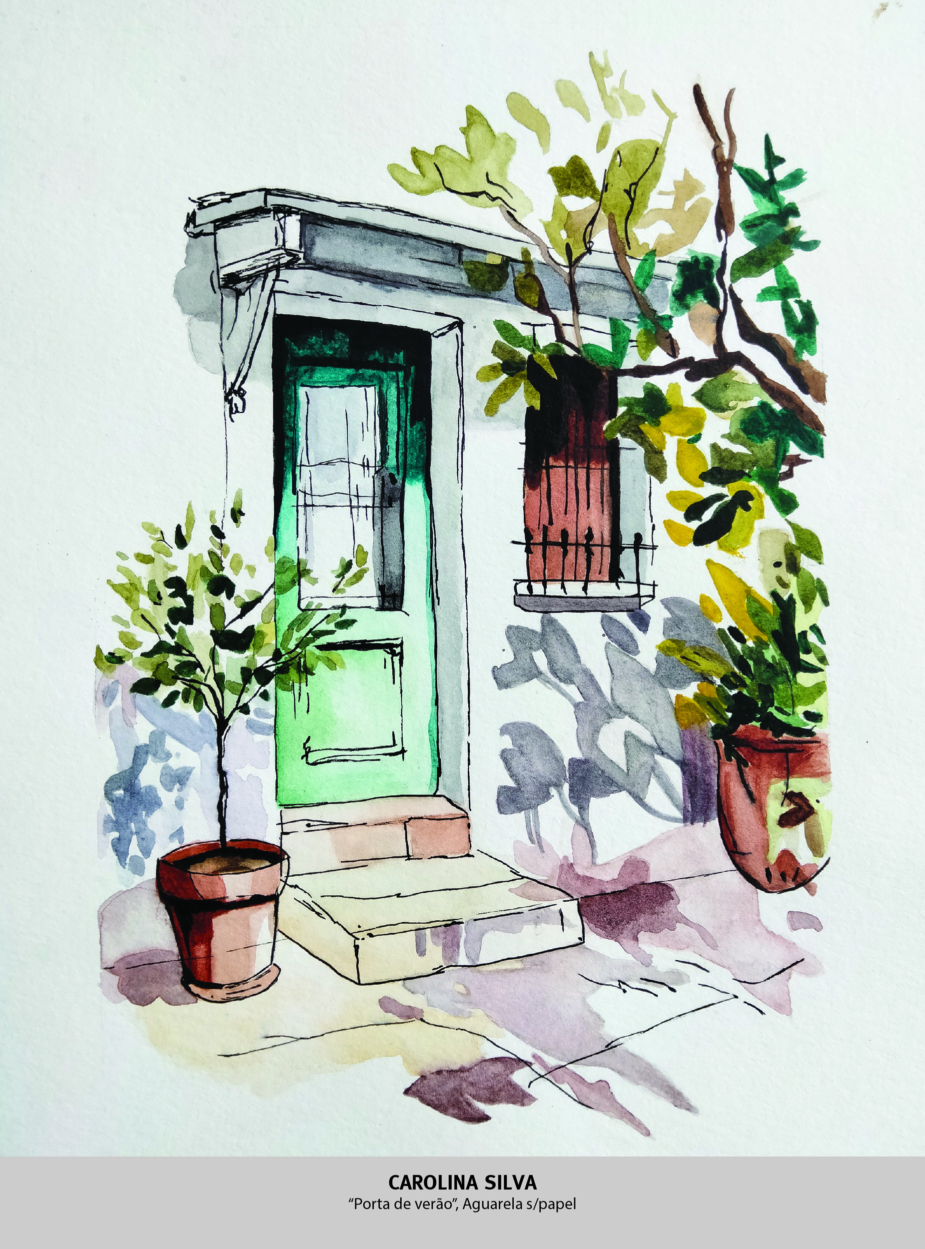 Caracterizada pela sua leveza e transparência, a aguarela permite a sobreposição de camadas e a criação de atmosferas delicadas, valorizando a luminosidade do papel e a subtileza das transições tonais.