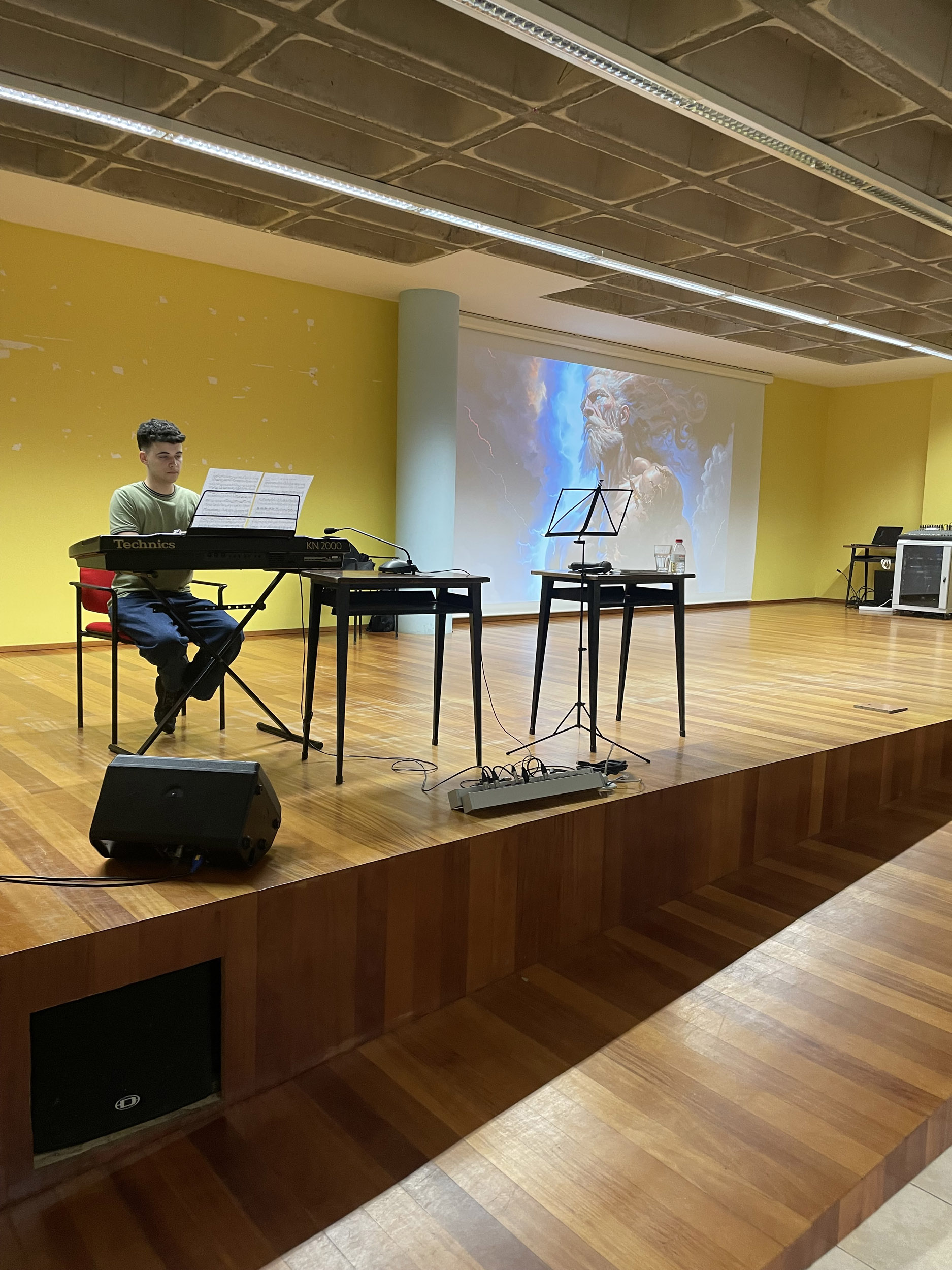 O encerramento da atividade teve lugar às 15h30, com a leitura de dois poemas - “Sísifo”, de Miguel Torga, e “Soneto de Eurídice”, de Sophia de Mello Breyner Andresen, proporcionando um momento de reflexão poética sobre o poder e sentido da arte para a existência humana. A sessão terminou com a interpretação do Prelúdio em Fá menor, de Bach, selando o evento com elegância e elevação.