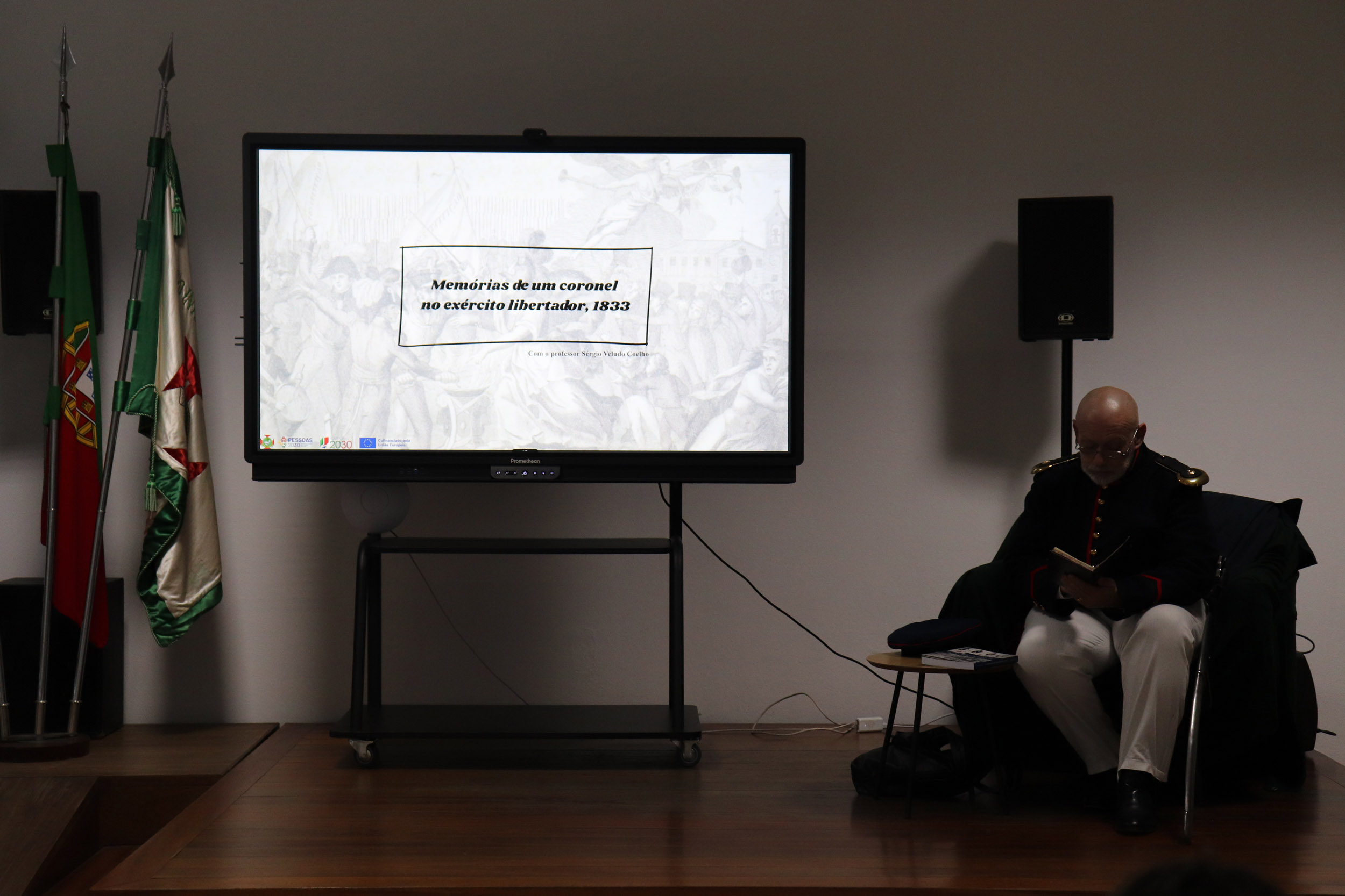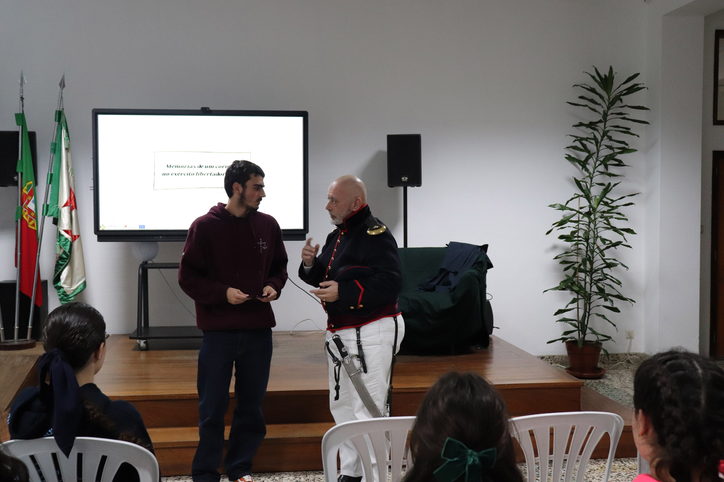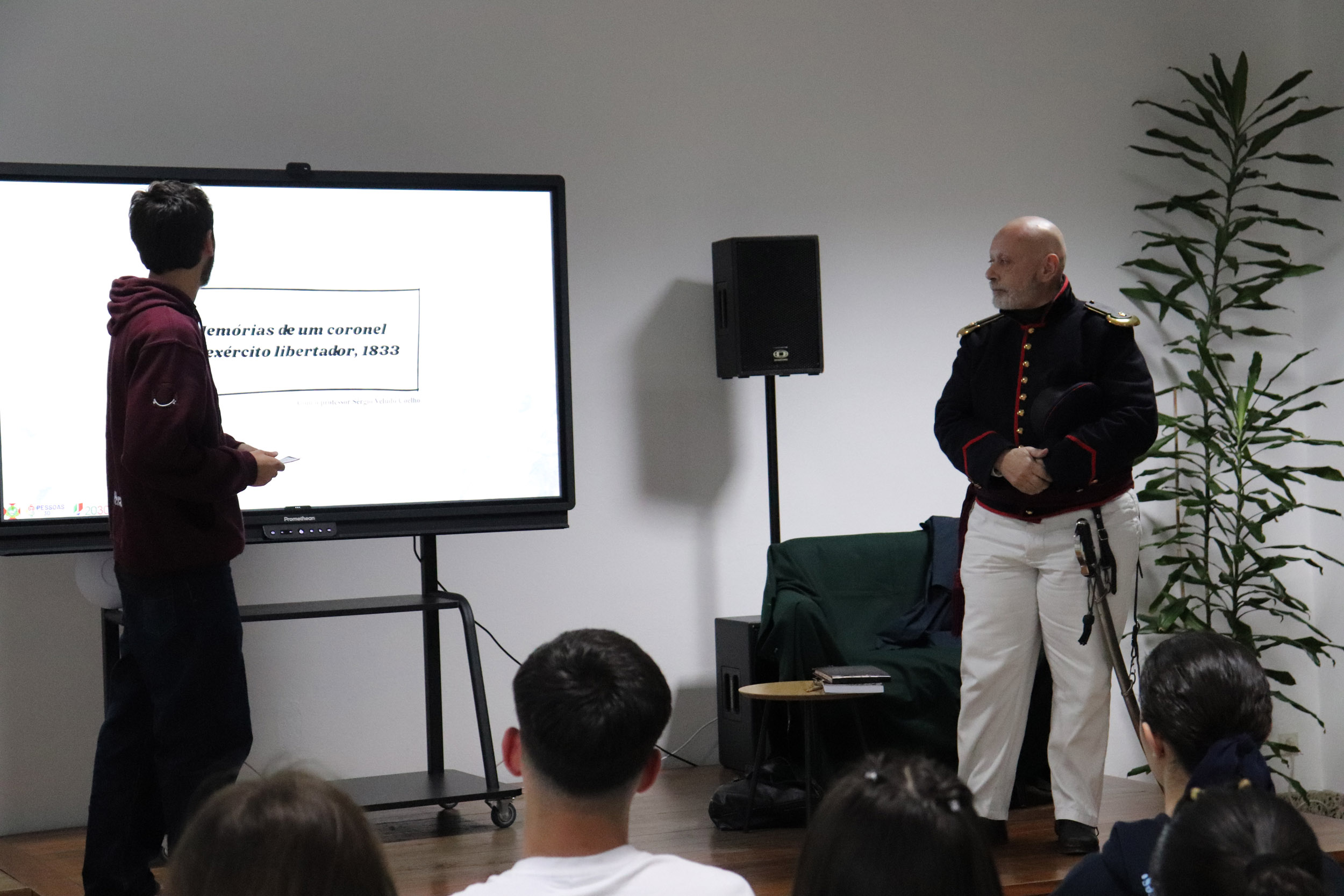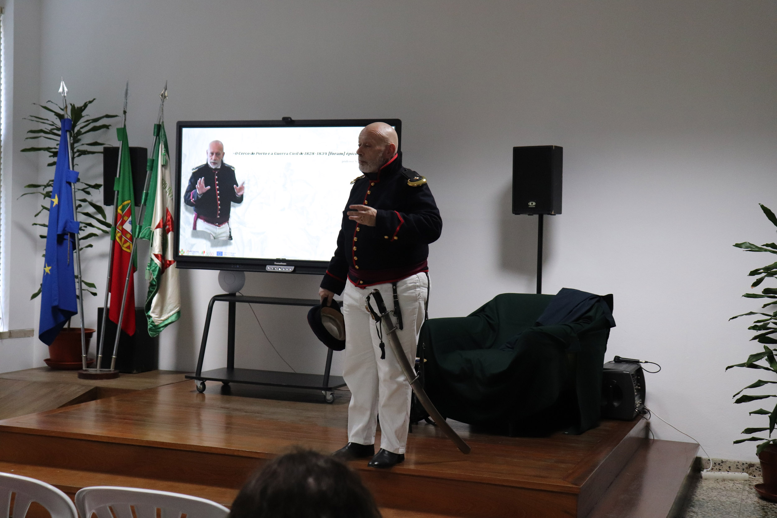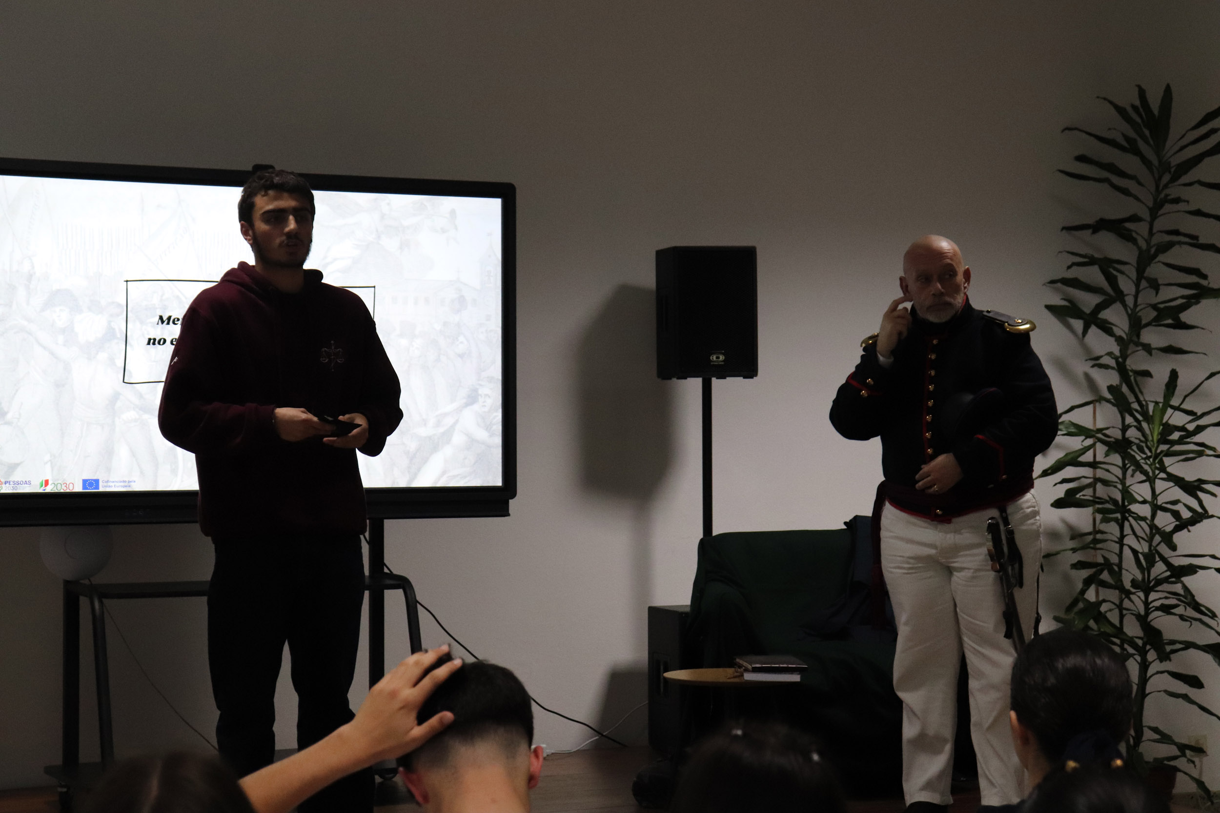 Através da recriação de episódios vividos por um oficial liberal durante a Guerra Civil, os estudantes foram convidados a revisitar o processo de implantação do Liberalismo em Portugal, aprofundando conteúdos programáticos relacionados com o confronto entre Absolutismo e Constitucionalismo, a construção do Estado Liberal e as transformações políticas e sociais do século XIX. A performance, alicerçada numa rigorosa investigação em História Militar, permitiu articular conhecimento histórico, narrativa envolvente e linguagem acessível, potenciando uma aprendizagem significativa e crítica.