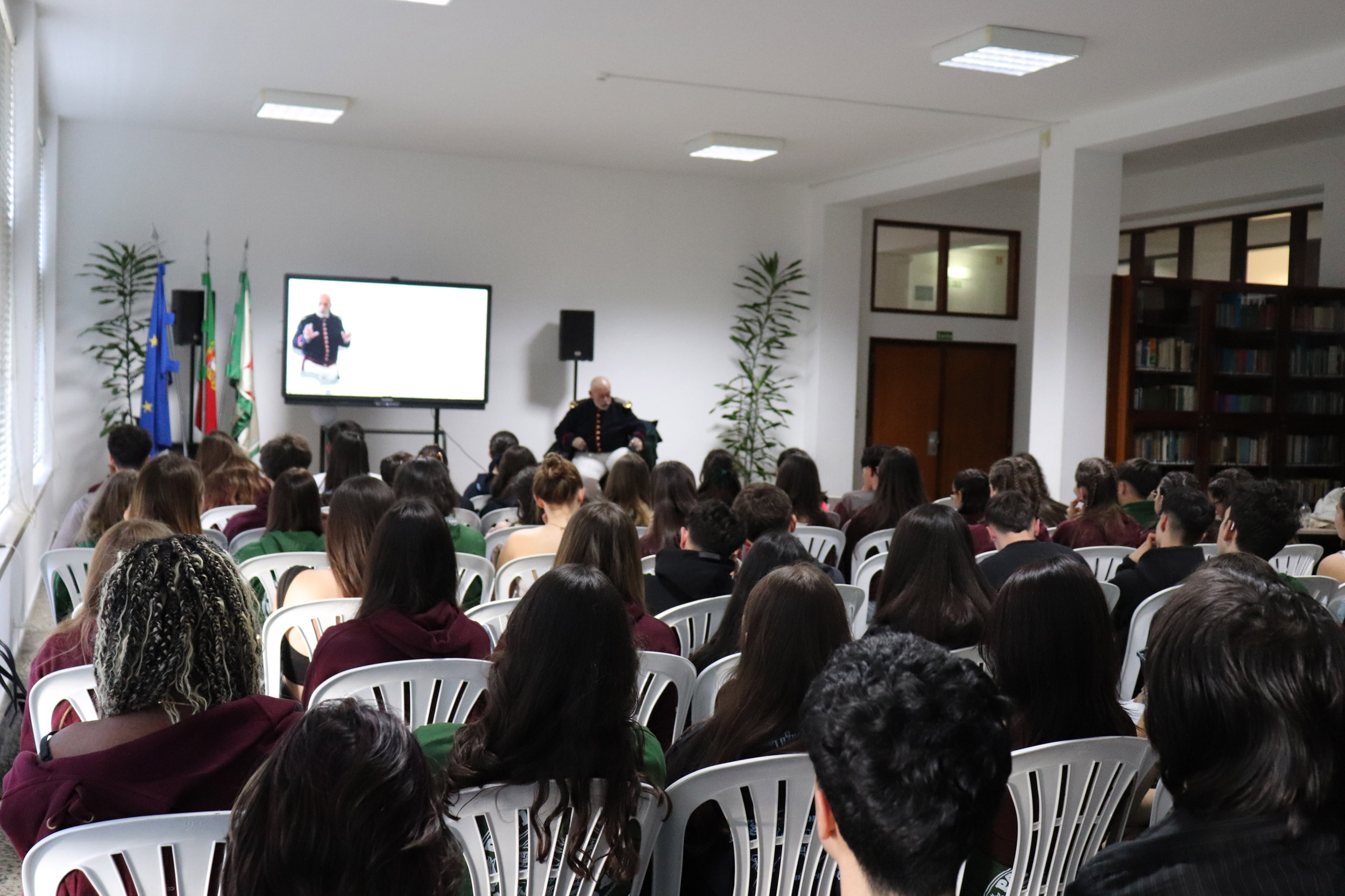 A atividade constituiu ainda uma oportunidade para refletir sobre o património militar enquanto expressão material e simbólica da memória coletiva, bem como sobre o papel da comunicação interpretativa na valorização e difusão do património cultural junto de públicos escolares. Neste contexto, a intervenção do Professor Sérgio Veludo Coelho evidenciou a relevância da mediação cultural e das práticas de recriação histórica como instrumentos pedagógicos para aproximar os alunos das fontes, dos espaços e das problemáticas do passado. Integrada no plano anual de atividades do Grupo Disciplinar de Ciências Sociais (GDCS), esta iniciativa reafirma o compromisso do CIC com uma educação para a cidadania informada, em que o estudo da História se assume como chave para compreender os desafios do presente e projetar o futuro.