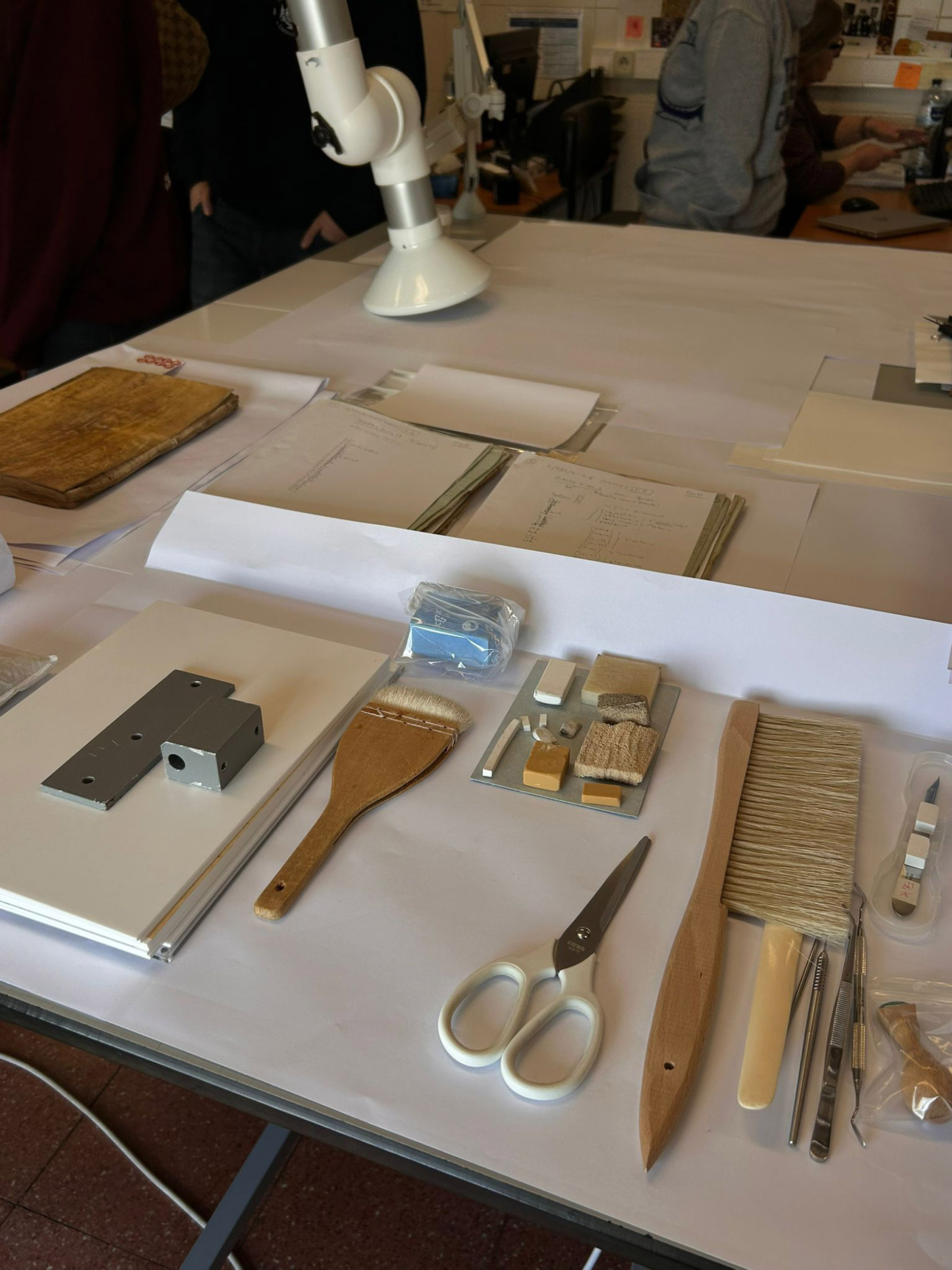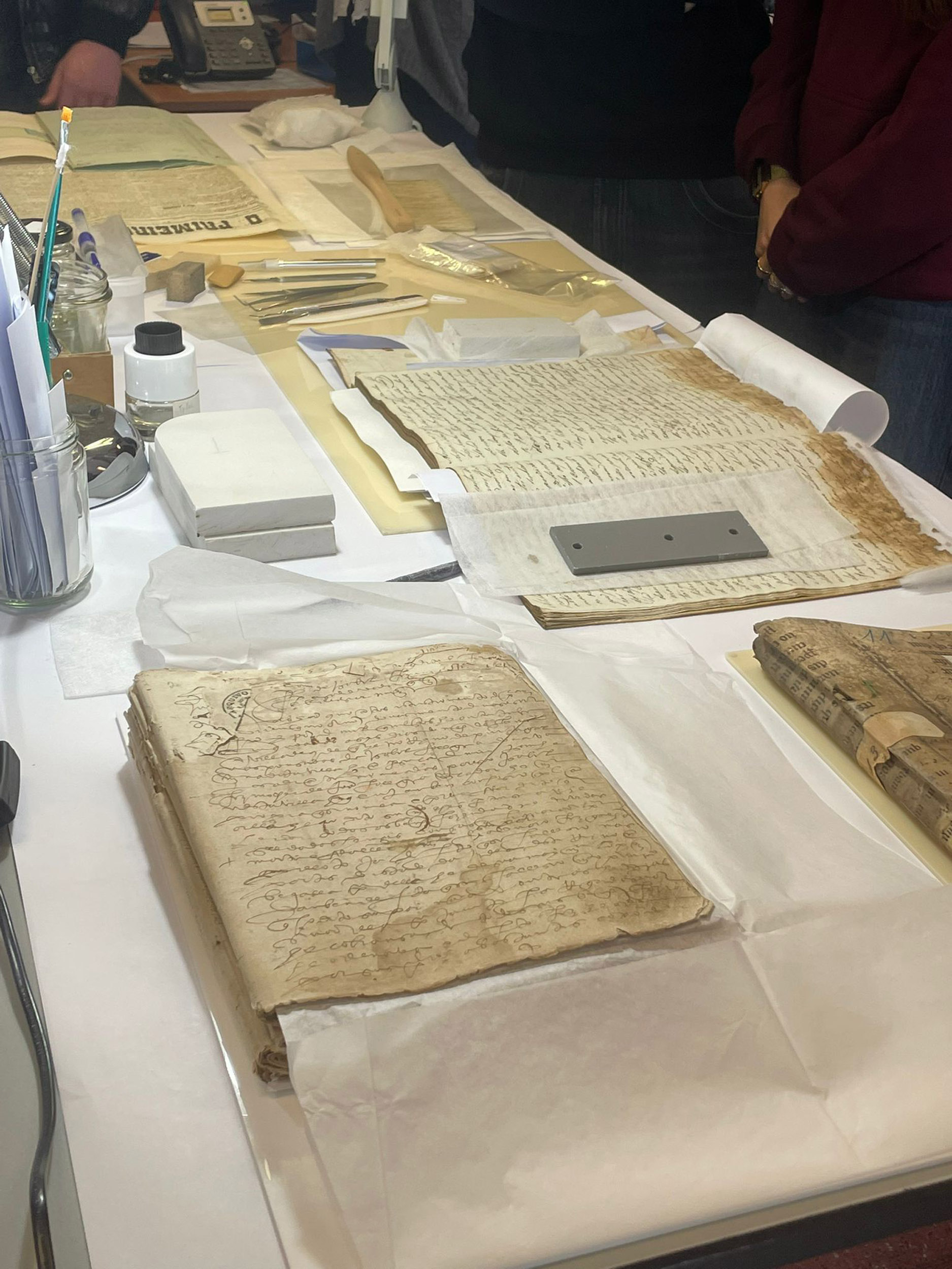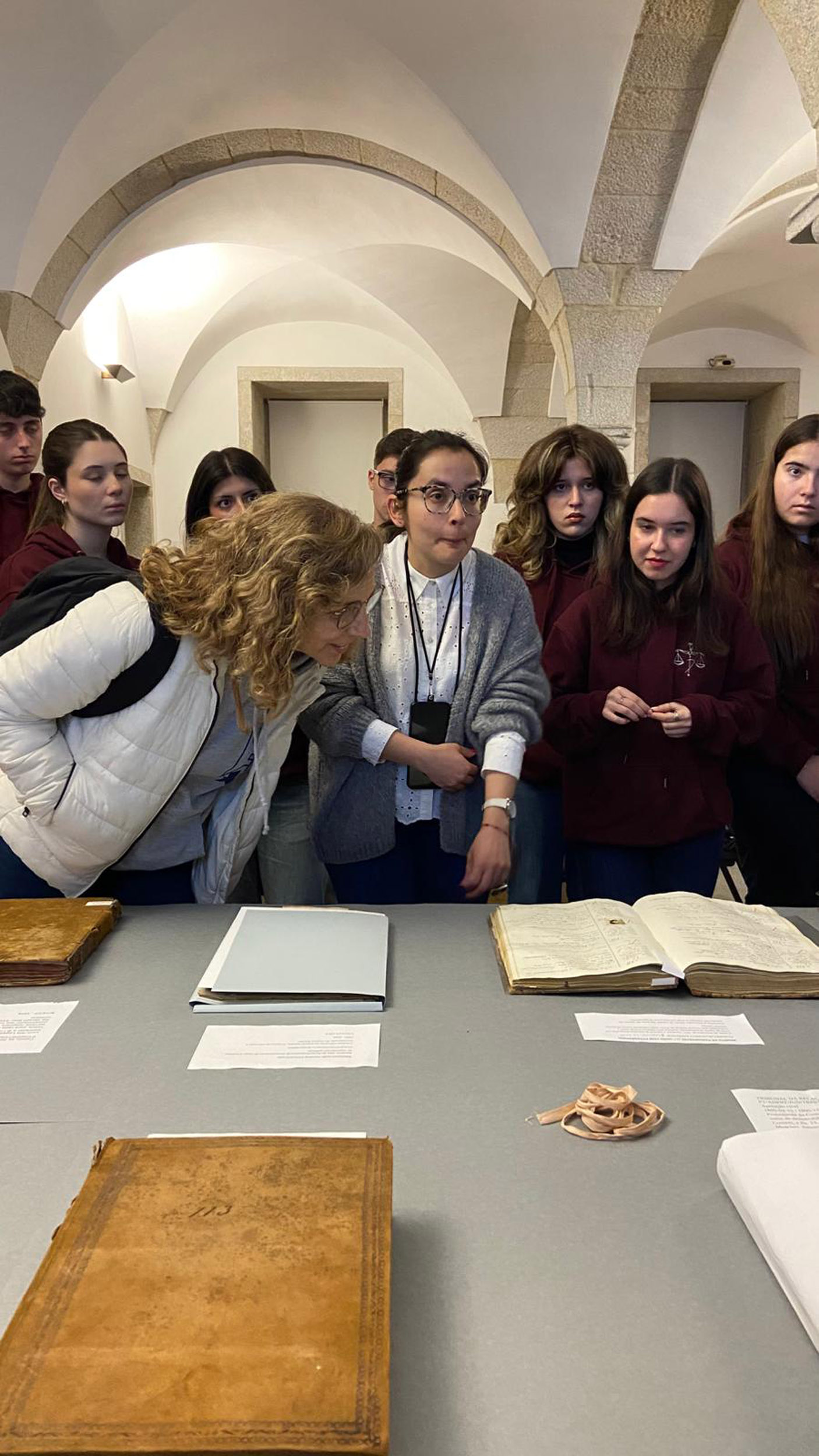 De manhã, a aula destinava-se a consolidar conhecimentos da componente documental do curso tendo ocorrido no espaço do Arquivo Distrital do Porto, instalado no edifício histórico recuperado do Mosteiro de São Bento da Vitória, onde foi possível conhecer as áreas técnicas, os depósitos e as salas de leitura que o compõem. Visitar o Arquivo Distrital do Porto (ADP) é importante porque permite compreender, de forma direta e documentada, a história, a identidade e a memória coletiva do distrito do Porto. 12 km de documentação de conservação permanente, alocada em 10 depósitos, reúnem registos civis, paroquiais, judiciais, administrativos e privados que testemunham séculos de história da região e que são fundamentais para compreender a evolução social, cultural e política do território. Guiados pela Dr.ª Ana Clarinda, ex-sempre aluna do CIC e pela Dr.ª Ana, os alunos observaram processos (estudados em aula) de conservação, restauro e digitalização, essenciais para garantir que estes materiais sobrevivam para as gerações futuras, desmistificando a ideia de que os arquivos são depósitos, apenas de papéis, velhos. Com efeito, foi possível perceber que existem vários suportes documentais em 990 fundos documentais, e que o acesso online é uma preocupação desta instituição para melhor servir estudantes e investigadores, genealogistas, profissionais de história, património e direito e cidadãos que procuram certidões ou documentos antigos através de serviço presencial ou remoto.