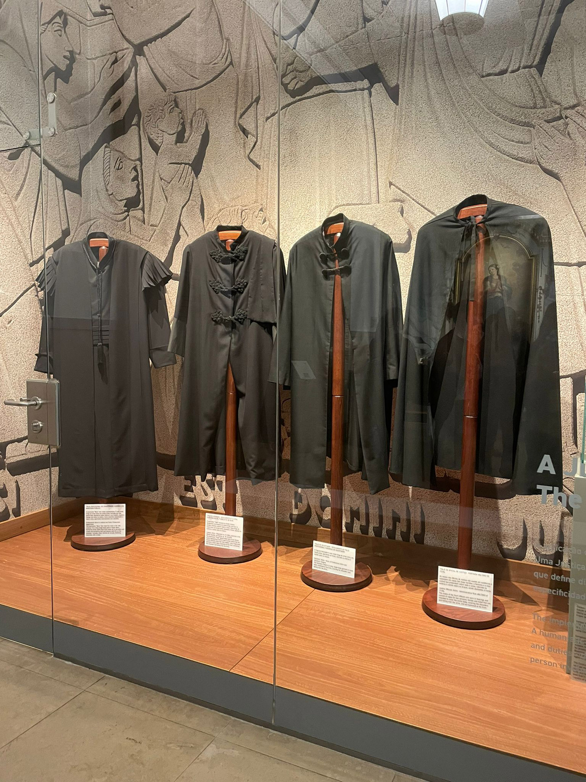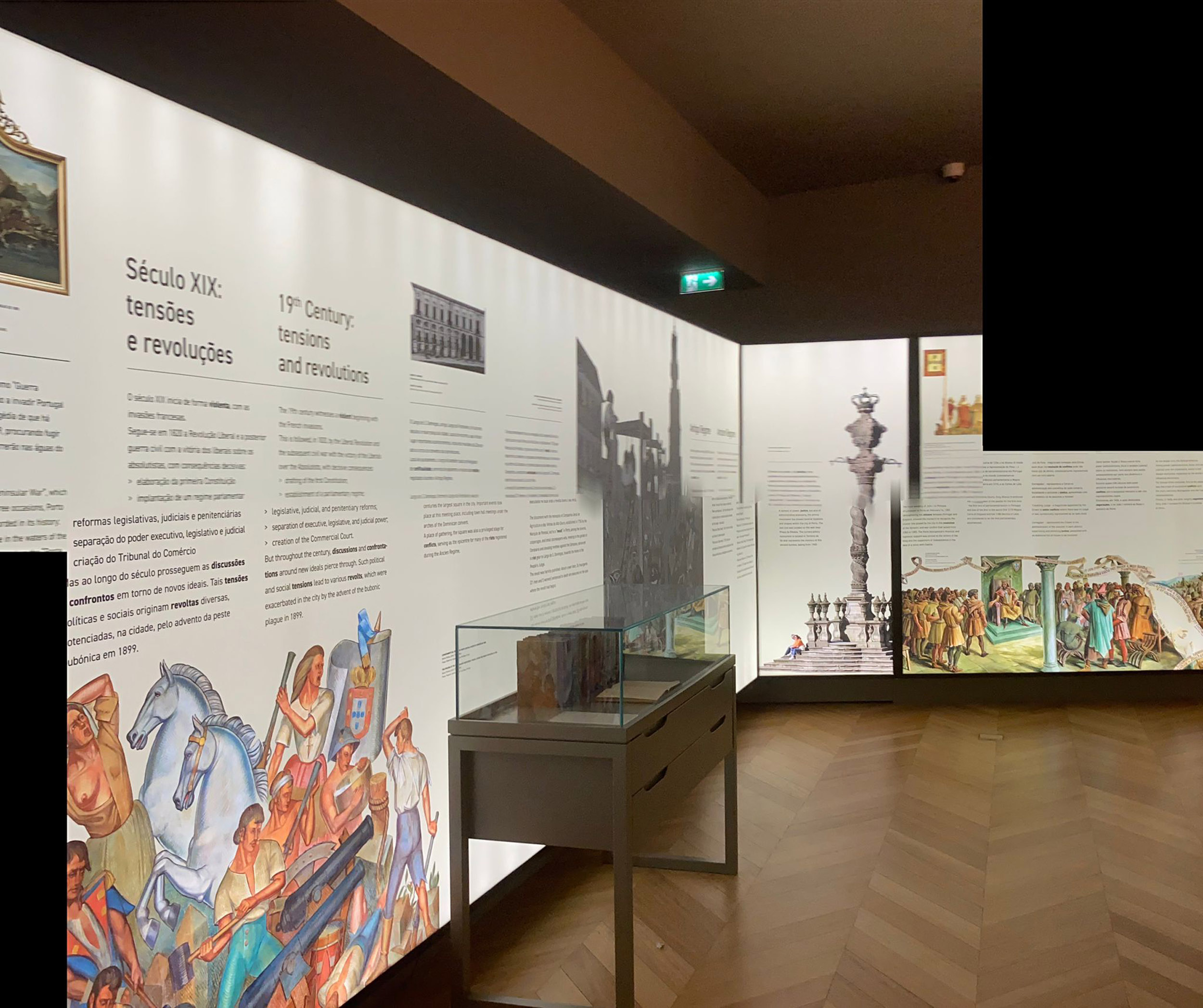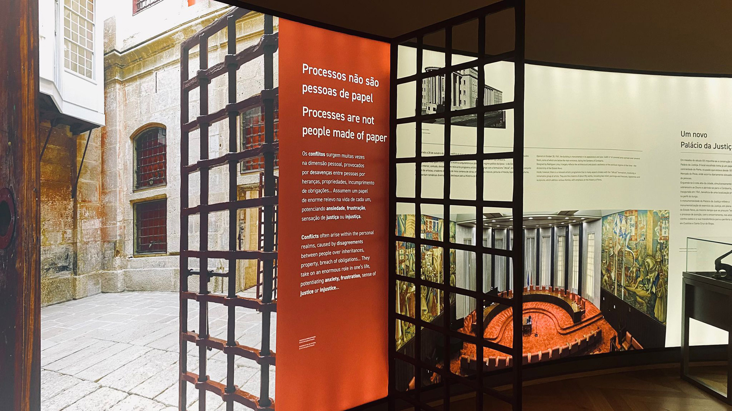 Da parte da tarde, e na altura em que se comemoram os 80 anos sobre o final da 2.ª Guerra Mundial, foi importante levar os alunos a um espaço de memória coletiva que conta a história da cidade, mas também da justiça no Porto. Aprofundaram-se conceitos e teorias explanadas na disciplina de História A e na componente jurídica do curso. A visita ao Museu do Conflito, situado no palácio da Justiça do Porto, cujos espaços e obras de arte foram também objeto de observação guiada e comentada pela Dr.ª Vera Medeiros, teve três dimensões principais: educação cívica, memória histórica e compreensão do sistema judicial. Apostando numa linguagem visualmente impactante, interativa e bilingue, o museu foi criado justamente para mostrar que os tribunais existem porque existem conflitos — inevitáveis na vida humana. Ele explica como surgem, como são geridos e quais mecanismos a sociedade desenvolveu para os resolver. Apresenta o lado ético e humanista da Justiça desde logo com a mensagem de que “Os processos não são pessoas de papel.” A exposição inclui processos célebres, como o de Camilo Castelo Branco e Ana Plácido, o do Zé do Telhado, o crime da Rua das Flores e o caso de Soalhães, apresentados sob uma perspetiva humanista que aproxima os alunos das histórias reais por trás dos julgamentos, completados com ferramentas digitais e monitores interativos, incluindo conteúdos de criminologia forense e curiosidades sobre o sistema judicial contemporâneo.