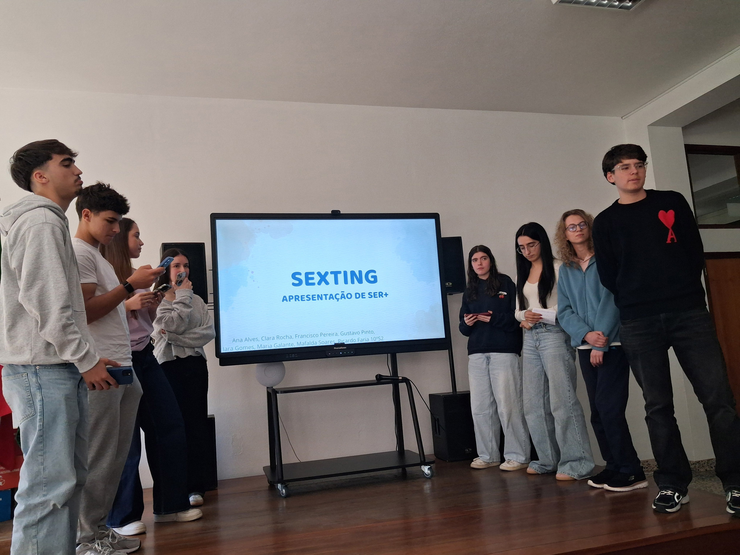 A reflexão promovida visou despertar em cada jovem a consciência de que as suas ações no mundo digital têm repercussões reais, incentivando o desenvolvimento de um espírito crítico e interventivo. Mais do que meros espectadores da realidade tecnológica, os alunos foram desafiados a ser agentes de mudança, capazes de intervir positivamente na sociedade e de promover uma cultura de respeito e verdade. A partilha própria de experiências e perspetivas durante as sessões reforçou a ideia de que a construção de um ambiente digital ético depende do contributo consciente de cada um em prol do bem comum. Através da dinâmica desenvolvida, os alunos do 10.º ano assumiram o Projeto Ser+ como um espaço de crescimento humano, em que a Ética serve de guia para navegar nos desafios da atualidade, transformando o conhecimento em ação responsável e consciente.