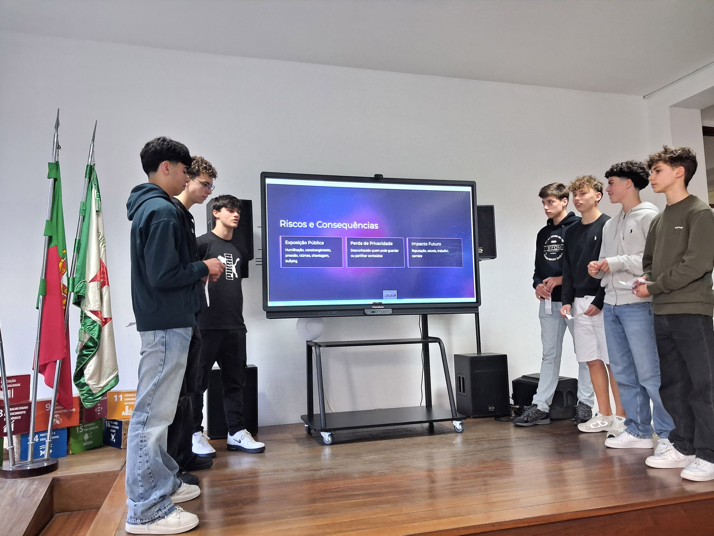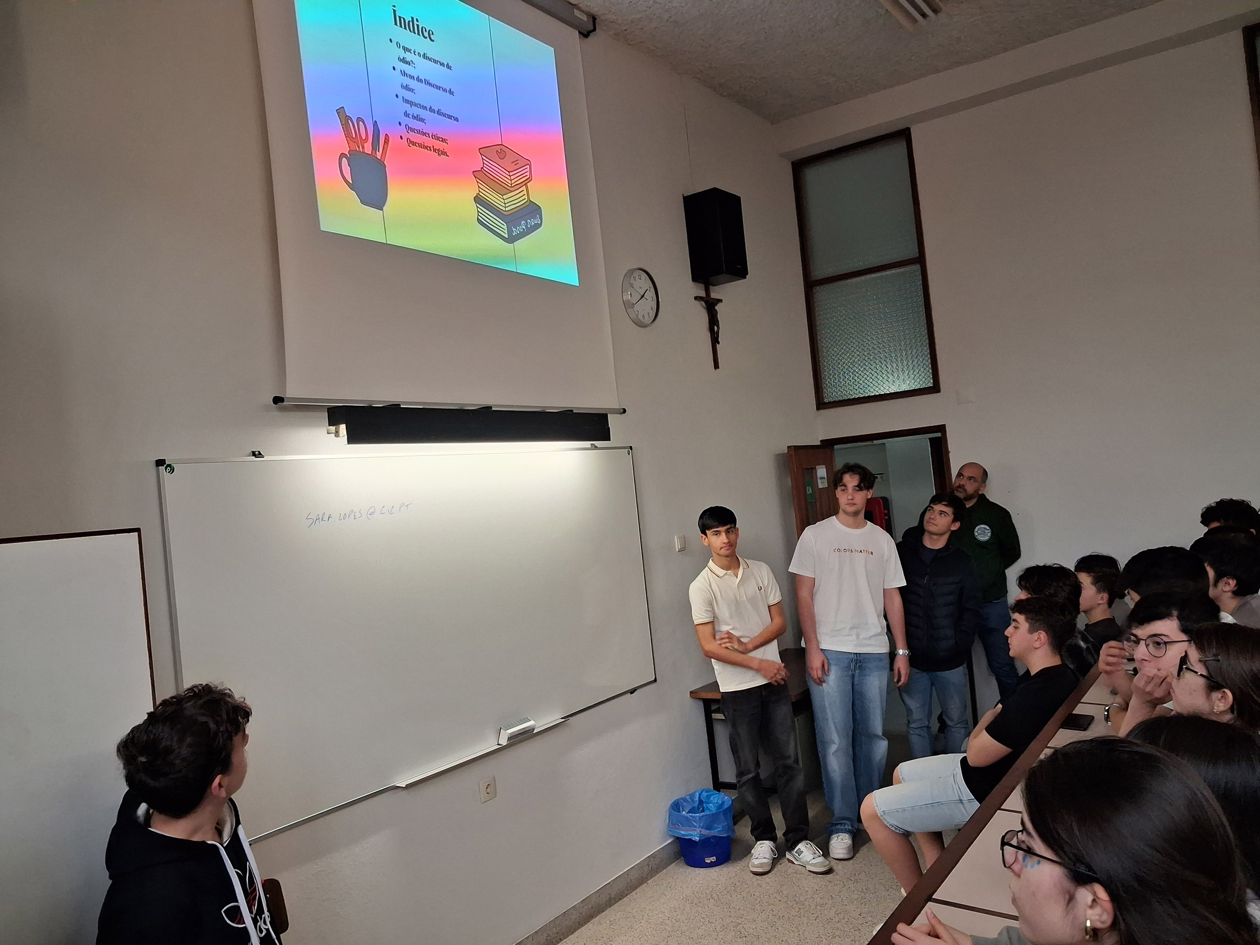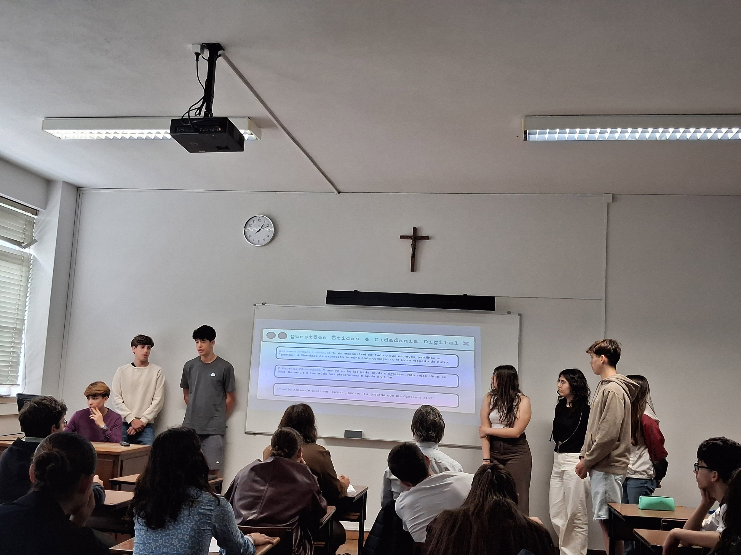 Num ano letivo em que o CIC assume a Ética como o seu grande tema integrador, estas sessões foram muito mais do que um momento de partilha académica, constituindo-se como um fórum vital de debate sobre a responsabilidade humana no mundo digital. Ao explorarem temas como o “Cyberbullying”, as “Fakenews”, o “Sexting” e o Discurso de Ódio, os alunos demonstraram um compromisso notável, transcendendo a mera exposição de factos para darem lugar a uma partilha autêntica de reflexões sobre o impacto destas realidades na sua geração. Através da partilha própria e do debate em sessões públicas, os alunos foram instigados a desenvolver a empatia e a capacidade crítica, ferramentas essenciais para combater a desinformação e a violência no espaço virtual.
