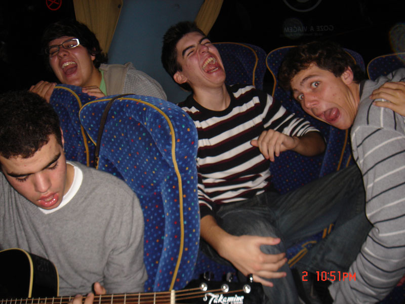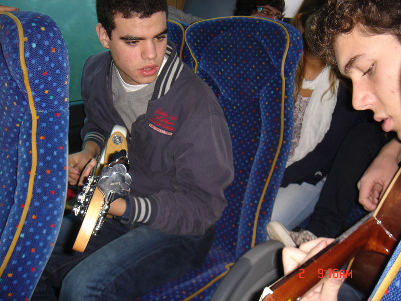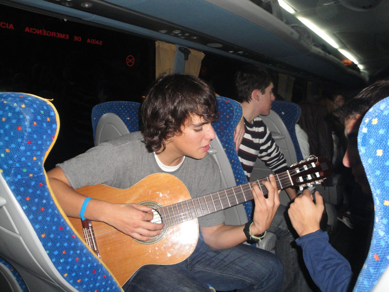 A viagem correu de forma animada, com os sons das guitarras e das vozes dos