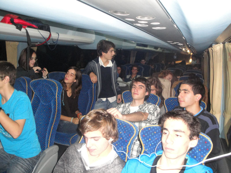 alunos a ecoarem pelo autocarro. No entanto, foi feita uma paragem numa estação