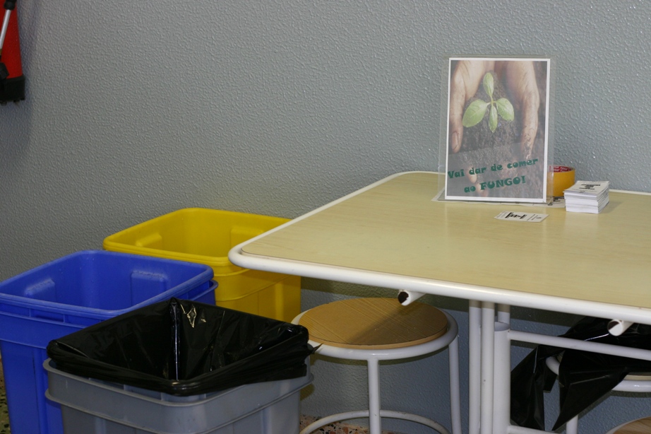 Depois de delineado todo o projecto passou-se à acção… a preparação do local e a construção do compostor, reutilizando materiais guardados nas oficinas do CIC, ainda fez correr algumas gotas de suor. Mas o esforço foi compensado com o resultado final. Para encher o compostor contamos com a colaboração de toda a comunidade do Ensino Secundário, que, numa acção de sensibilização levada a cabo na cantina, foi convidada a separar alguns dos resíduos gerados para que estes fossem depositados no compostor, e não enviados para aterro.