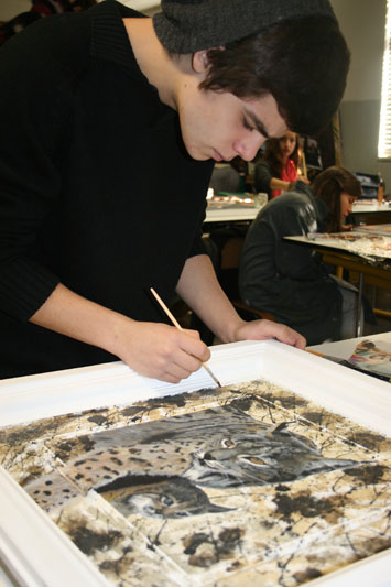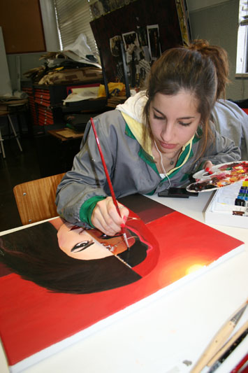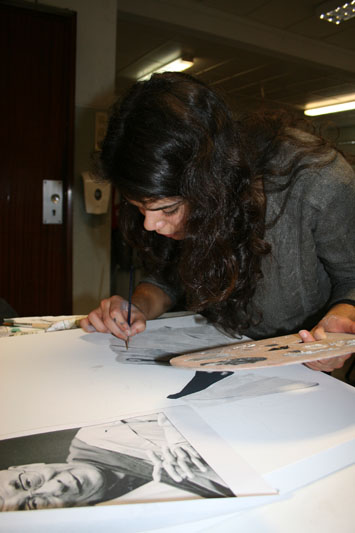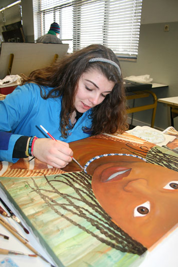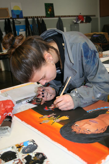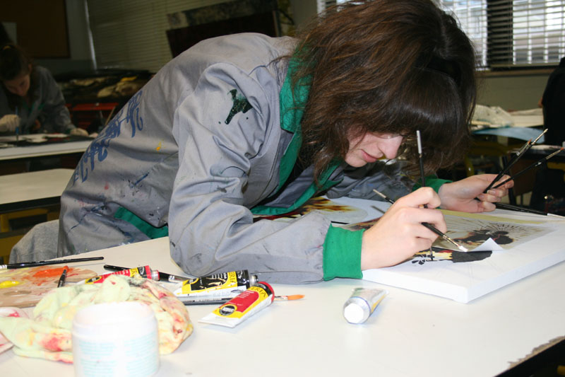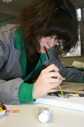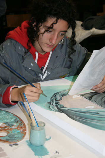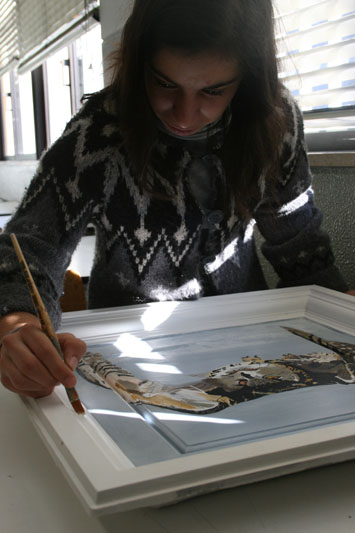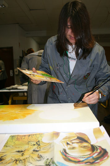 escolhidos pelos alunos, recorrendo à técnica de acrílico sobre suporte de gesso