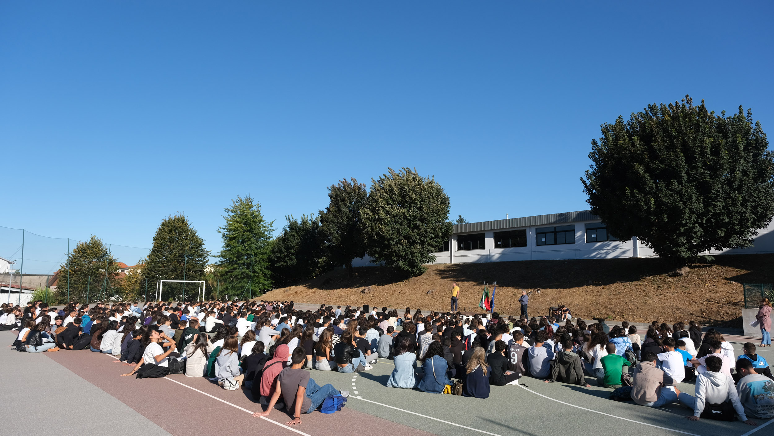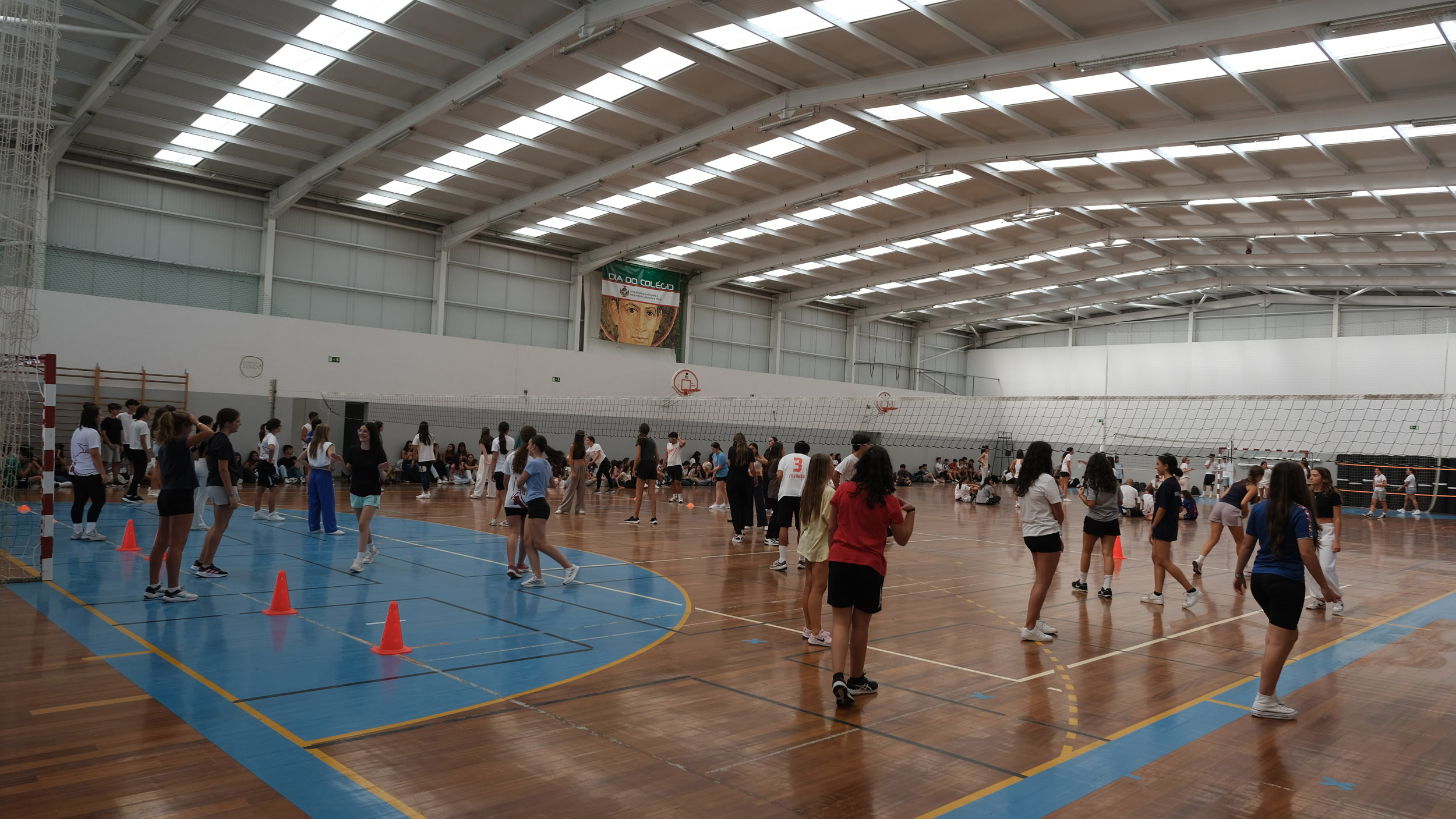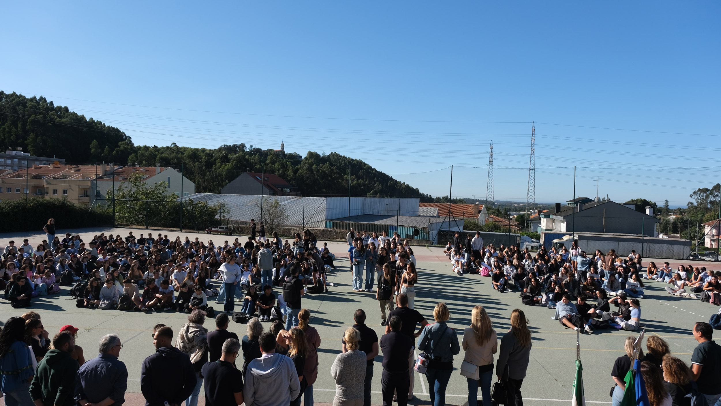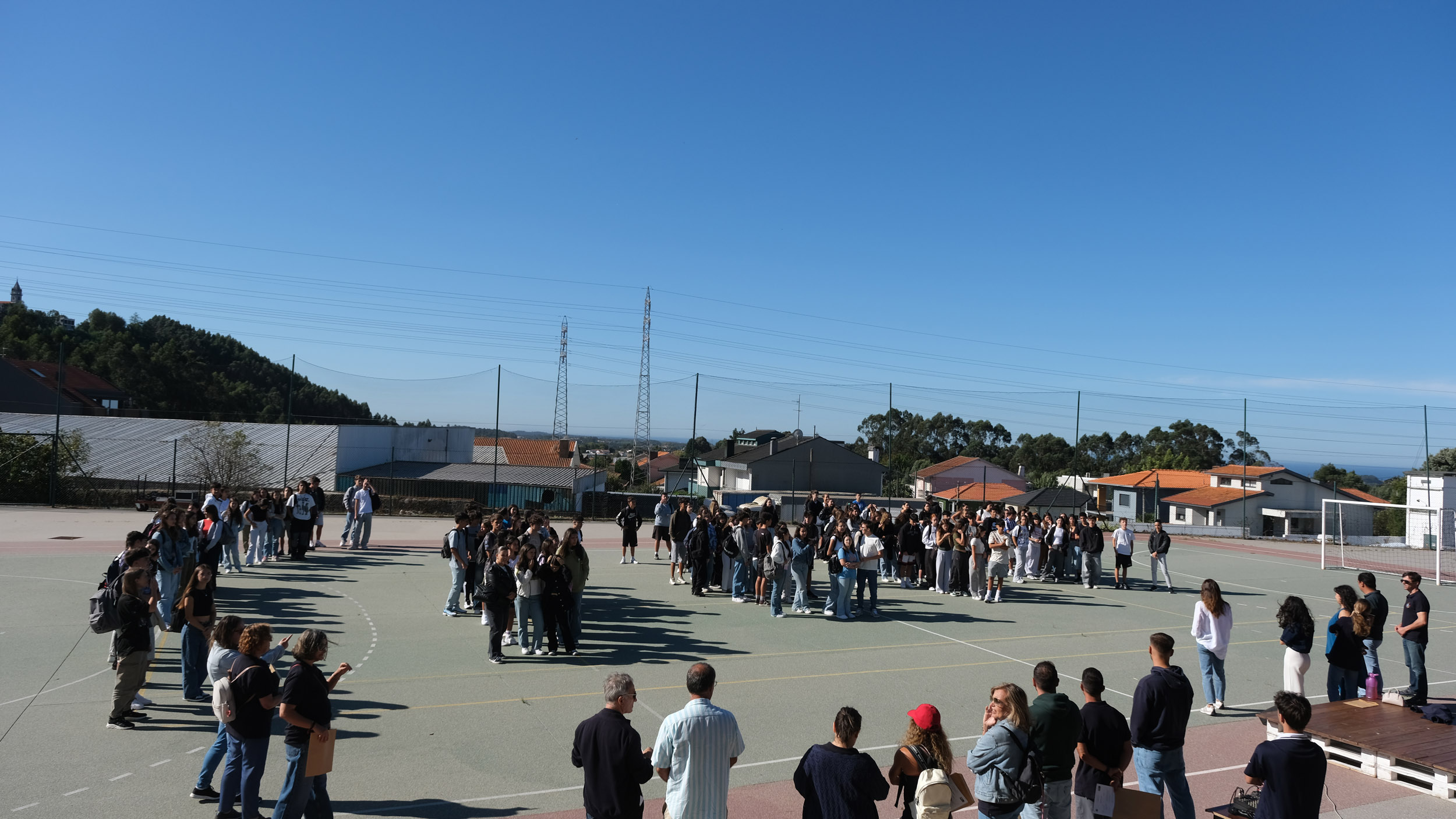 Após a receção das 14 turmas no átrio do Colégio, o(a)s aluno(a)s foram encaminhado(a)s para o espaço desportivo exterior, momento para uma palavra de boas-vindas por parte do Conselho Diretivo, bem assim como para a apresentação dos elementos presentes, designadamente Coordenadores de Curso, Vogais da Direção Pedagógica, Tutores, elementos do Gabinete de Psicologia, do Conselho Pastoral, Docentes, Prefeitos e Serviços Administrativos.