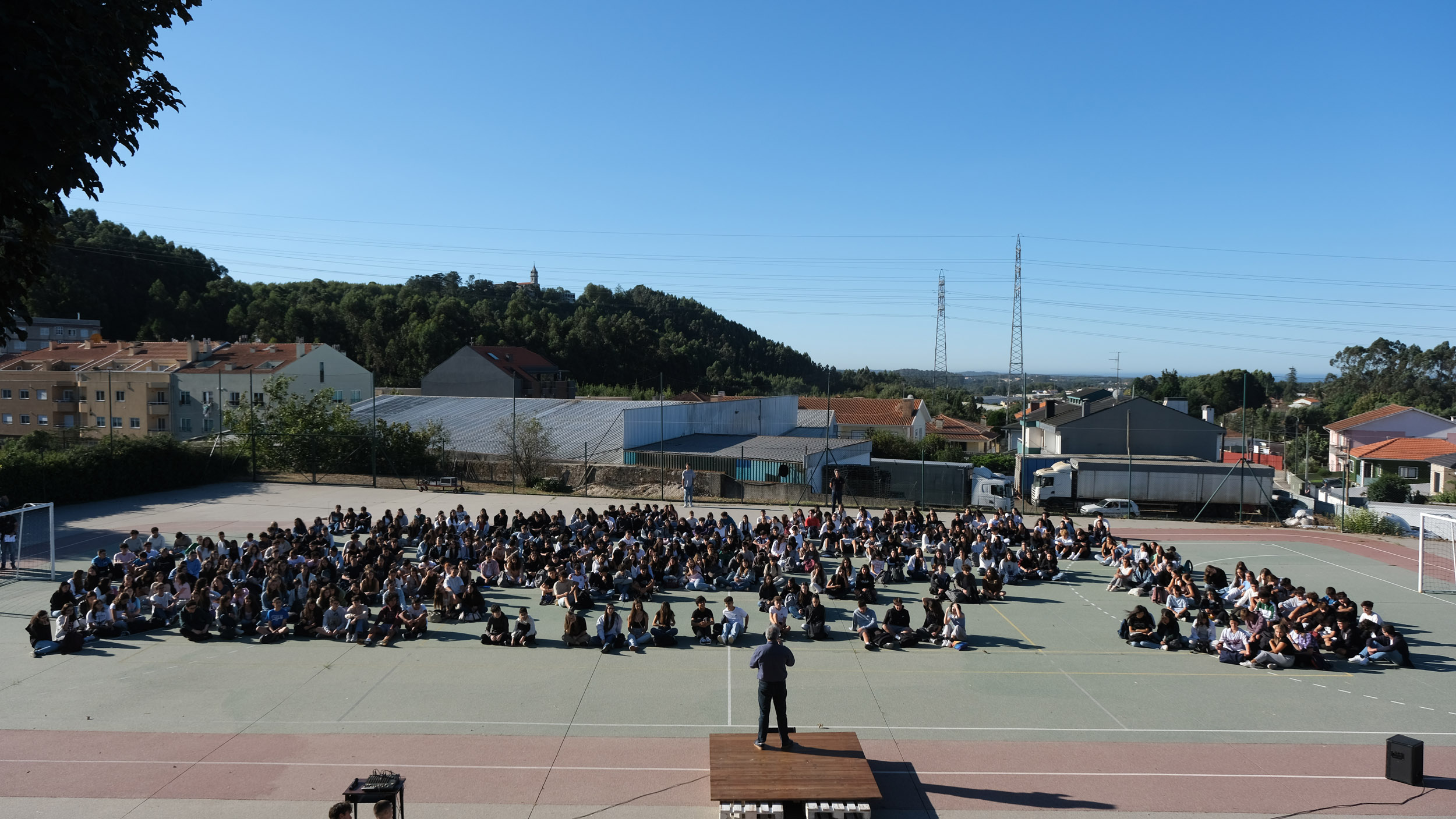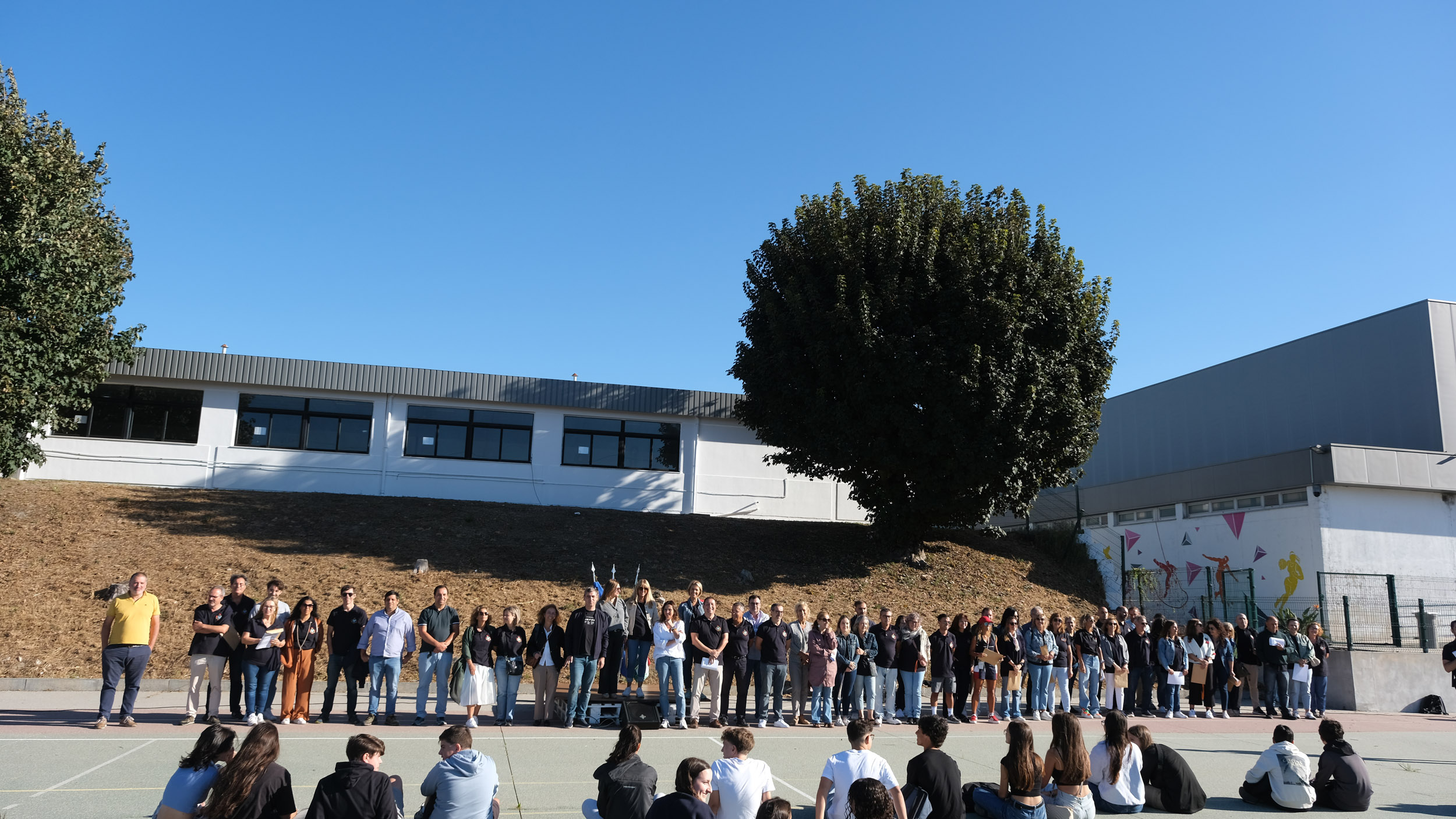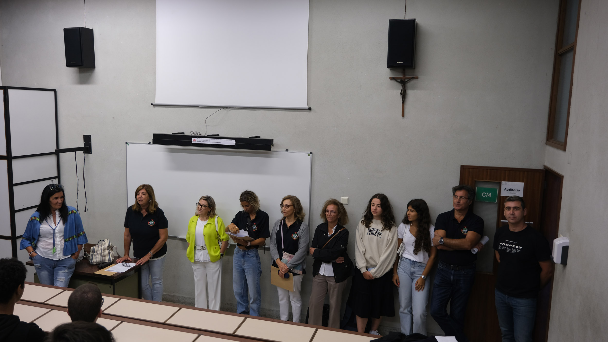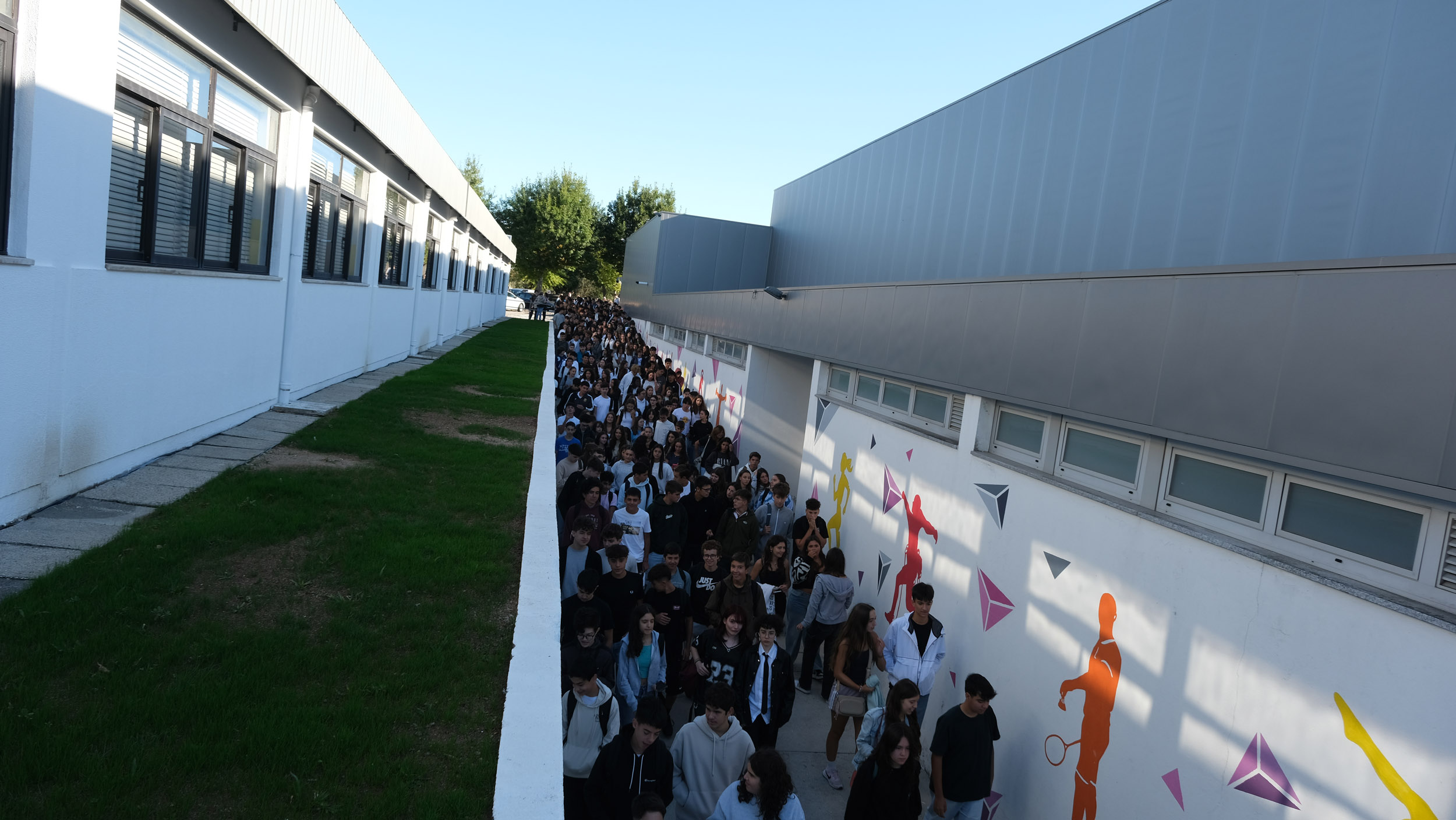 Após a receção das 14 turmas no átrio do Colégio, o(a)s aluno(a)s foram encaminhado(a)s para o espaço desportivo exterior, momento para uma palavra de boas-vindas por parte do Conselho Diretivo, bem assim como para a apresentação dos elementos presentes, designadamente Coordenadores de Curso, Vogais da Direção Pedagógica, Tutores, elementos do Gabinete de Psicologia, do Conselho Pastoral, Docentes, Prefeitos e Serviços Administrativos.