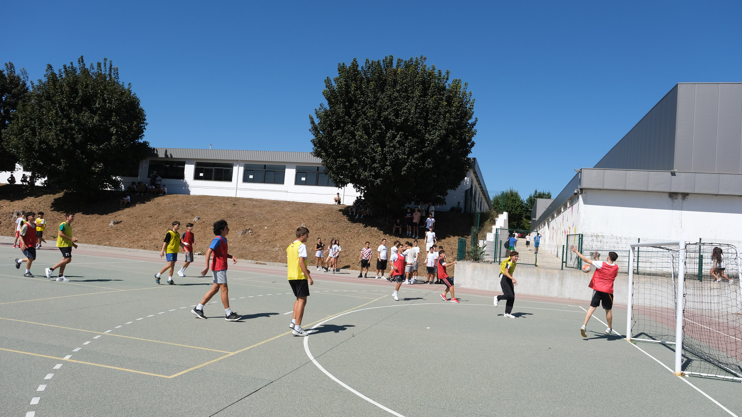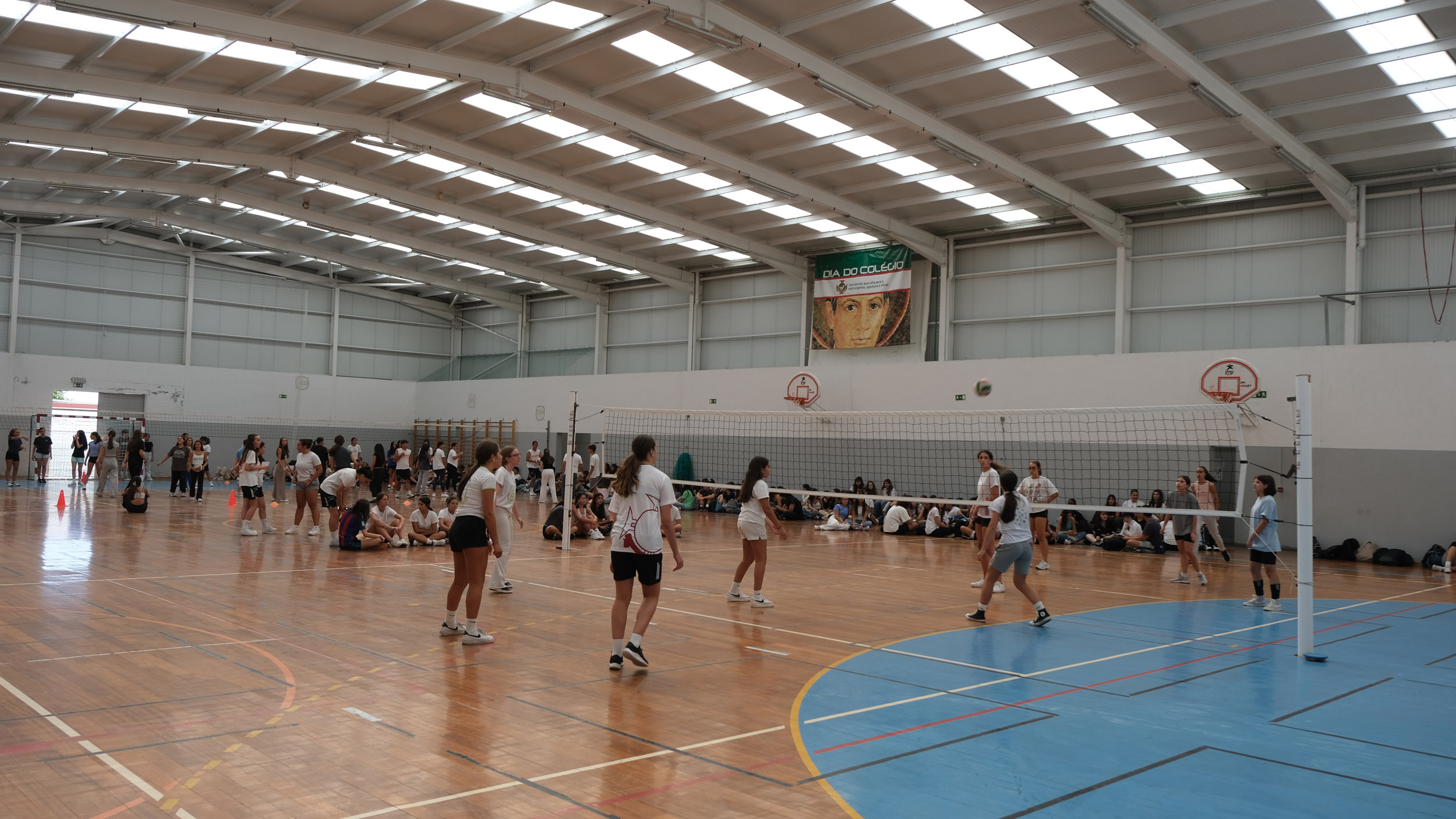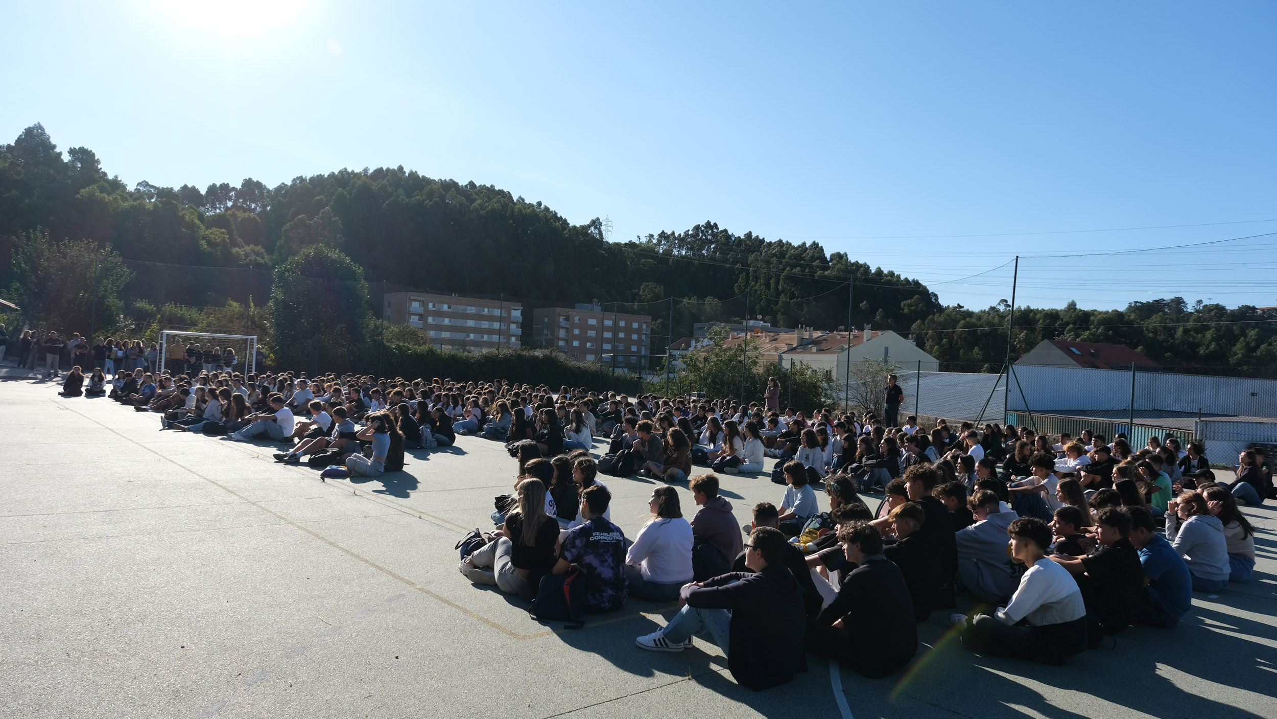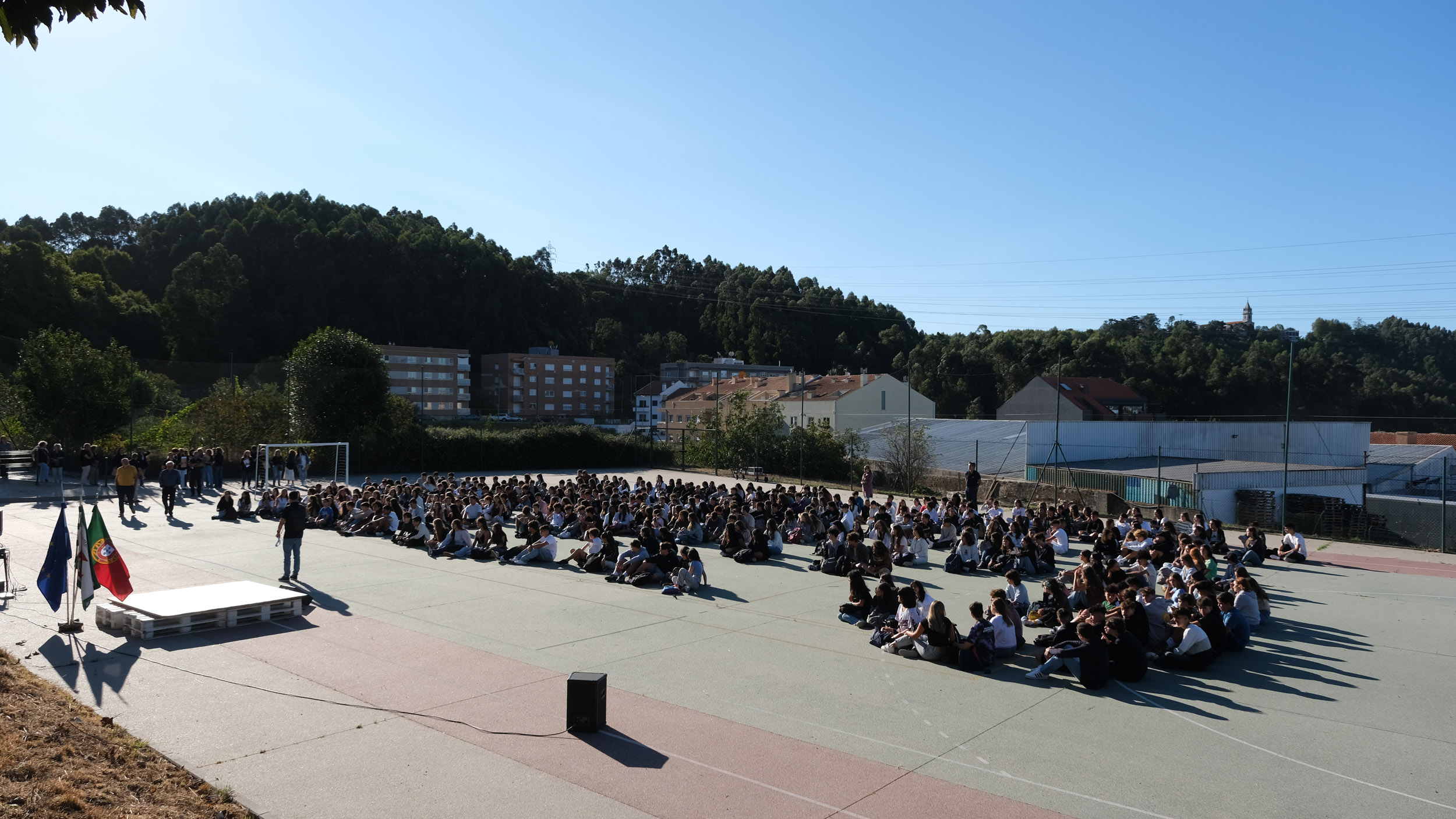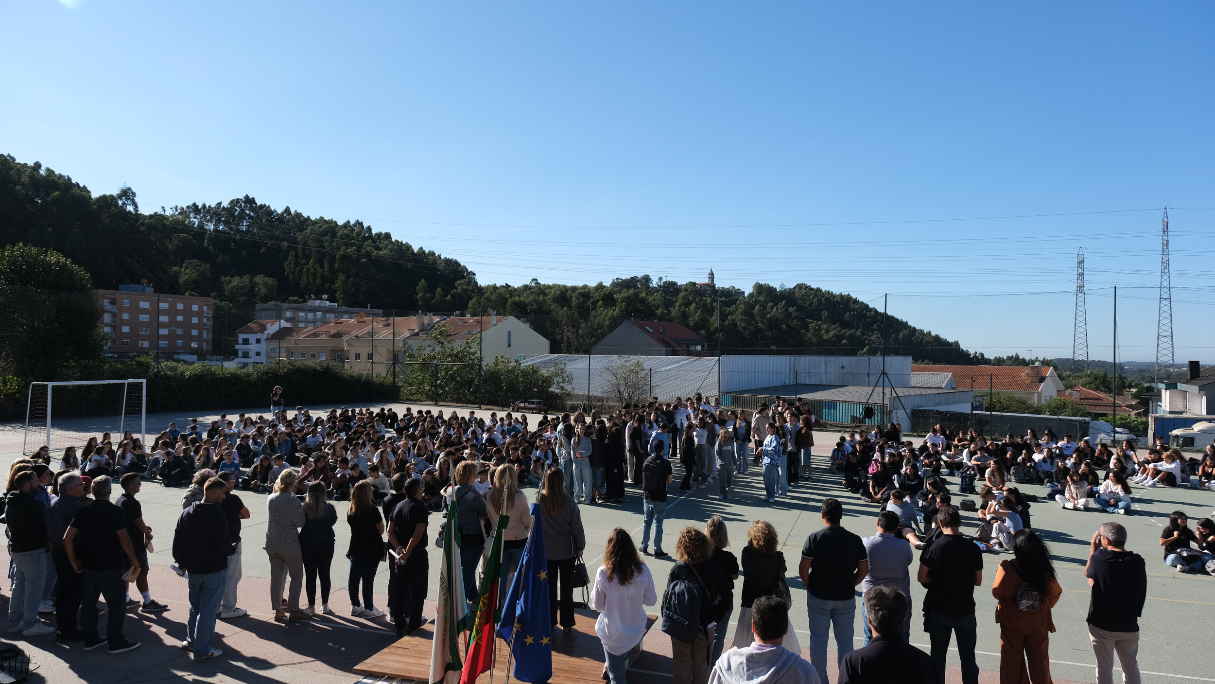 Após a receção das 14 turmas no átrio do Colégio, o(a)s aluno(a)s foram encaminhado(a)s para o espaço desportivo exterior, momento para uma palavra de boas-vindas por parte do Conselho Diretivo, bem assim como para a apresentação dos elementos presentes, designadamente Coordenadores de Curso, Vogais da Direção Pedagógica, Tutores, elementos do Gabinete de Psicologia, do Conselho Pastoral, Docentes, Prefeitos e Serviços Administrativos.