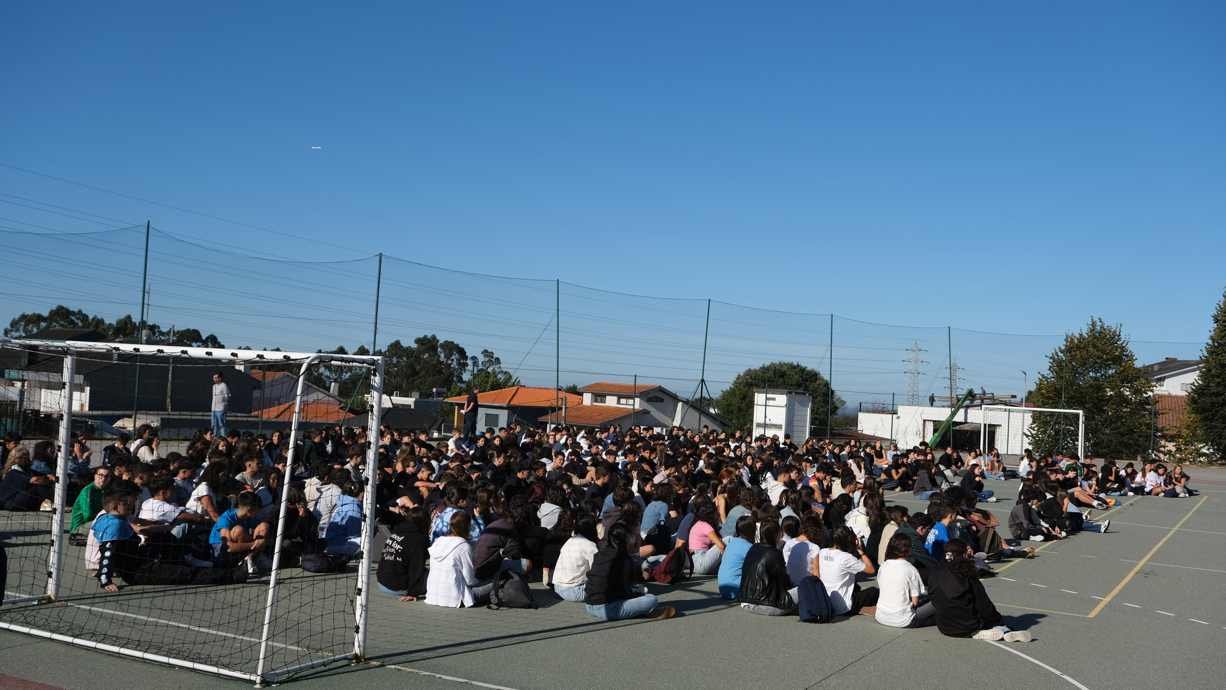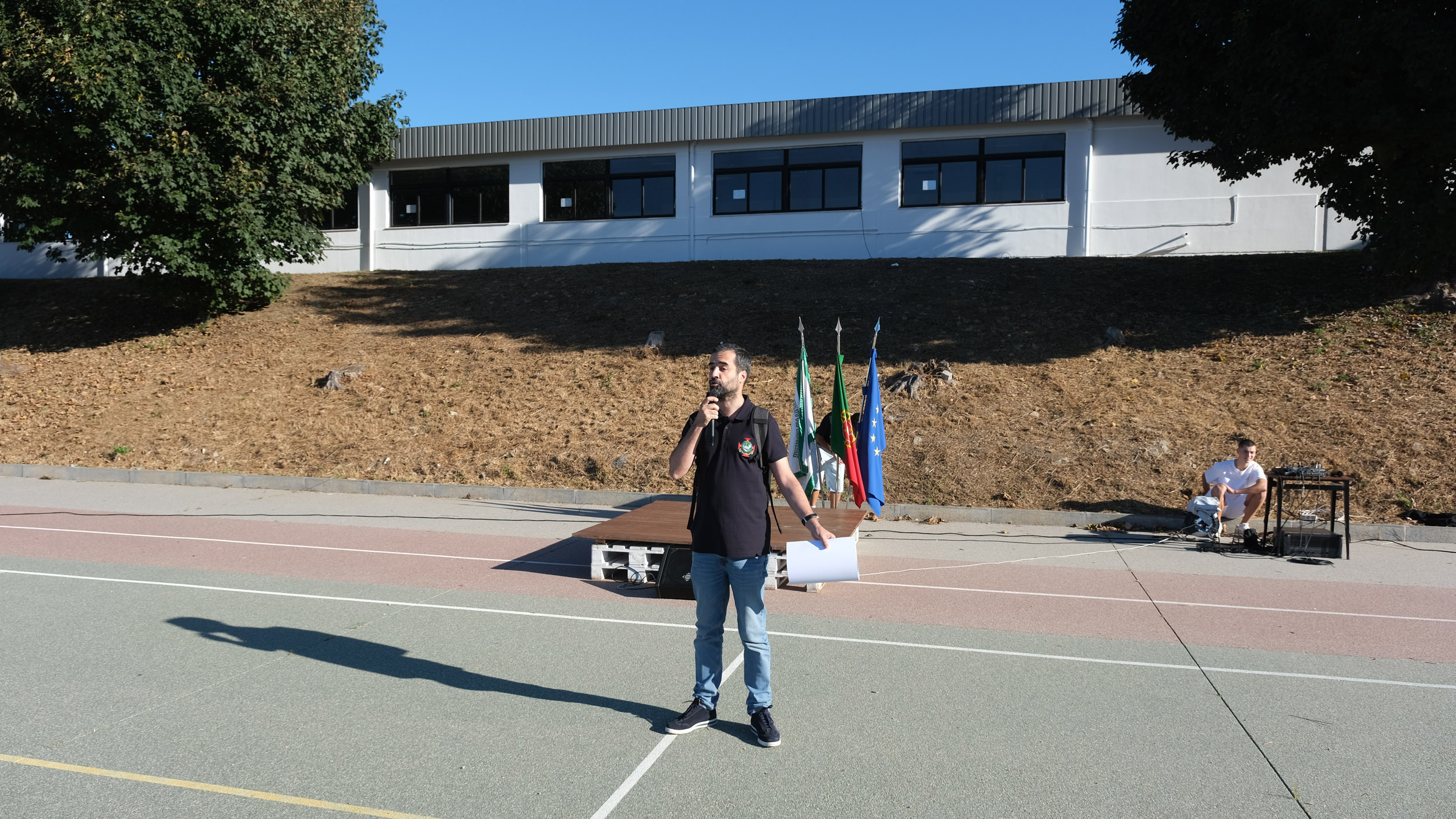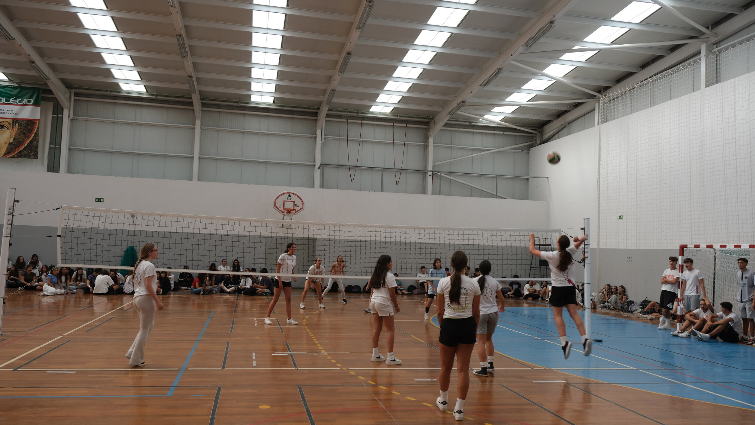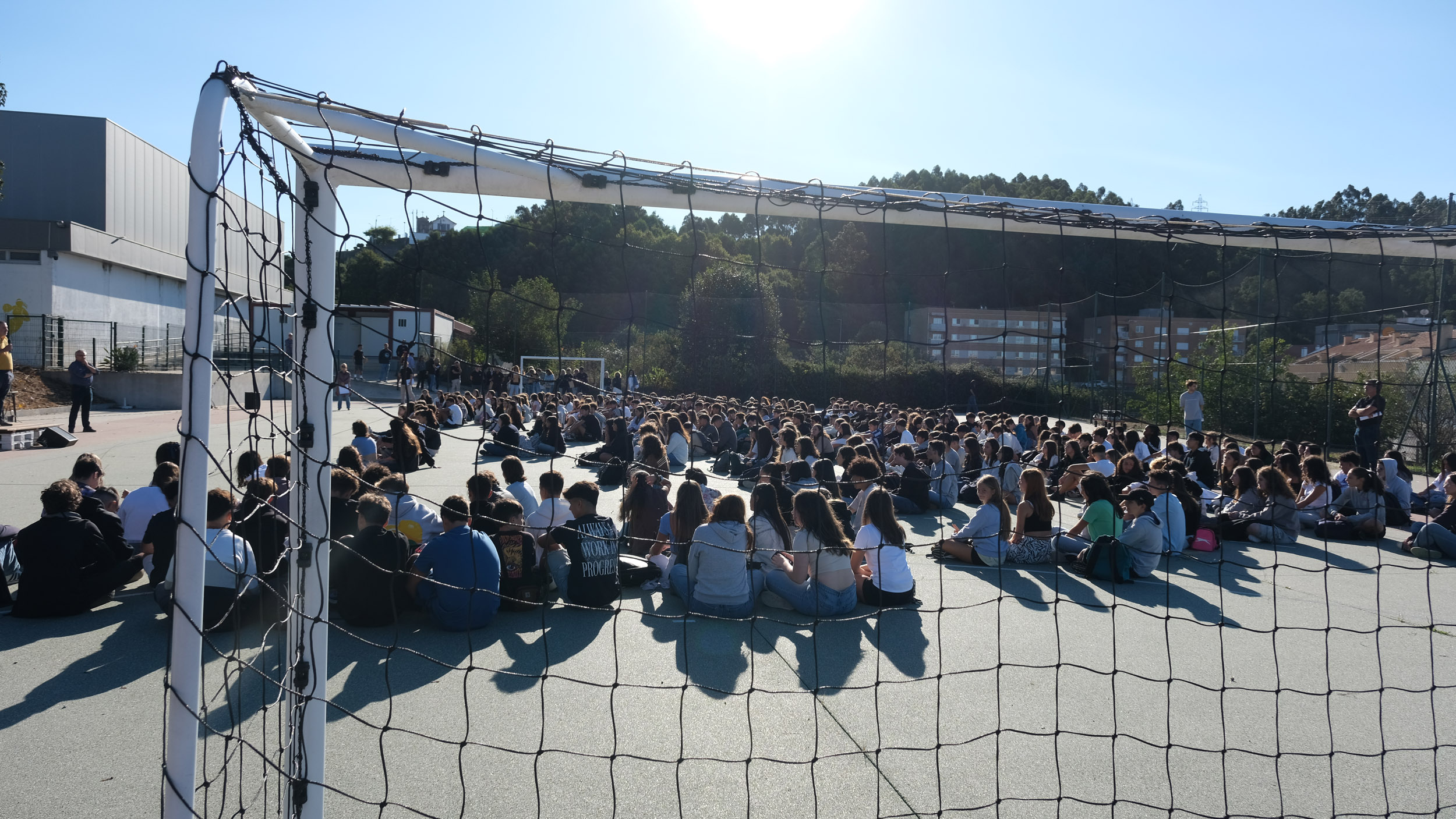 Após a receção das 14 turmas no átrio do Colégio, o(a)s aluno(a)s foram encaminhado(a)s para o espaço desportivo exterior, momento para uma palavra de boas-vindas por parte do Conselho Diretivo, bem assim como para a apresentação dos elementos presentes, designadamente Coordenadores de Curso, Vogais da Direção Pedagógica, Tutores, elementos do Gabinete de Psicologia, do Conselho Pastoral, Docentes, Prefeitos e Serviços Administrativos.