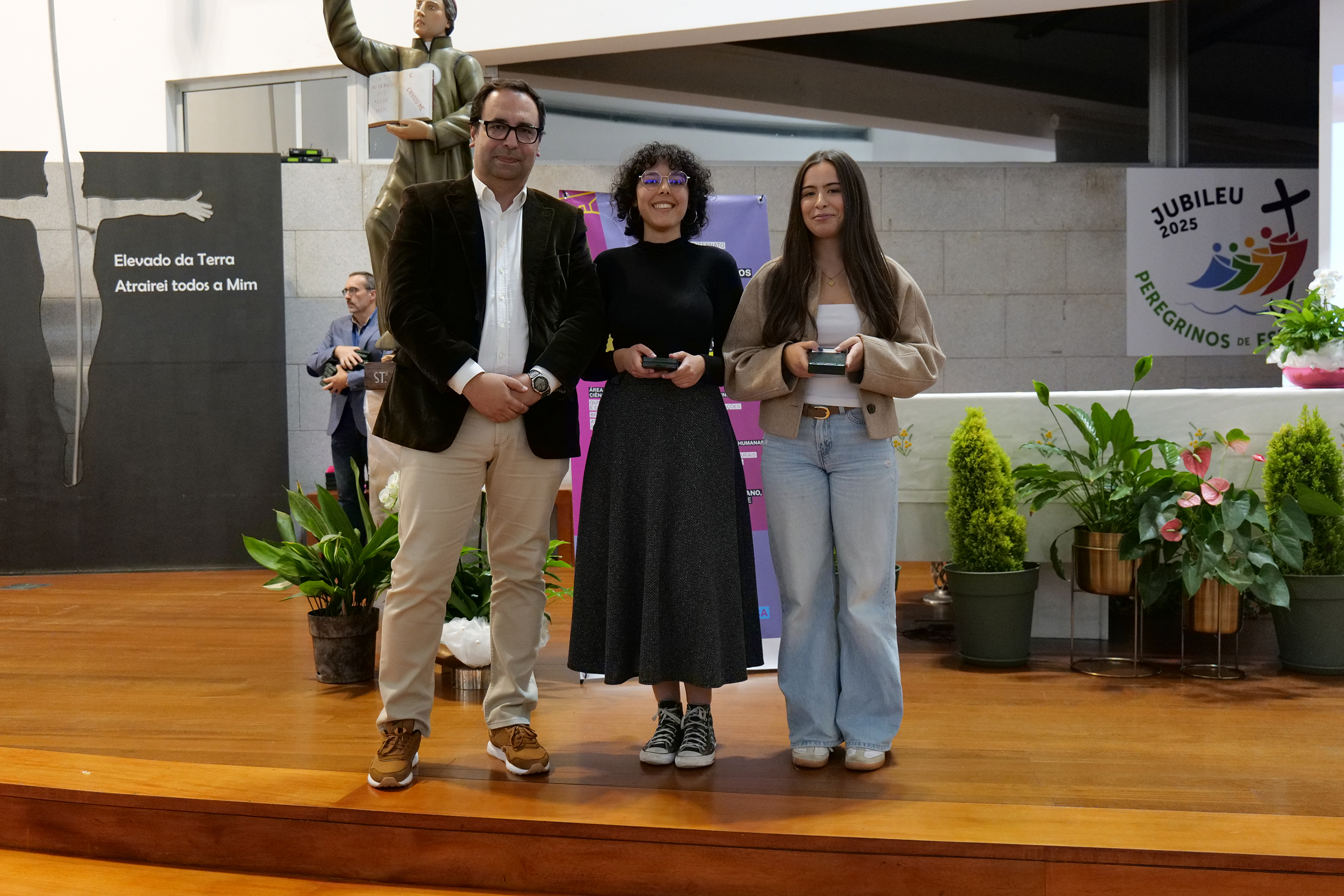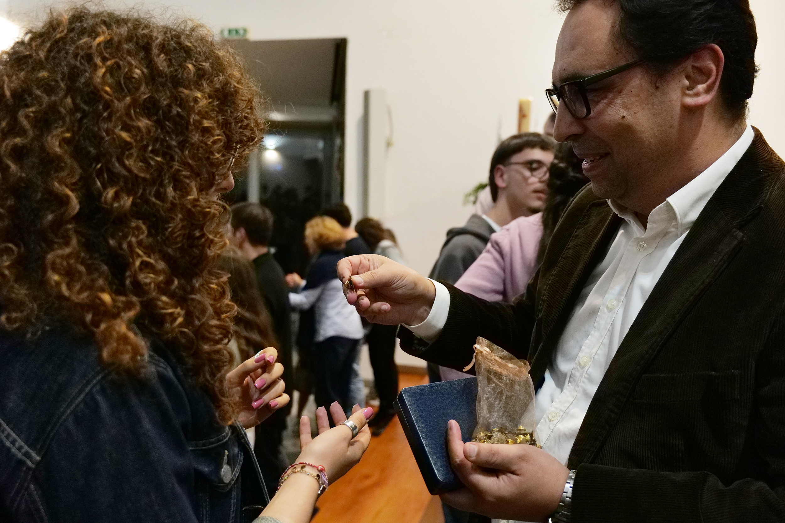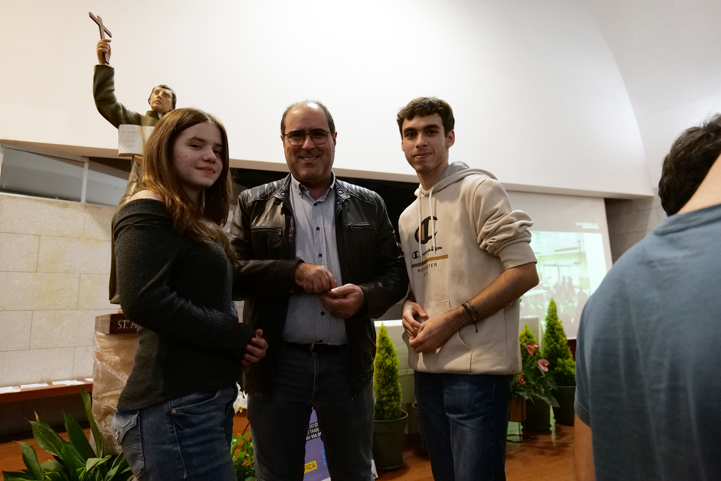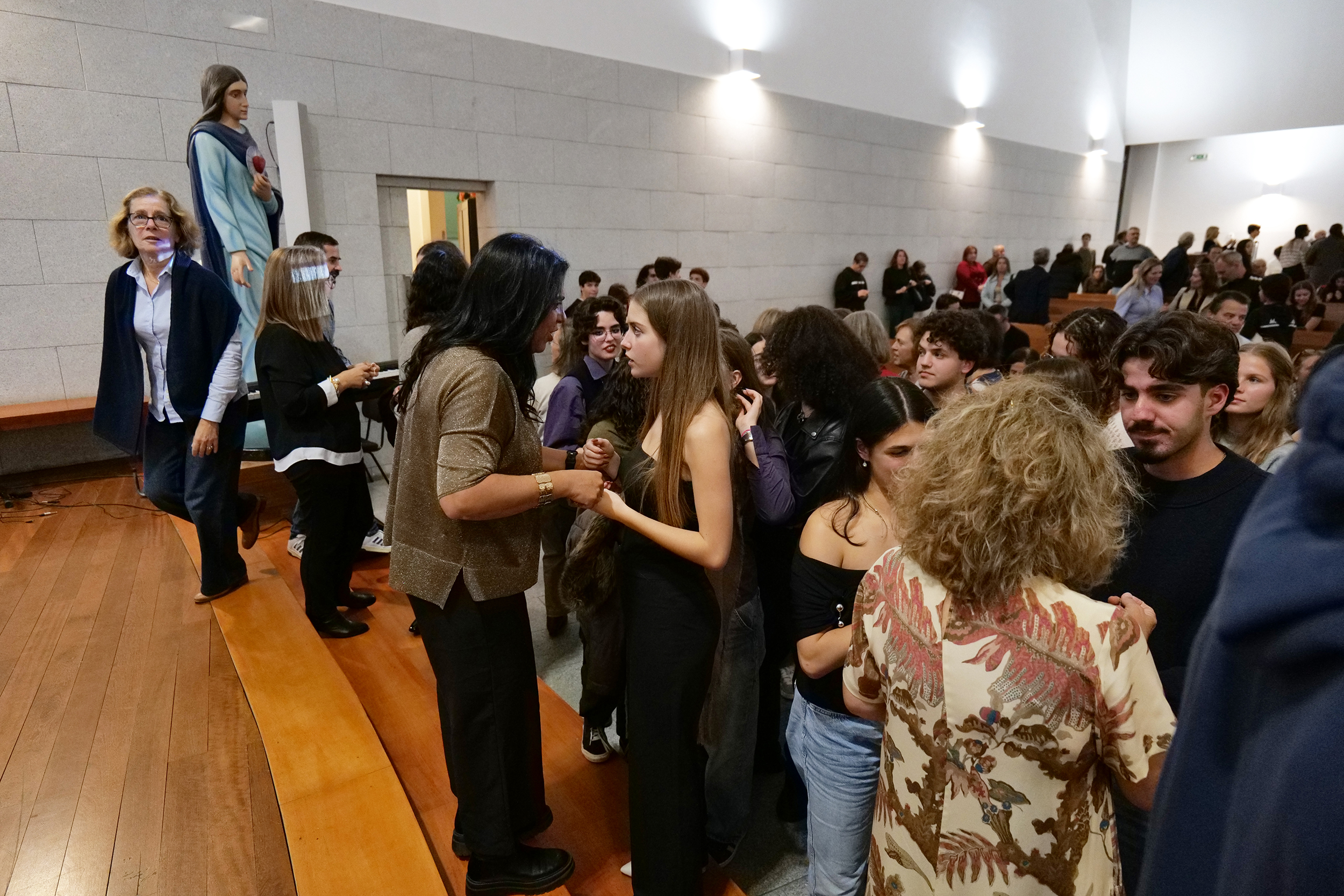 Seguiu-se uma intervenção de um aluno finalista 2024/25, Rafael Teixeira, com uma mensagem na qual partilhou alguns dos momentos vividos no CIC, sempre com palavras de gratidão por todos esses momentos: “(…) Foi então que comecei a perceber algo essencial: no CIC, ninguém está verdadeiramente sozinho. Aos poucos, comecei a encontrar pessoas que se preocupavam comigo — colegas que me ouviam, professores que me motivavam, funcionários que me perguntavam se estava tudo bem e, que, muitas vezes, também estavam lá para nos chamar à atenção do barulho enquanto esperávamos pelo professor! (…) A vocês, caros alunos, que hoje ocupam os lugares que um dia foram nossos, quero deixar uma mensagem simples: aproveitem cada momento. Absorvam tudo o que puderem: não apenas das aulas, mas das conversas nos intervalos, das atividades extracurriculares, dos conselhos dos vossos professores. Questionem, errem, aprendam com os erros e levantem-se mais fortes! (…)”.