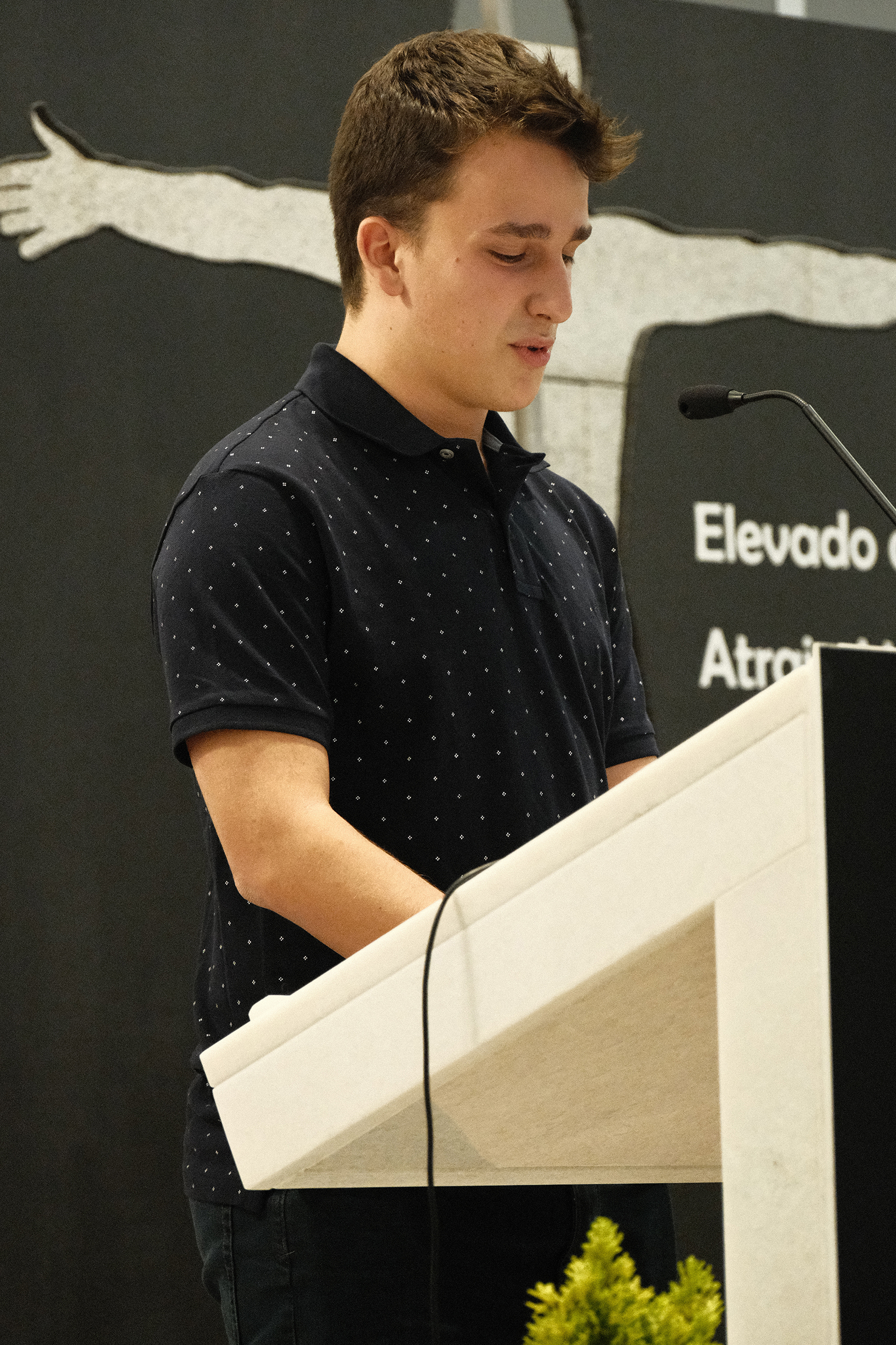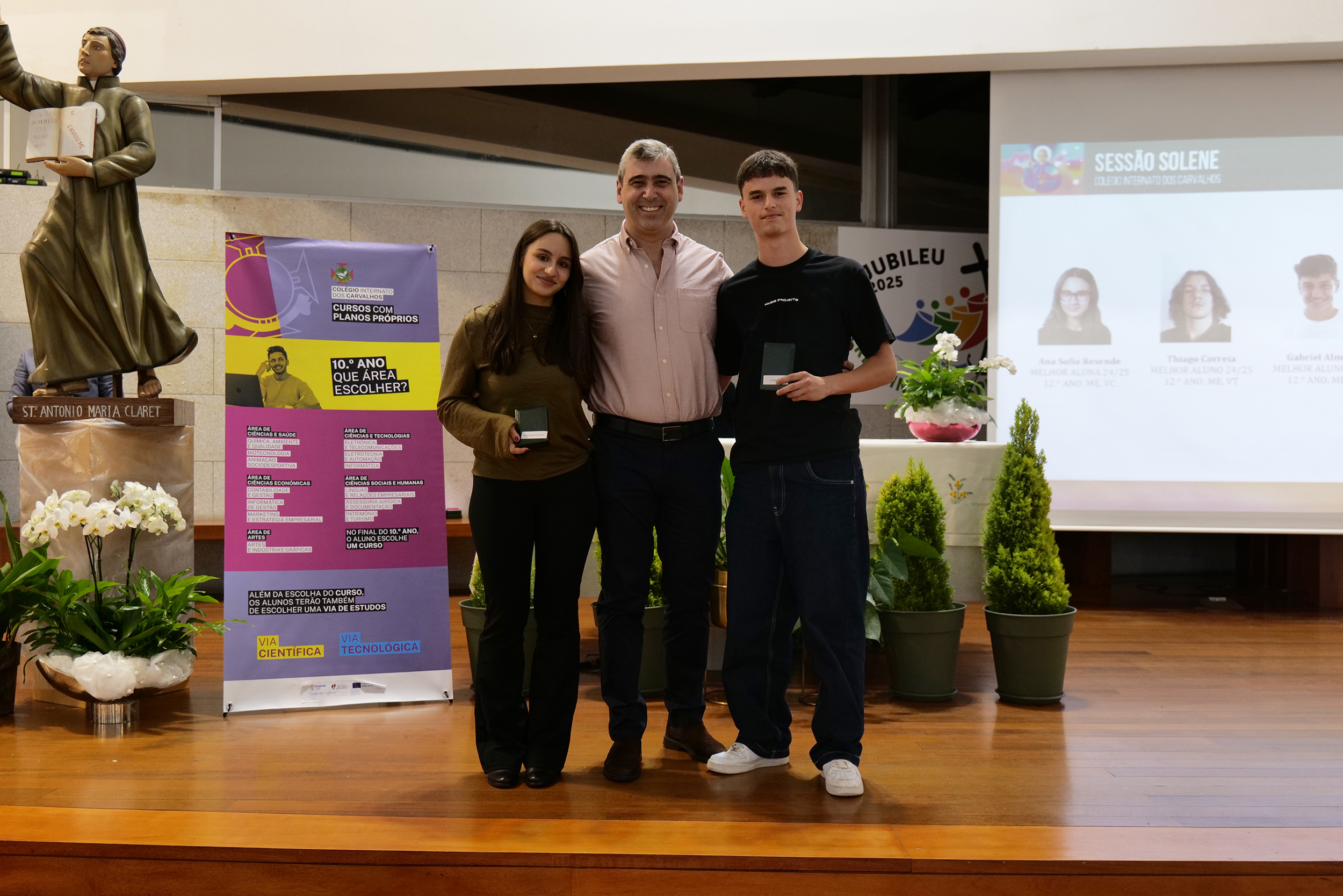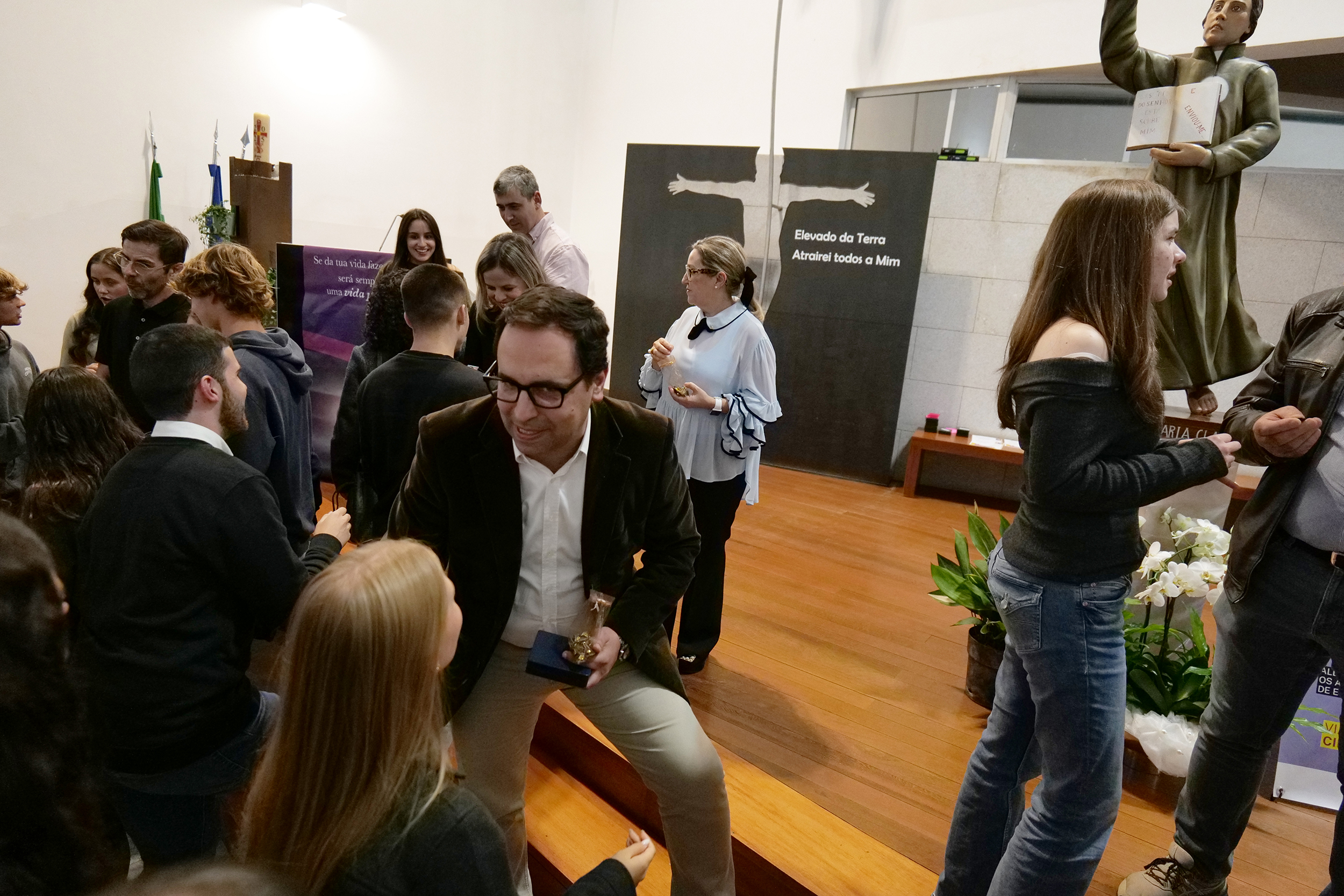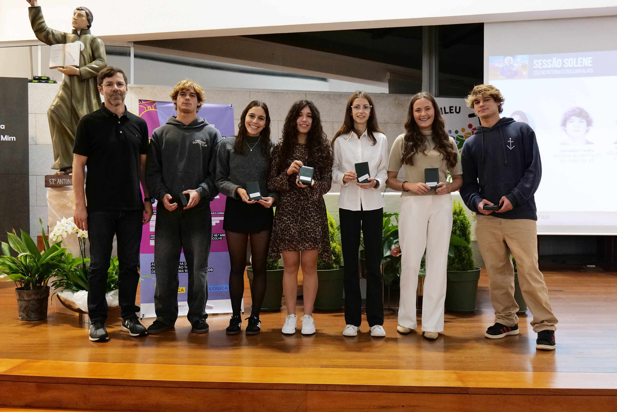 Seguiu-se uma intervenção de um aluno finalista 2024/25, Rafael Teixeira, com uma mensagem na qual partilhou alguns dos momentos vividos no CIC, sempre com palavras de gratidão por todos esses momentos: “(…) Foi então que comecei a perceber algo essencial: no CIC, ninguém está verdadeiramente sozinho. Aos poucos, comecei a encontrar pessoas que se preocupavam comigo — colegas que me ouviam, professores que me motivavam, funcionários que me perguntavam se estava tudo bem e, que, muitas vezes, também estavam lá para nos chamar à atenção do barulho enquanto esperávamos pelo professor! (…) A vocês, caros alunos, que hoje ocupam os lugares que um dia foram nossos, quero deixar uma mensagem simples: aproveitem cada momento. Absorvam tudo o que puderem: não apenas das aulas, mas das conversas nos intervalos, das atividades extracurriculares, dos conselhos dos vossos professores. Questionem, errem, aprendam com os erros e levantem-se mais fortes! (…)”.