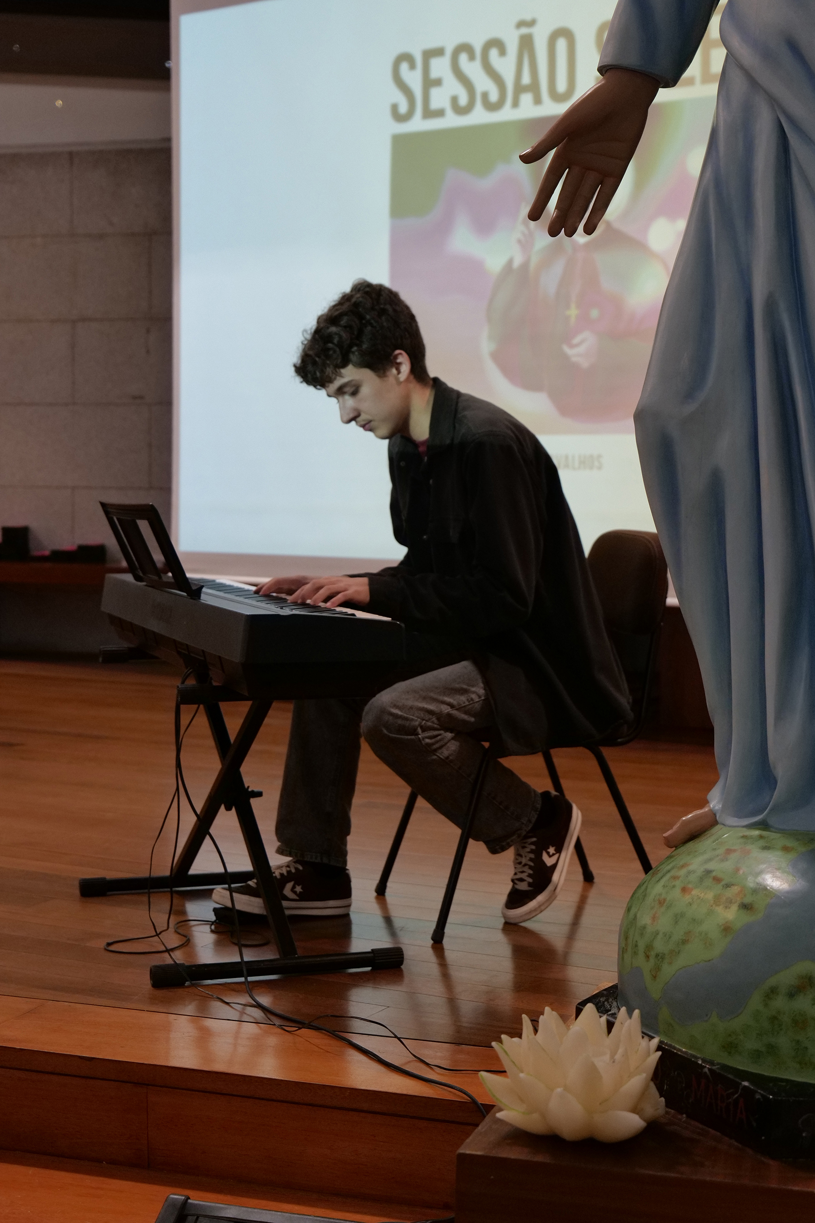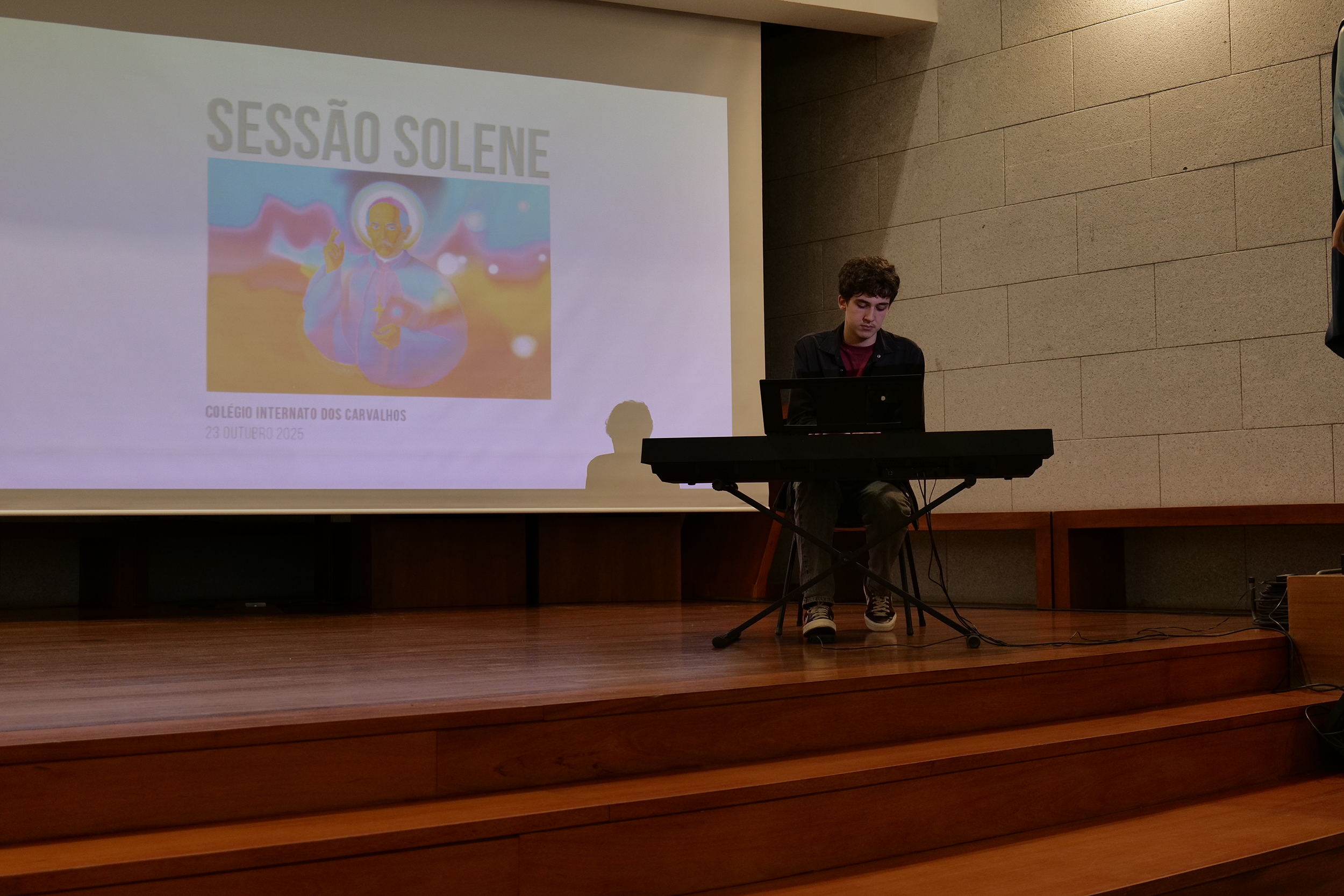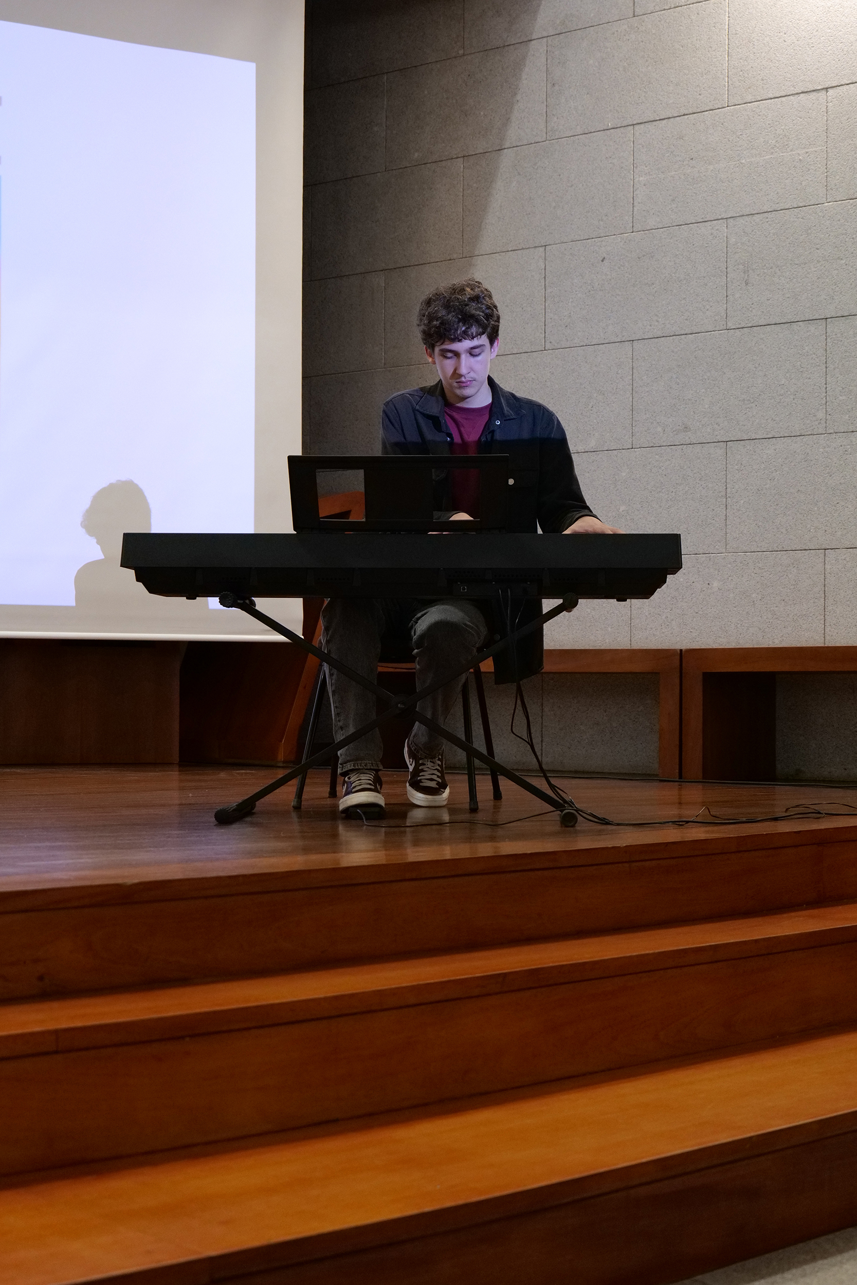 Como um momento de descontração musical, o aluno Gonçalo Guimarães improvisou o tema “Fly me to the moon”.